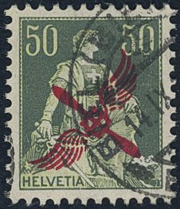 Switzerland. Michel 145 used, 1919 Air mail overprint 50 c dark green/light green. EUR 160