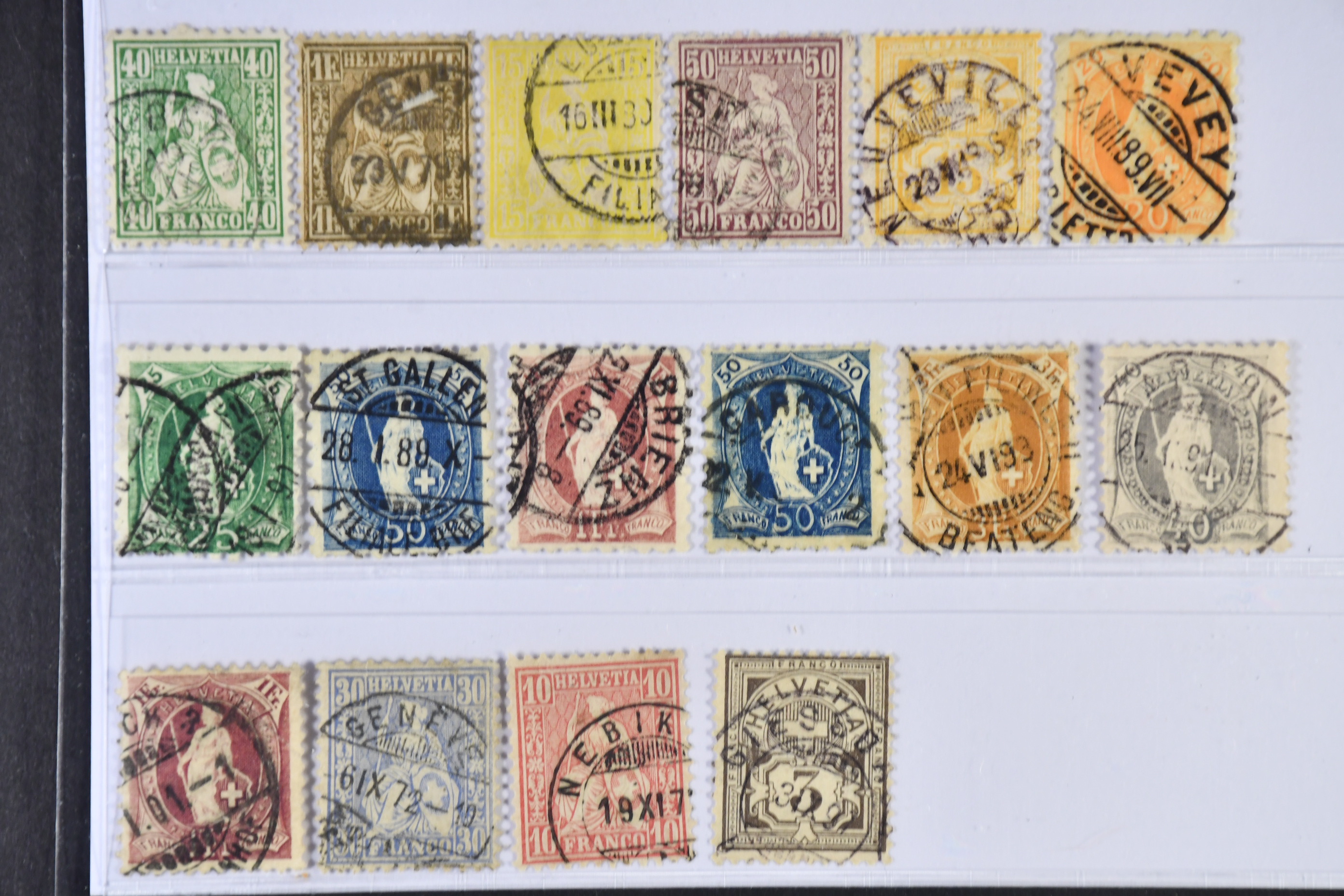 Switzerland. Used 1862–1882. All different, e.g. Mi 26, 28, 31, 35, 56, 58B, 59B, 62B, 63B, 62, 64. Mostly good quality. Mi € 958 (16)
