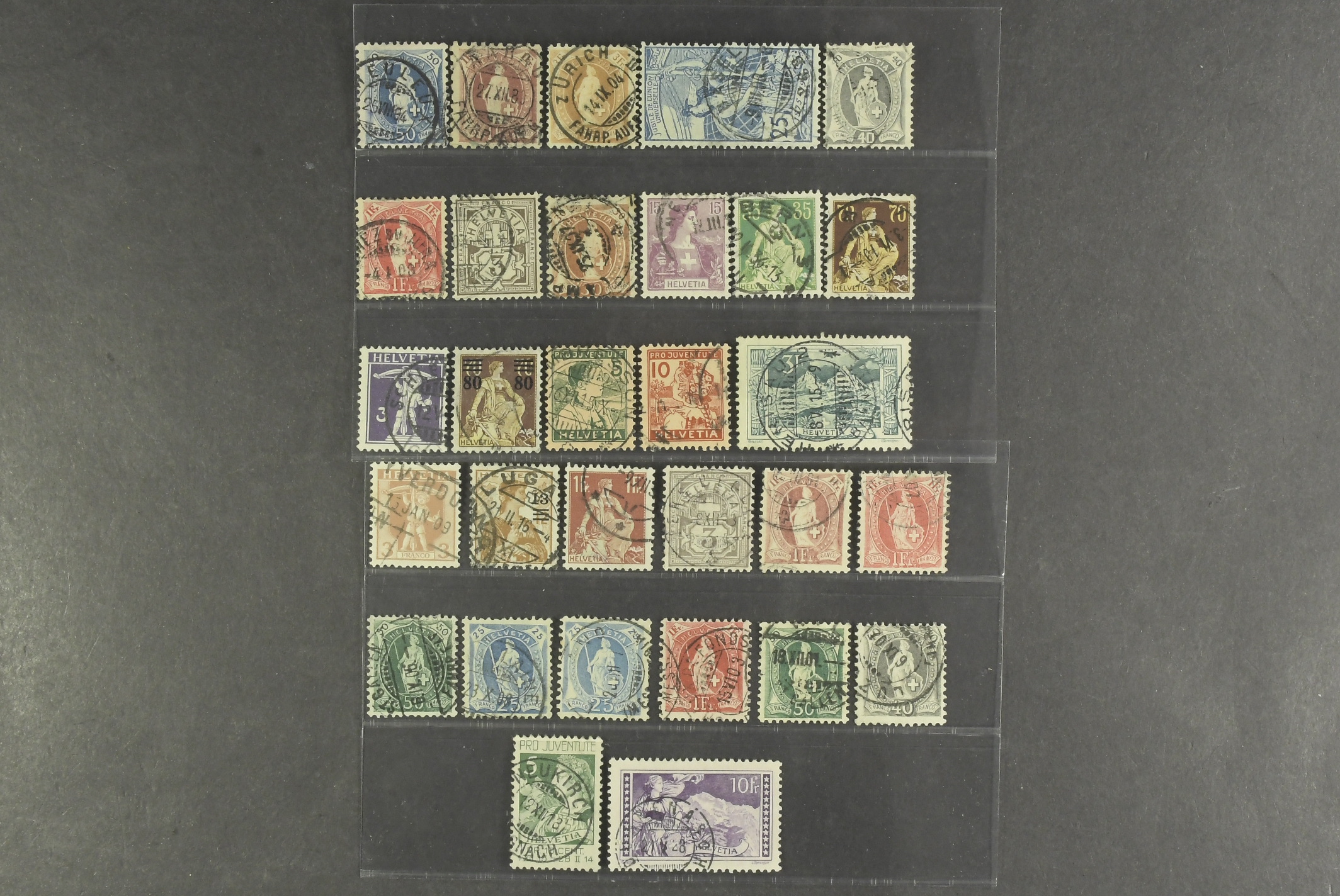 Switzerland. Used 1882–1915. All different, e.g. Mi 62, 63B, 64, 73, 77A, 78D, 83, 90D, 100, 105z, 108, 112 I, 127, 128–29. Mostly good quality. Mi € 686 (30)