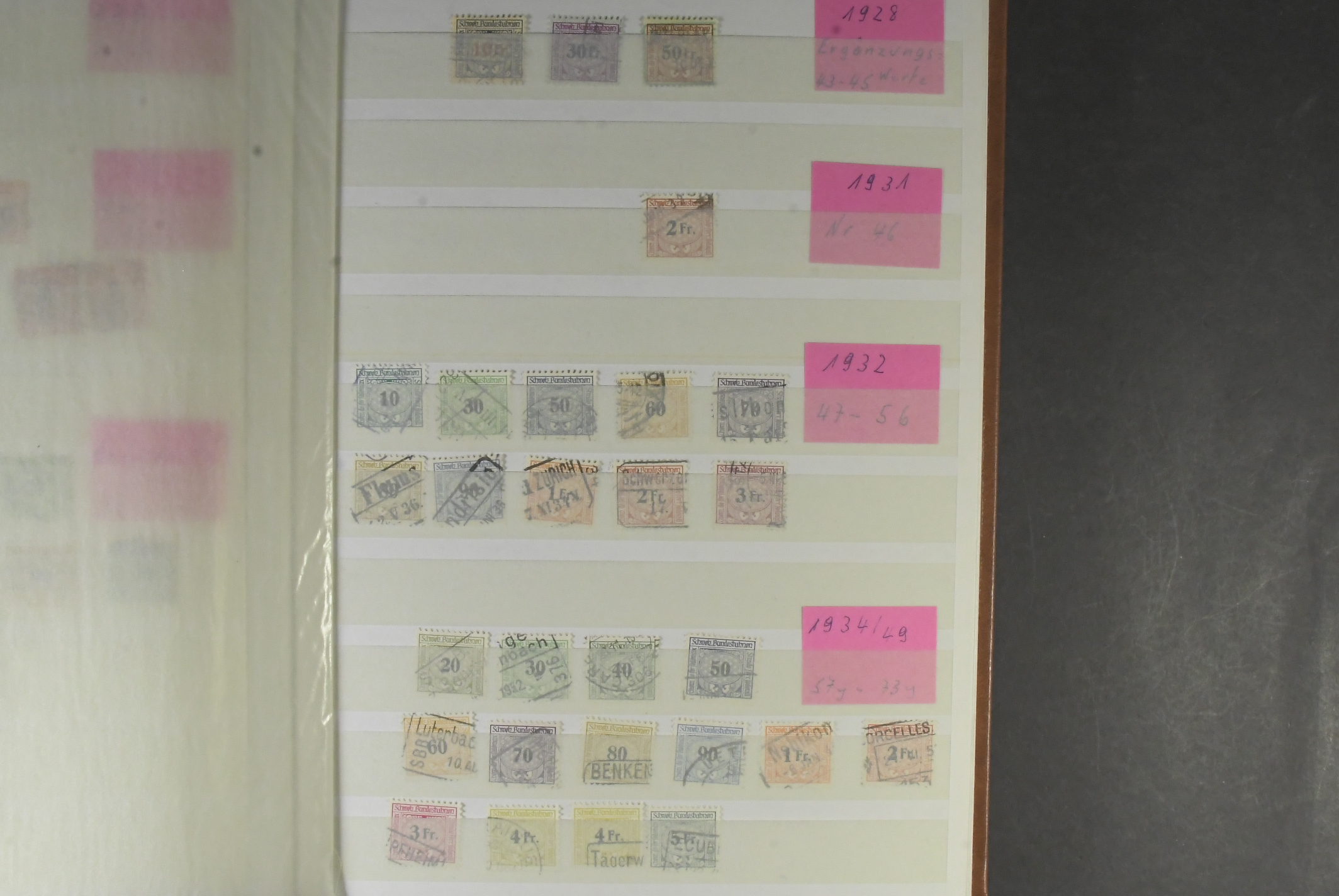 Switzerland. Freight stamps, collection/accumulation 1913– in stockbook. Comprehensive collection of railway freight stamps from 1913 an later. Additionally a full sheet of 3 Fr stamps (however divided into two halfs). Please see a selection of scans at www.philea.se. Mostly fine quality. (>300)
