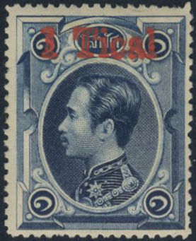 Thailand. Michel 6 ★, 1885 1 Tical surcharge on 1 solot Blue ovpt type II. hinge remains. EUR 500