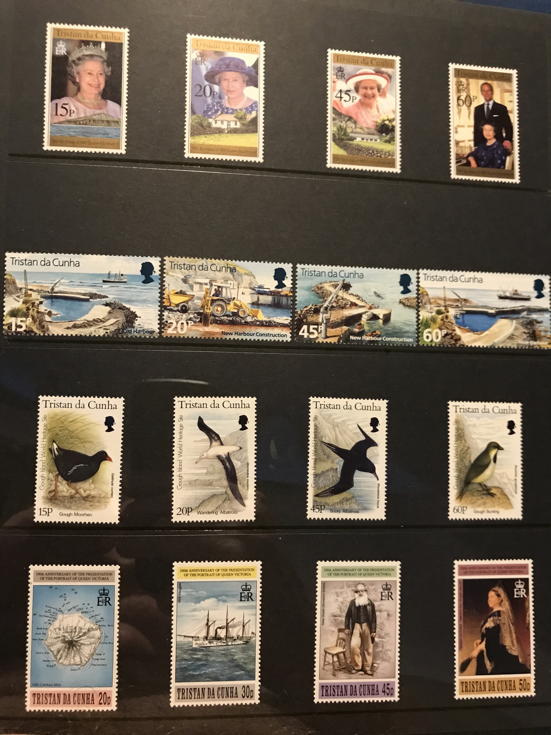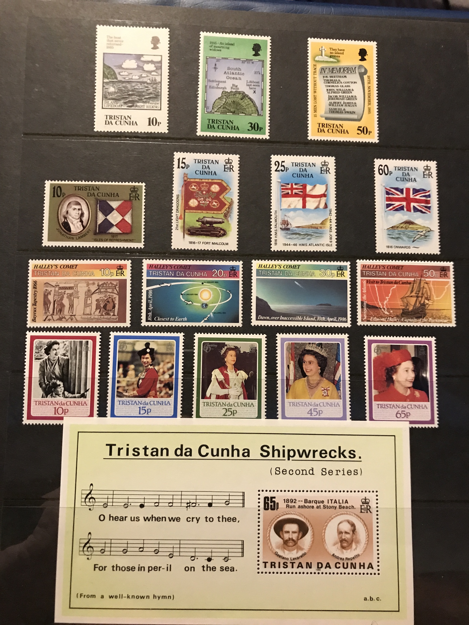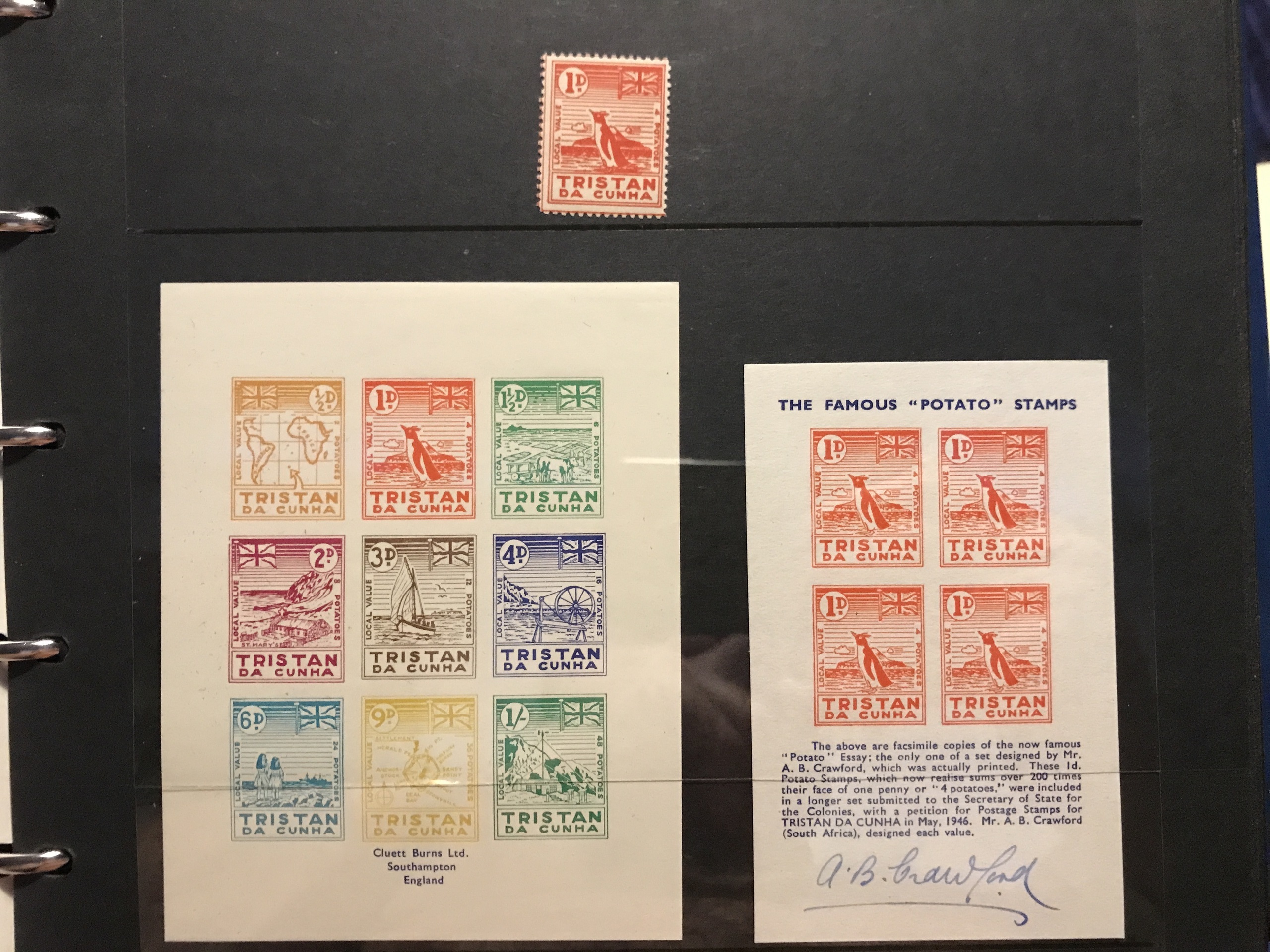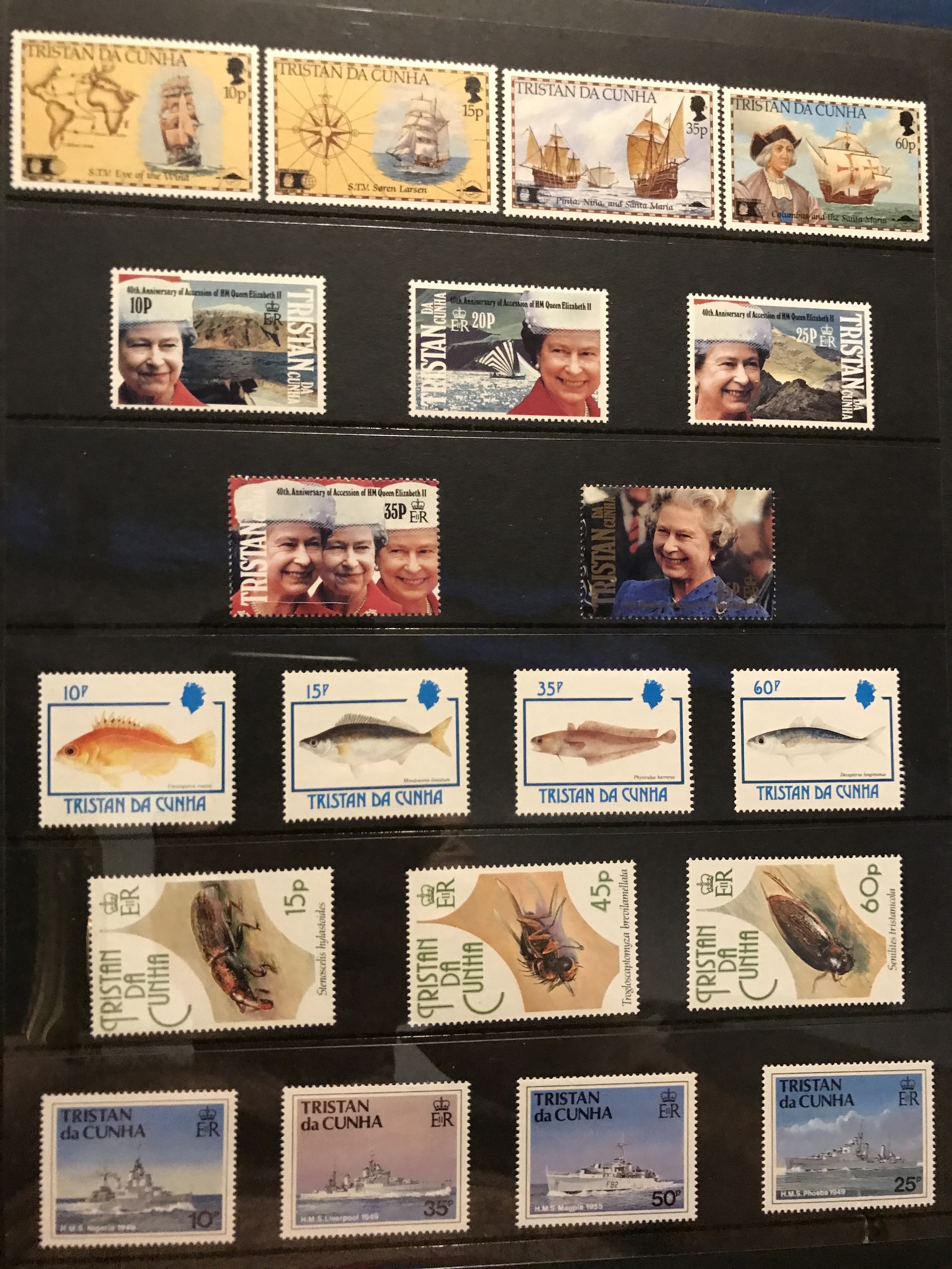 Tristan da Cunha. ★★. Very fine collection 1953–1999 in Visir binder incl. e.g. Mi25–27, cpl. Mi68–604 and all souvenir sheets. Mi >1300 Euro. Also 'Potato stamp' 1946 and two reprint mini sheets incl. one signed A B Crawford.