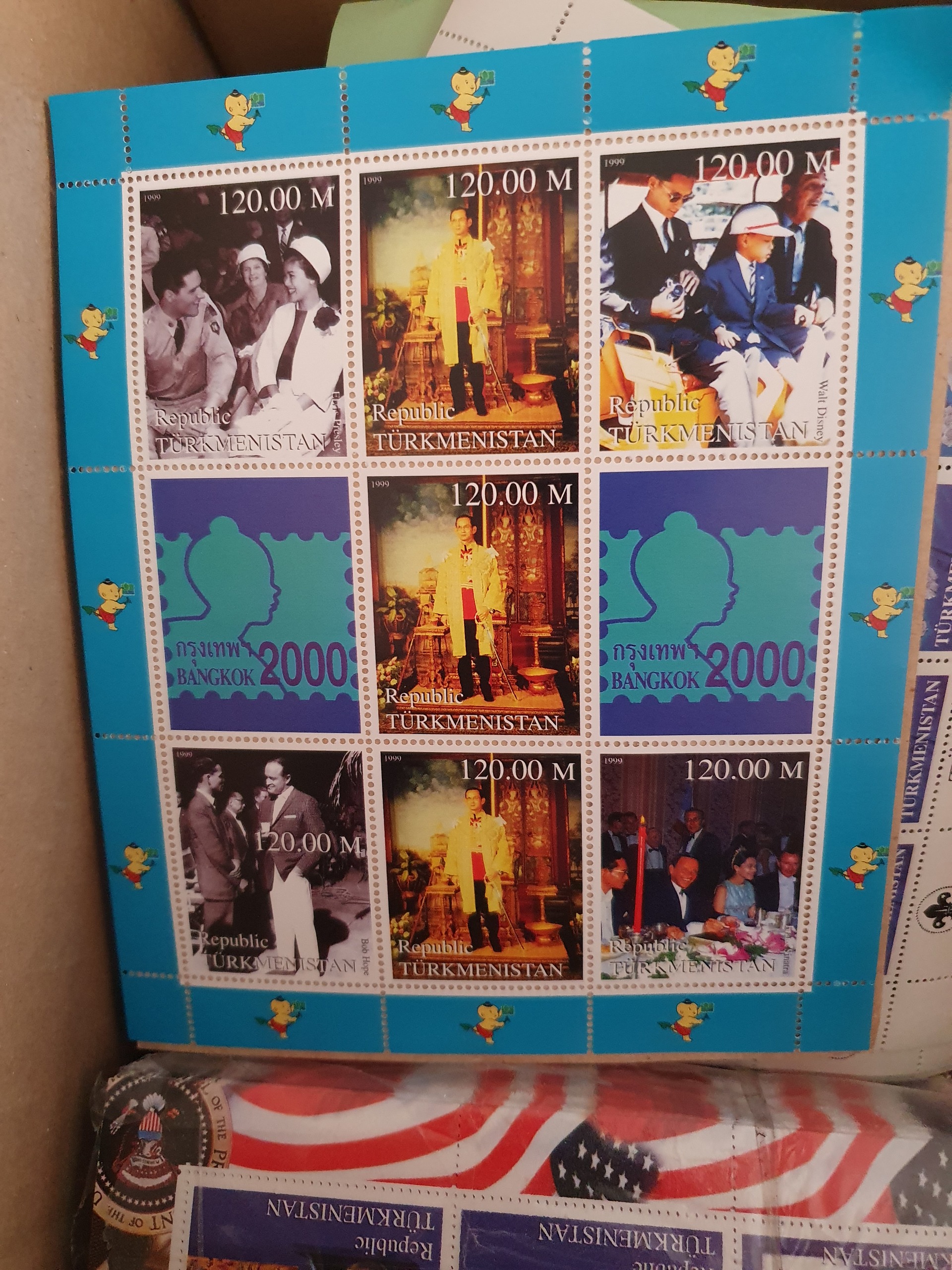 Turkmenistan. Collection/accumulation mostly ★★ 2000s in box. A lot of blocks from this country in batches. incl. artists, Royals and others. Please see a selection of scans at www.philea.se. Mostly fine quality. Approx. 7 kg. (>10000s)