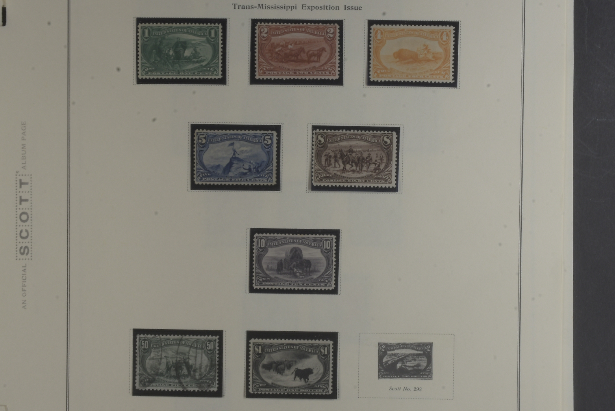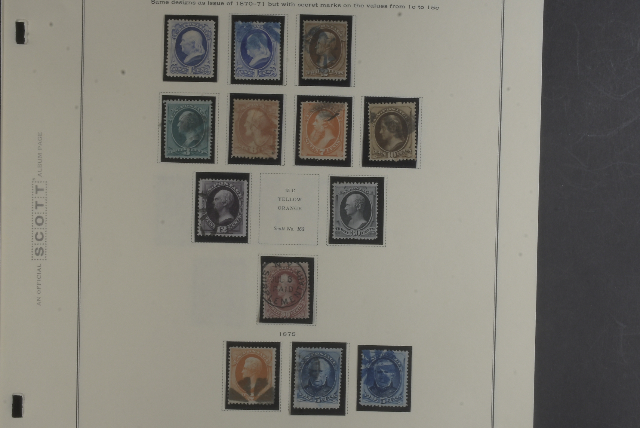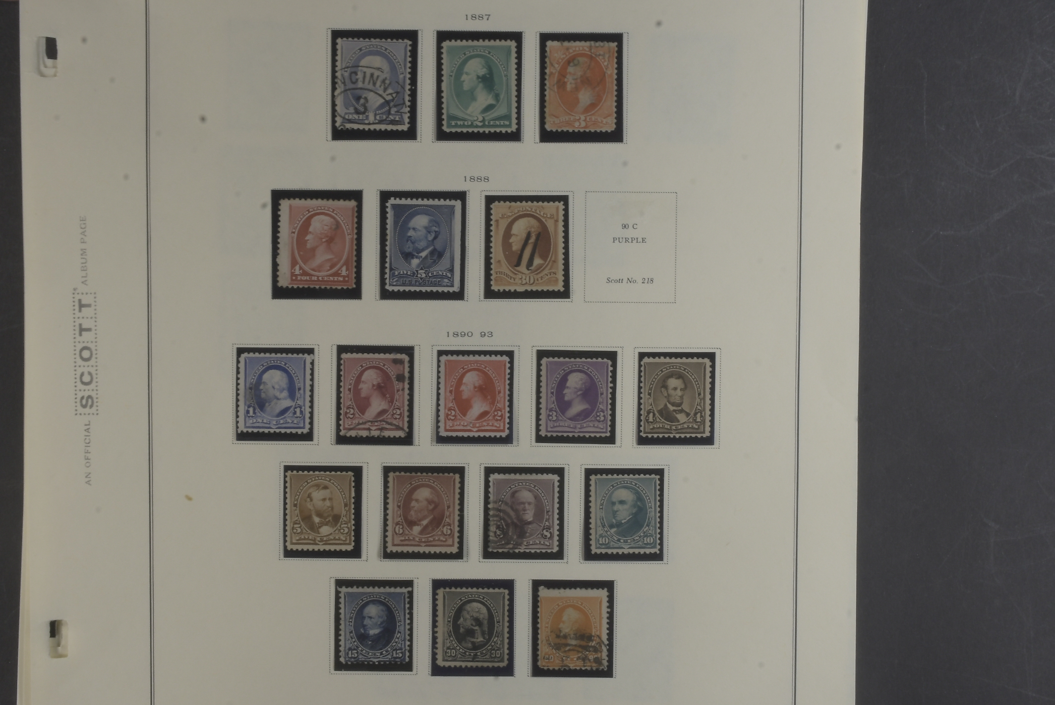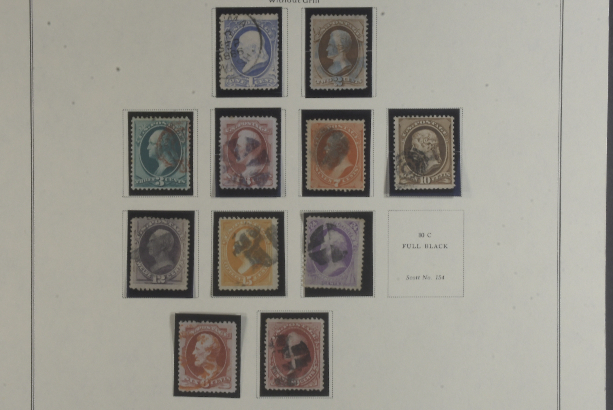U.S.A. Mostly used on eight leaves. 19th century collection, mint and used with many tough to find stamps, for the 1870s through to the Omahas, highlights inc 90cts Perry both types 1870 and 1872 the latter CDS, as well as mint, possibly MNH 30cts Hamilton (Scott #165), further defins 1879s with another mint 30cts Hamilton (Scott #190), 1890 again to 90cts Perry, 1894 with broken circle $1 Perry #261, ending with the Omahas to $1, virtually all mint save 50cts, etc .The entire lot is presented at www.philea.se. Mostly fine quality.