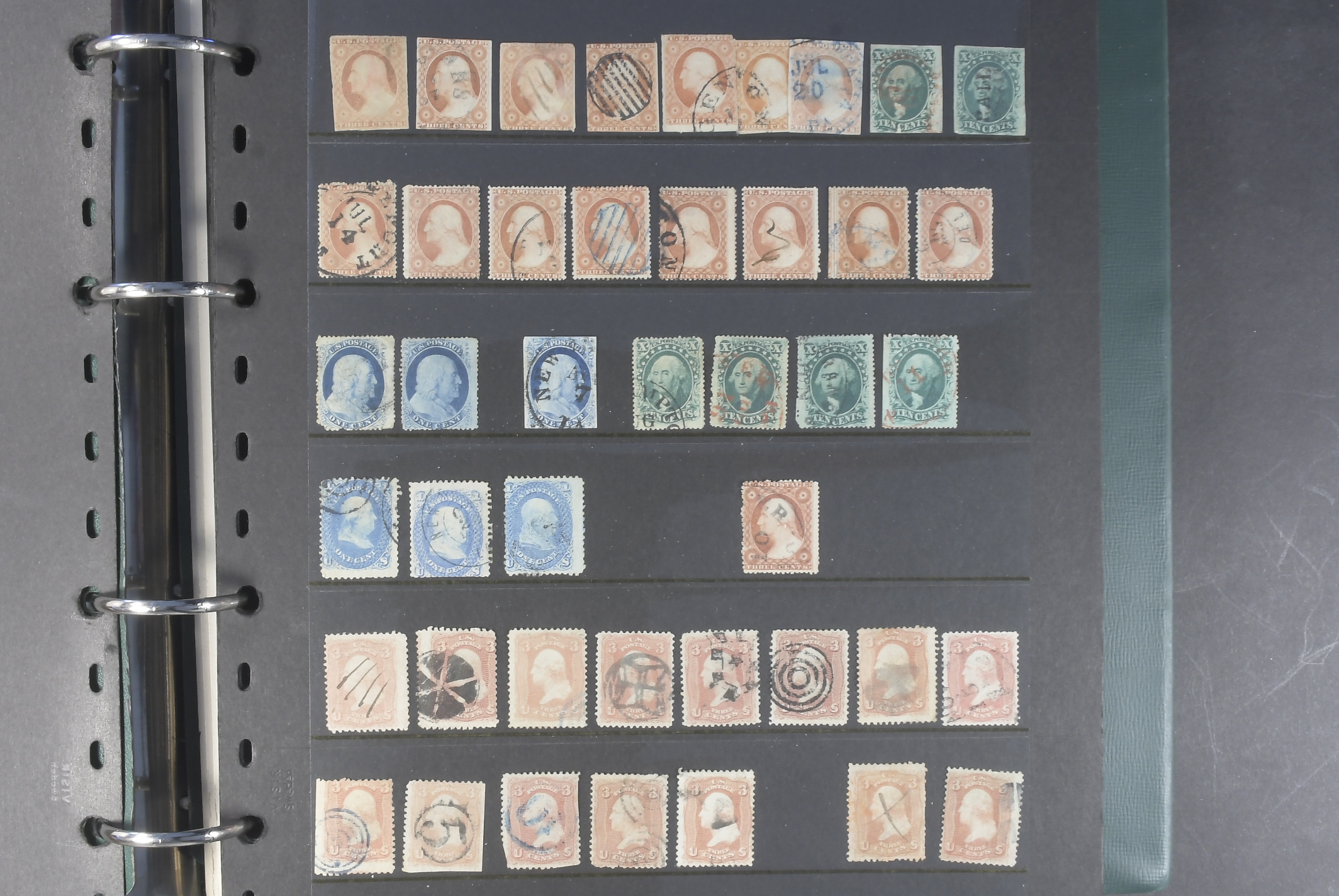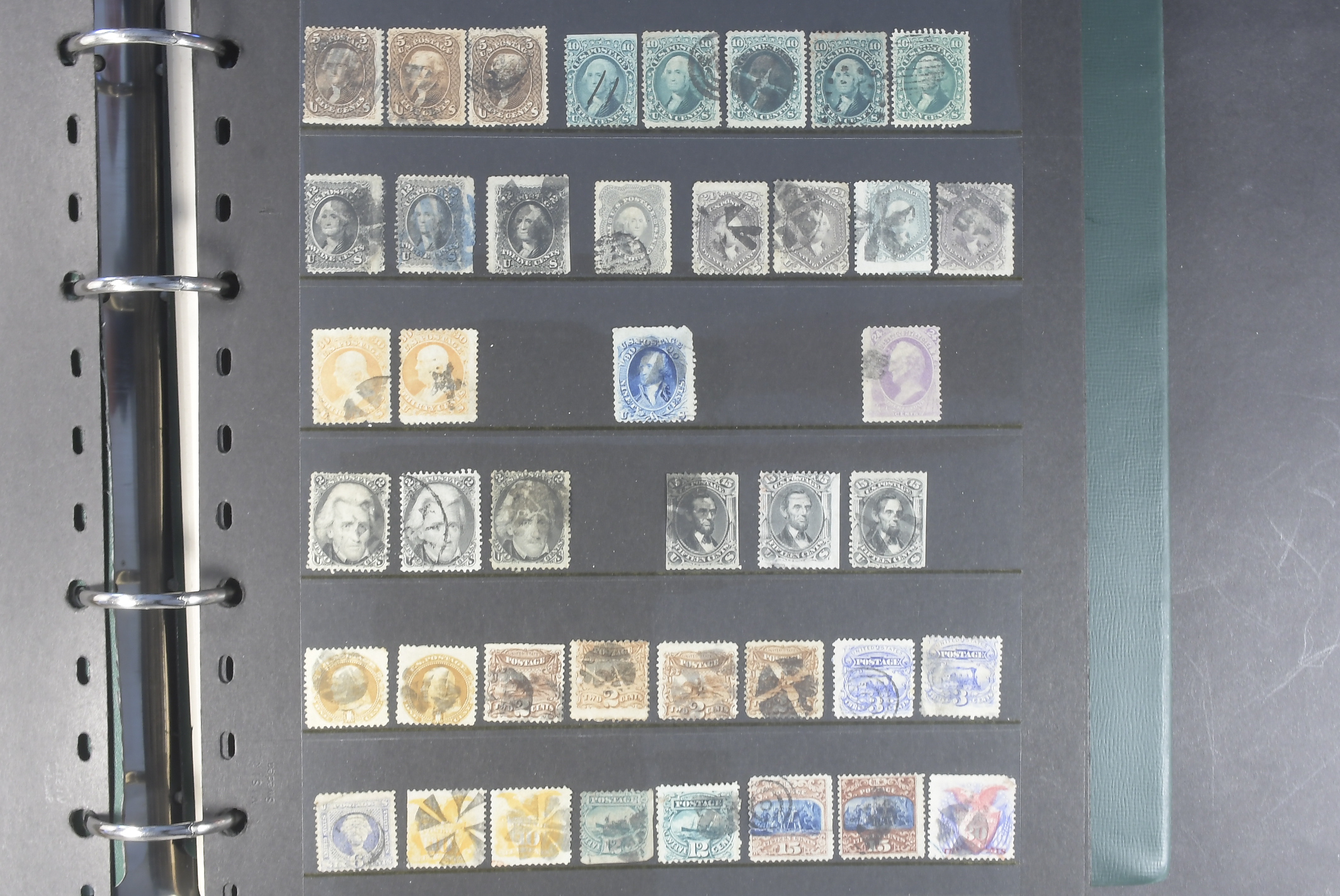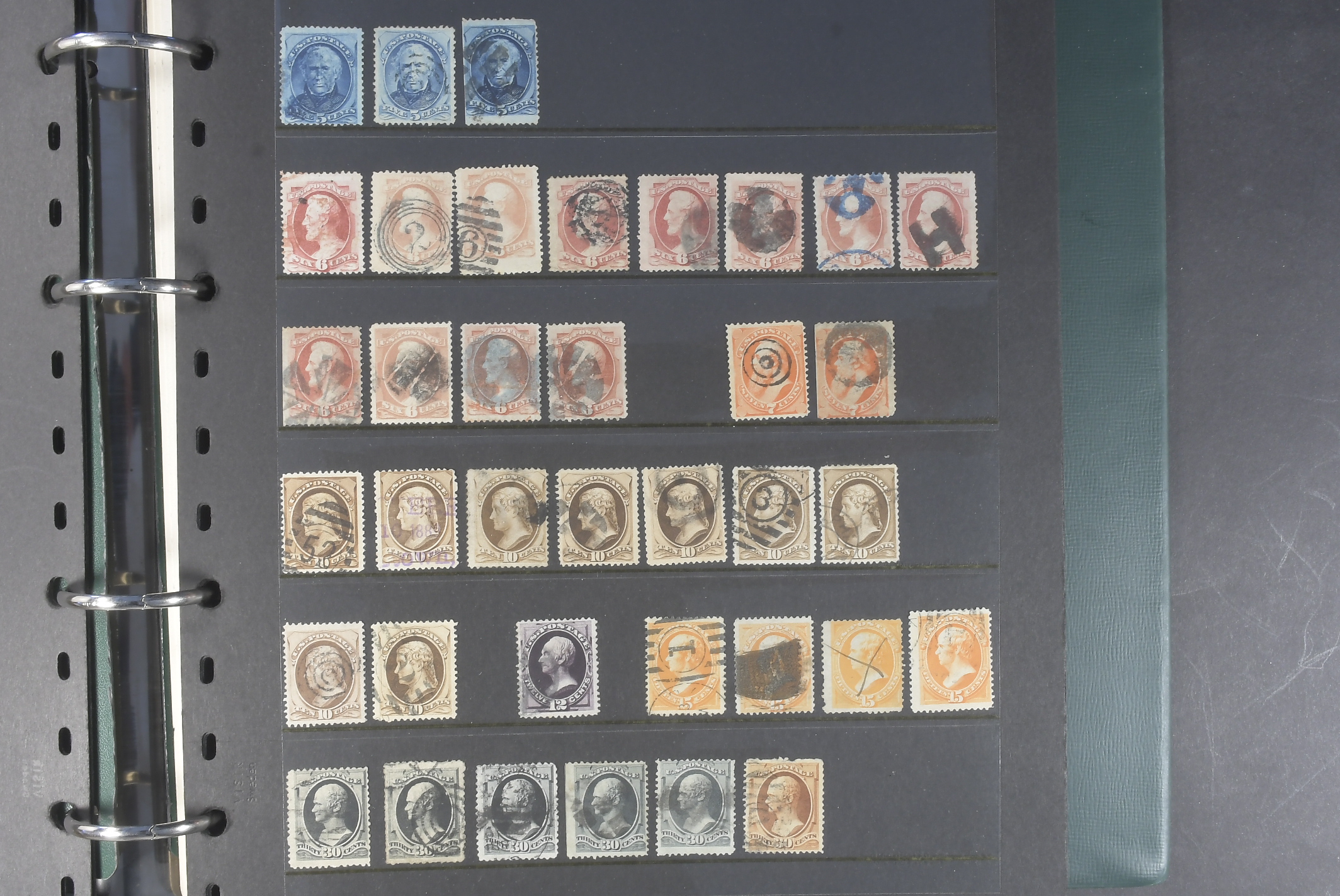 U.S.A. Collection mostly used 1851–1930s in visir album. Early duplicates with many better stamps. incl 1861 24c×5, 30c×2, 90c. 1866 15c x3, 1869 up to 30c, 1870 up to 30c, Colombus up to $2 and Omaha up 10 50c. Later with some better here and there and some back of the book. Viewing is recommended. Please see a selection of scans at www.philea.se. Mixed quality. (c600)