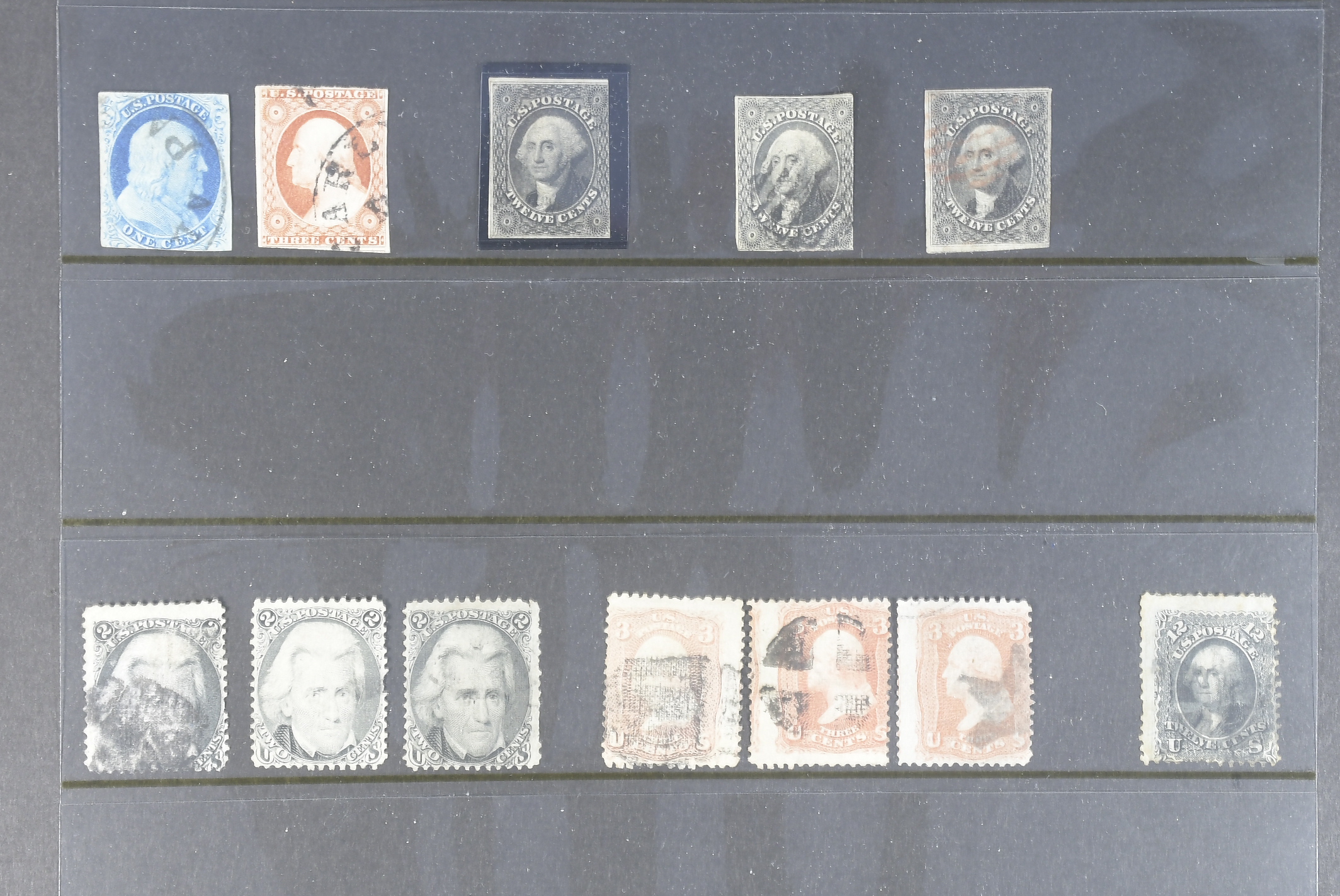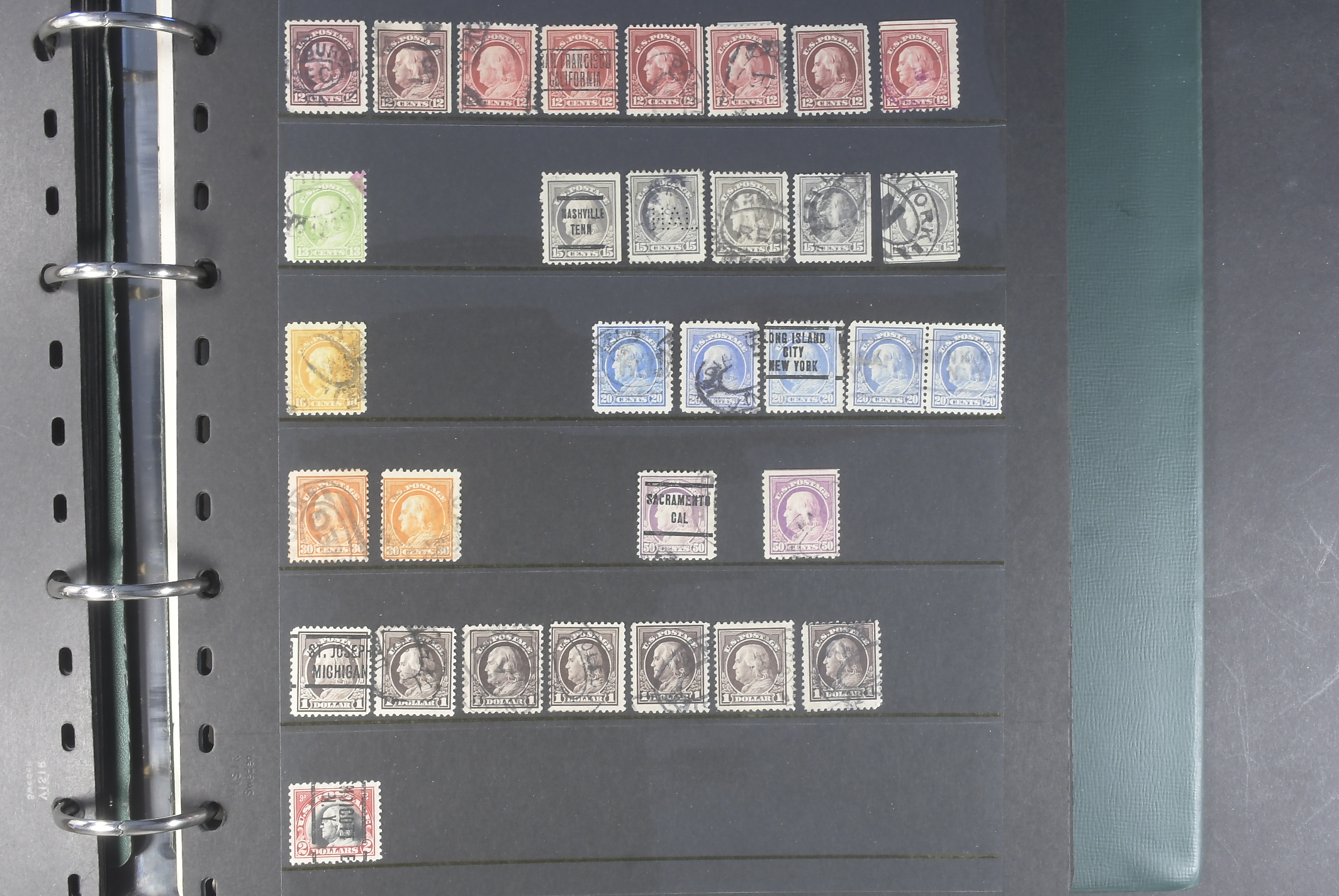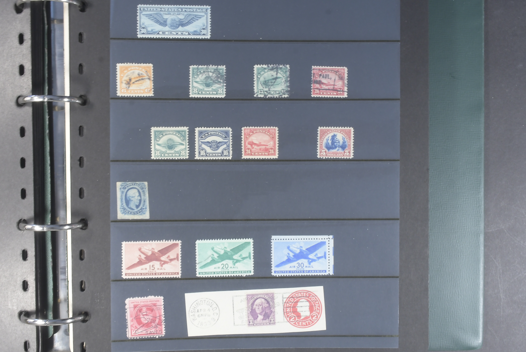U.S.A. Collection mostly used 1851–1930s in visir album. Early duplicates with many better stamps. incl 1861 24c×5, 30c×2, 90c. 1866 15c x3, 1869 up to 30c, 1870 up to 30c, Colombus up to $2 and Omaha up 10 50c. Later with some better here and there and some back of the book. Viewing is recommended. Please see a selection of scans at www.philea.se. Mixed quality. (c600)