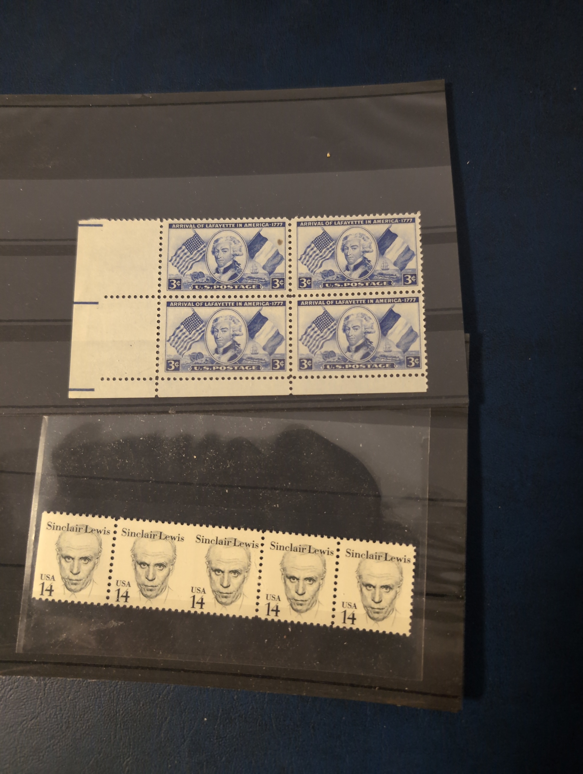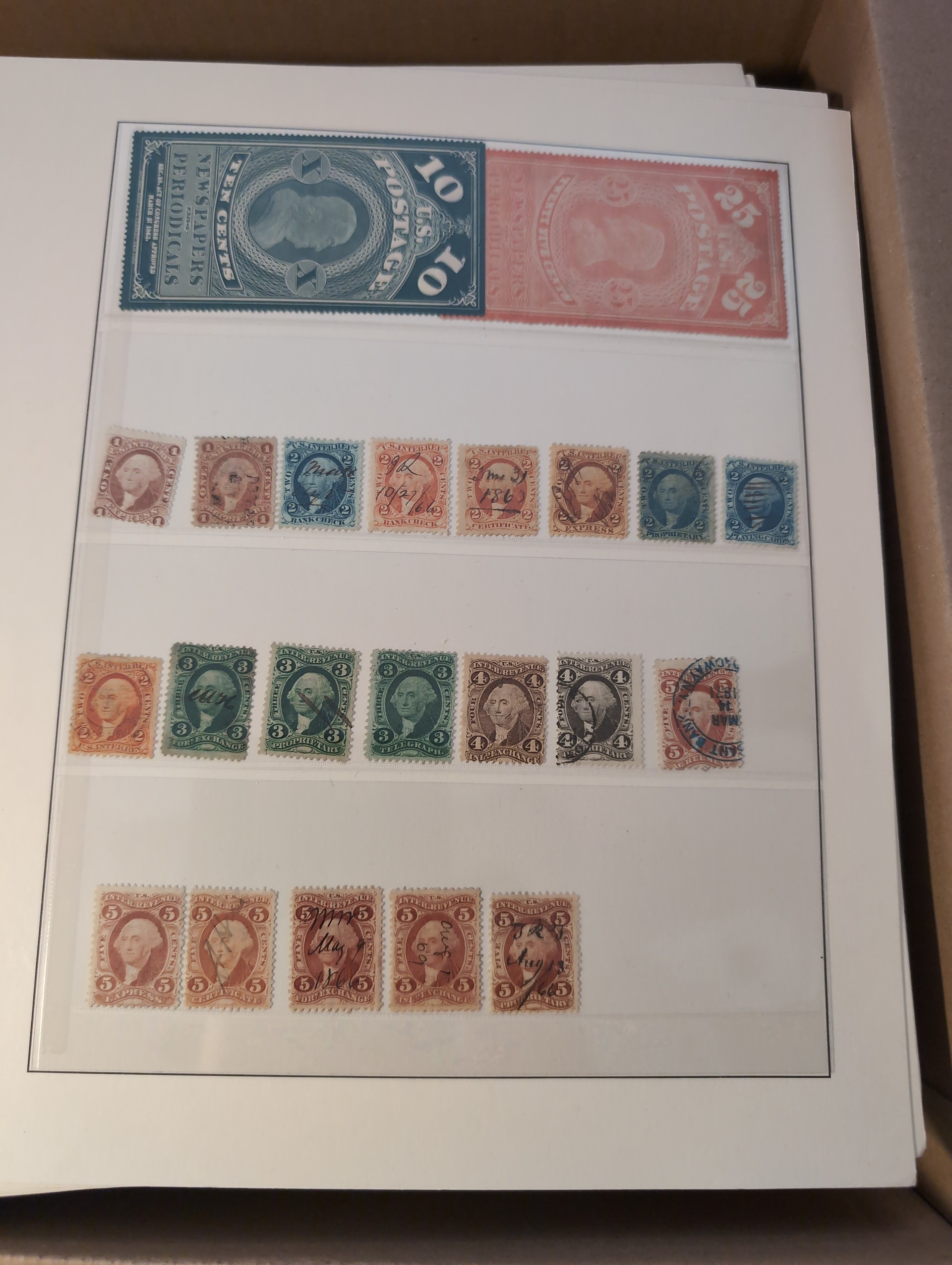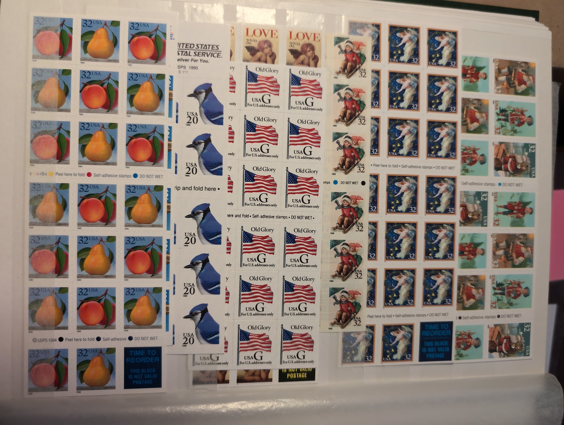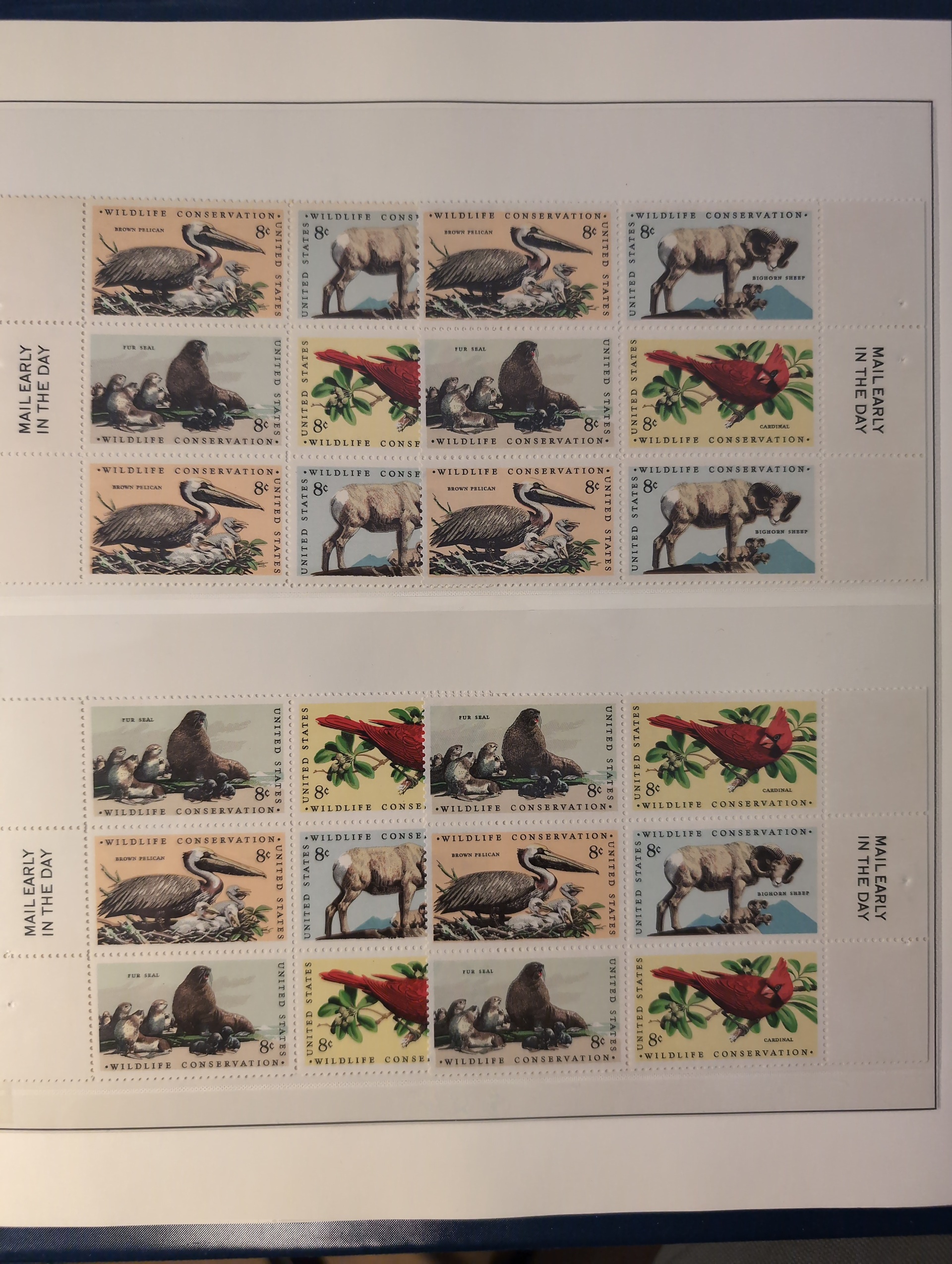 U.S.A. Accumulation ★★ 1930s–c2015 in box. One album with modern sheets, stockbook with modern stamps and booklets 1990s–early 2000s. 2 Albums with blocks of six all with "post early" tabs. Pages with booklets 1970s–1990s and some assorted stamps 1930s–1960s. Mostly fine quality. Approx. 13 kg. (1000s)