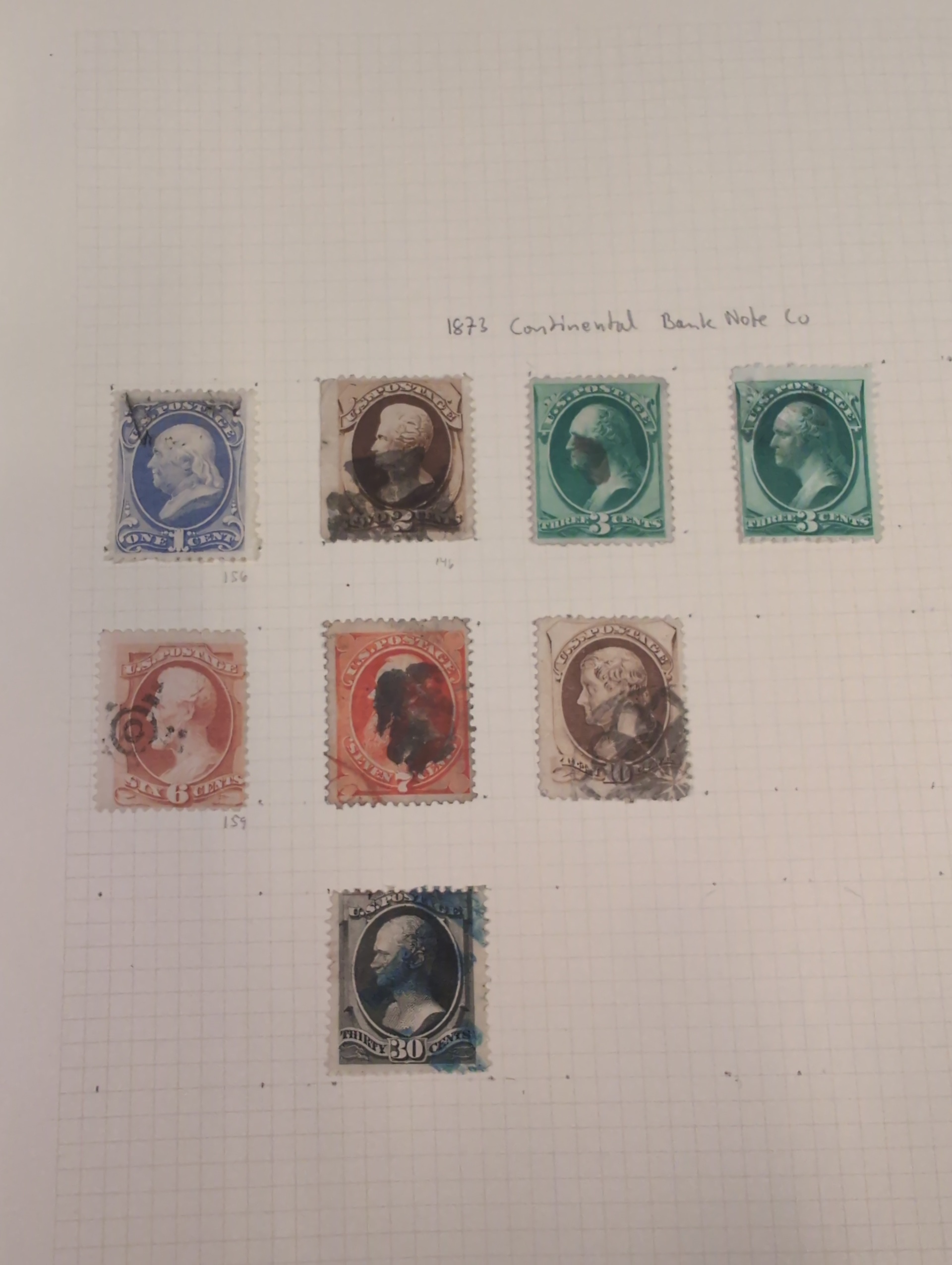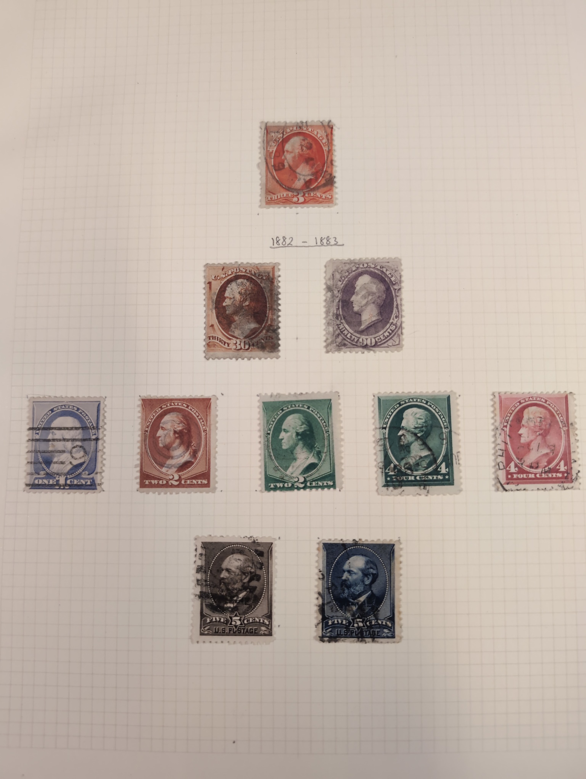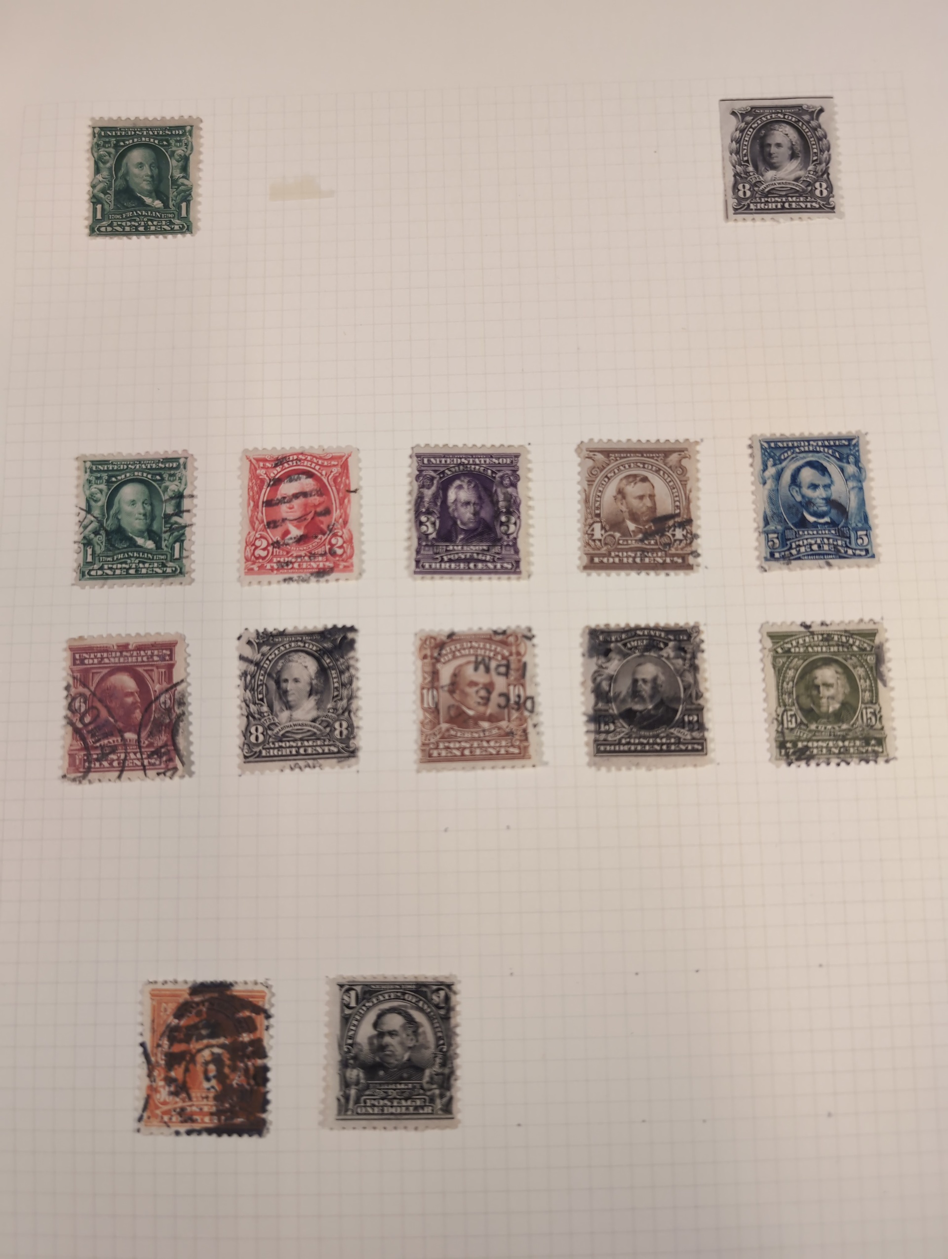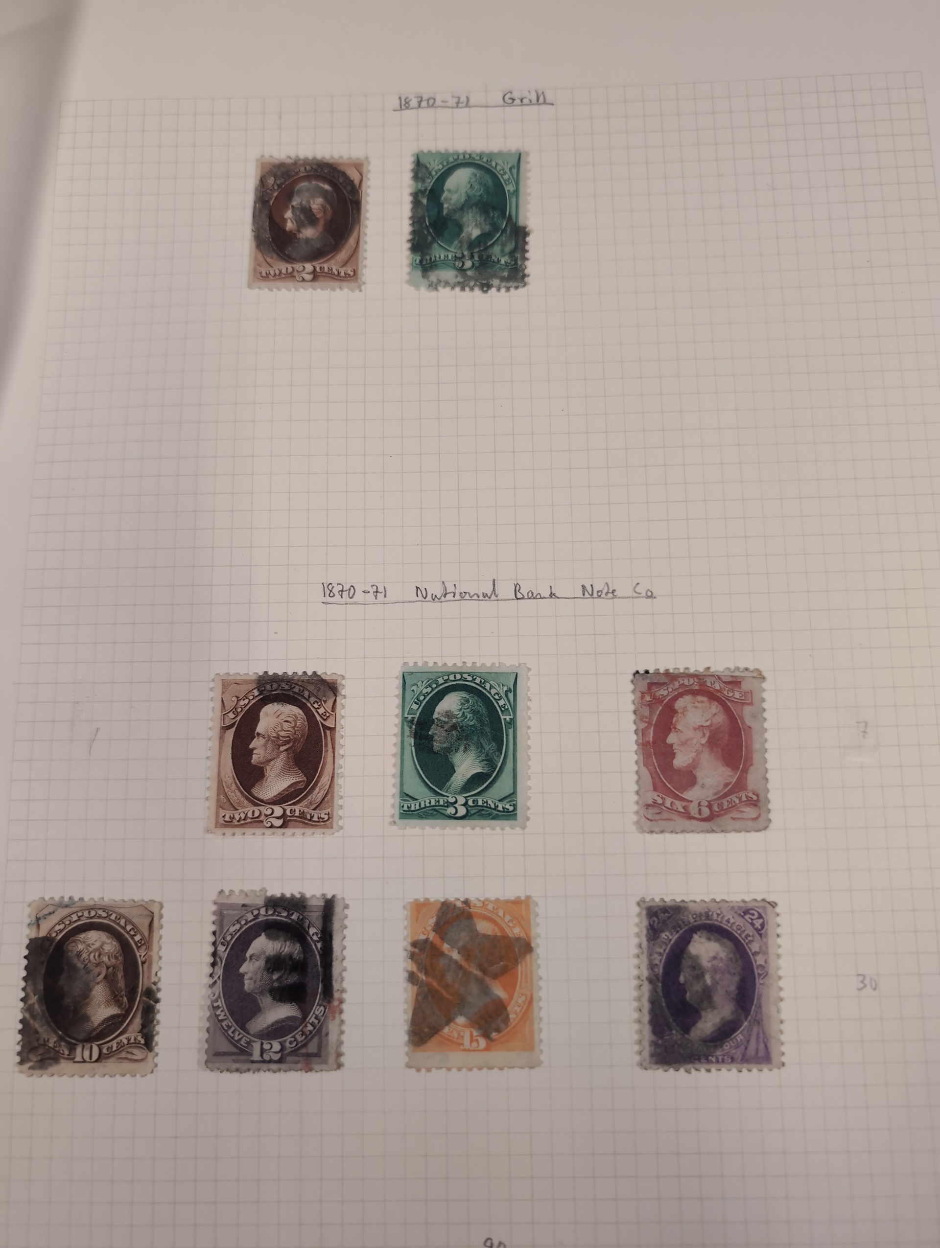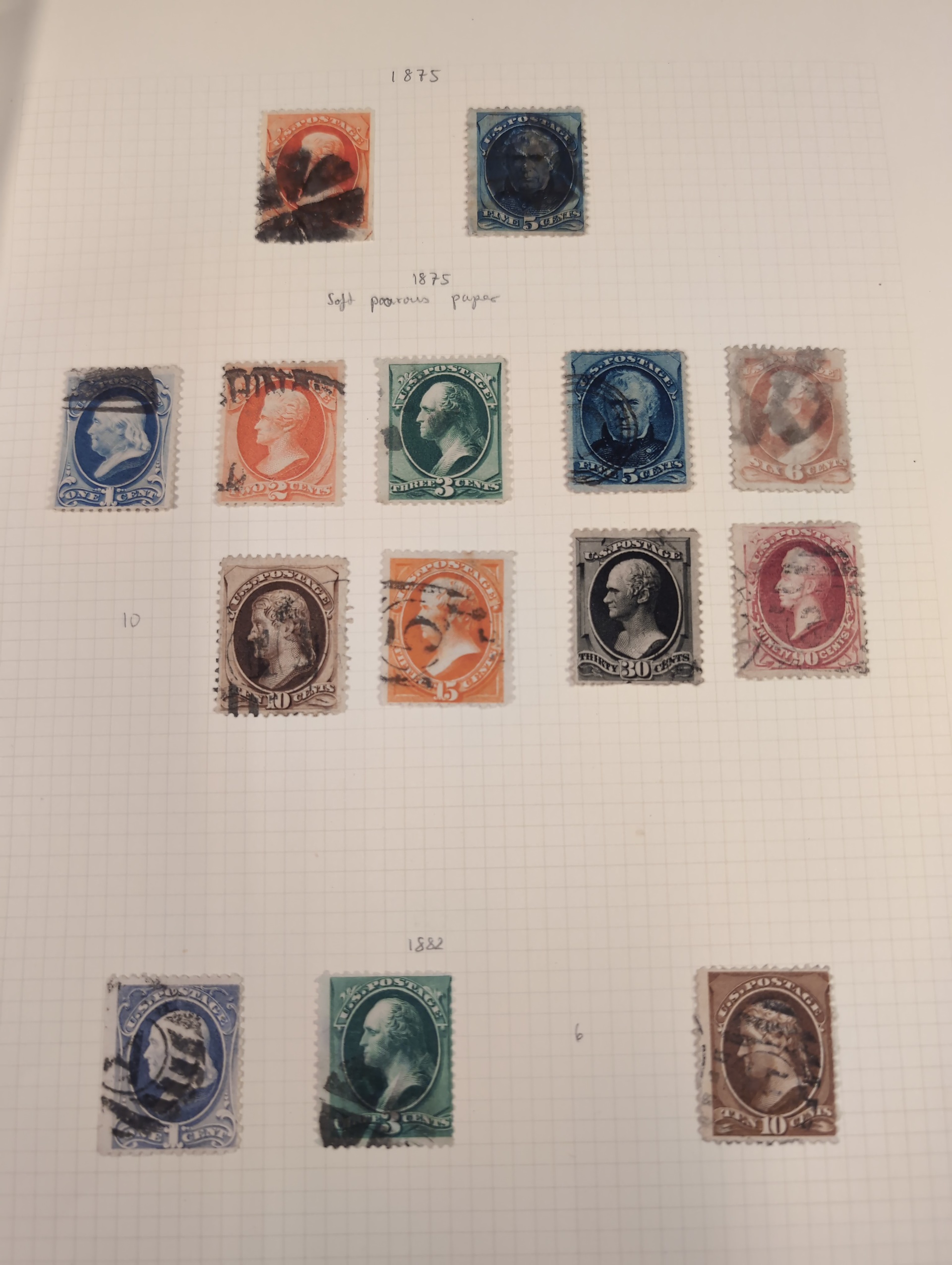 U.S.A. Collection/accumulation mostly used 1861–1950s on leaves and small stockbook. Collectiion on leaves from 1870–1902 with some better e.g. 1870 24c, 1875 90c, 1882 90c, 1902 $1. Stockbook with some officials and some early stamps. Please see a selection of scans at www.philea.se. Somewhat mixed quality. (100s)