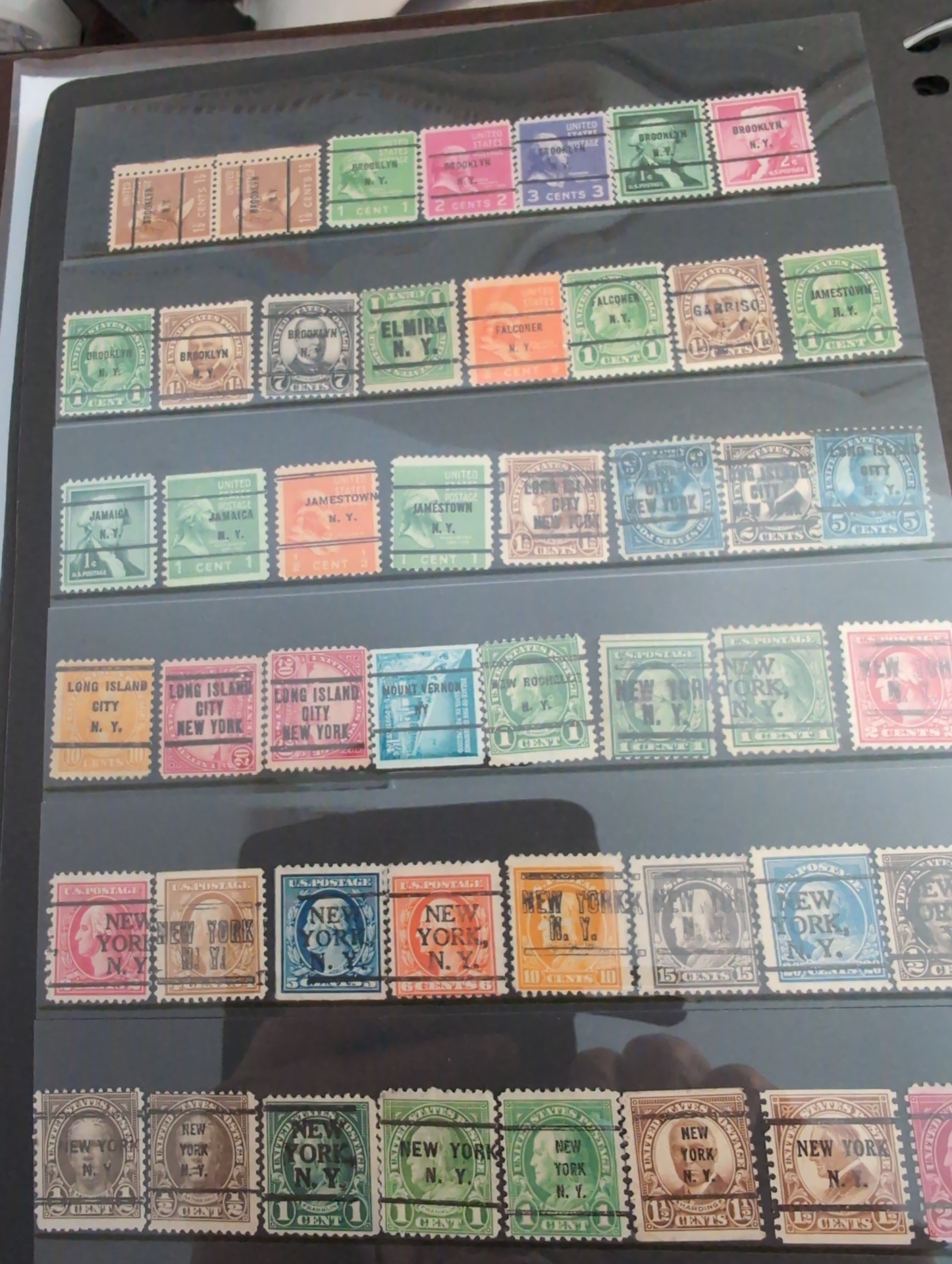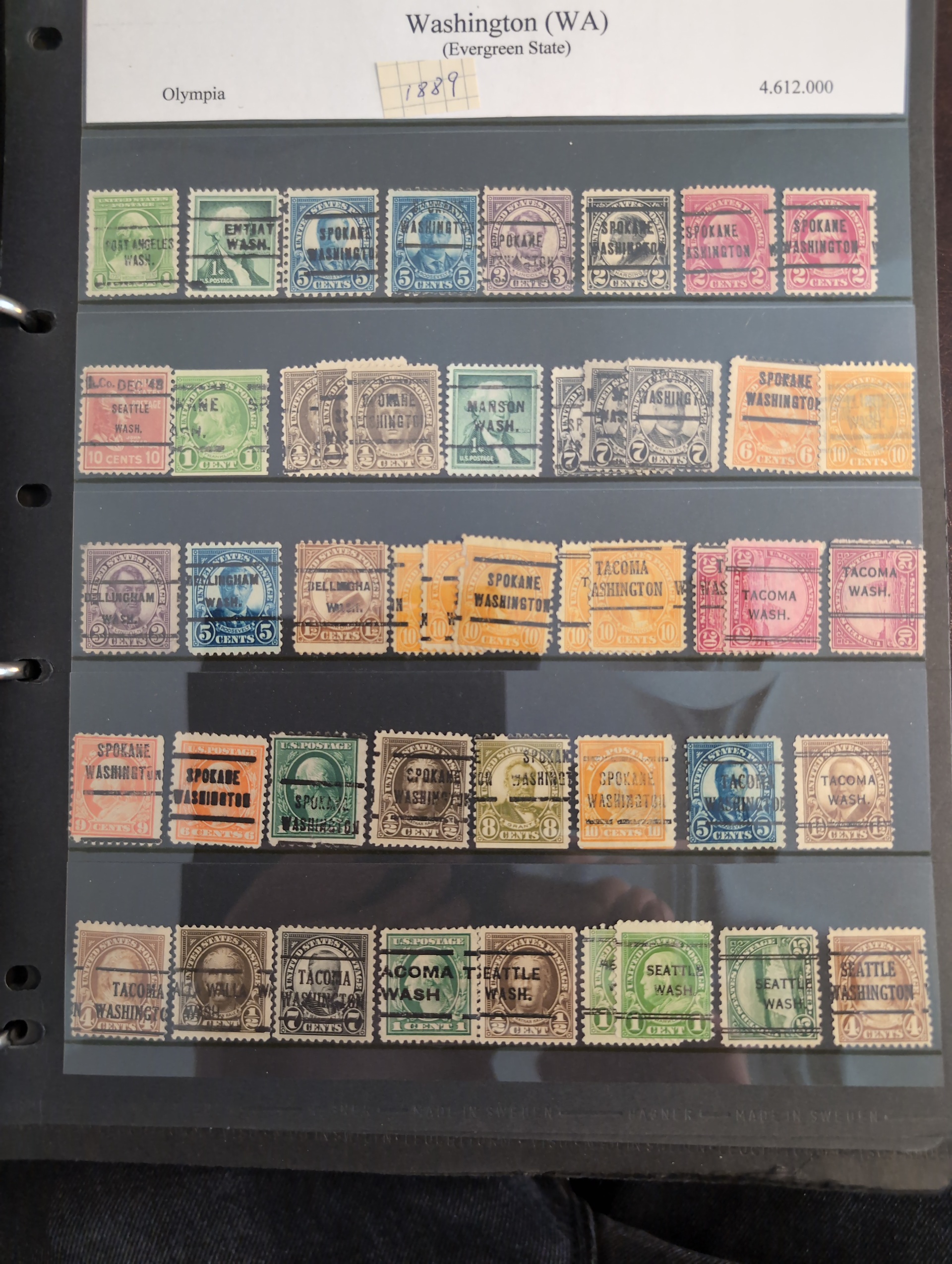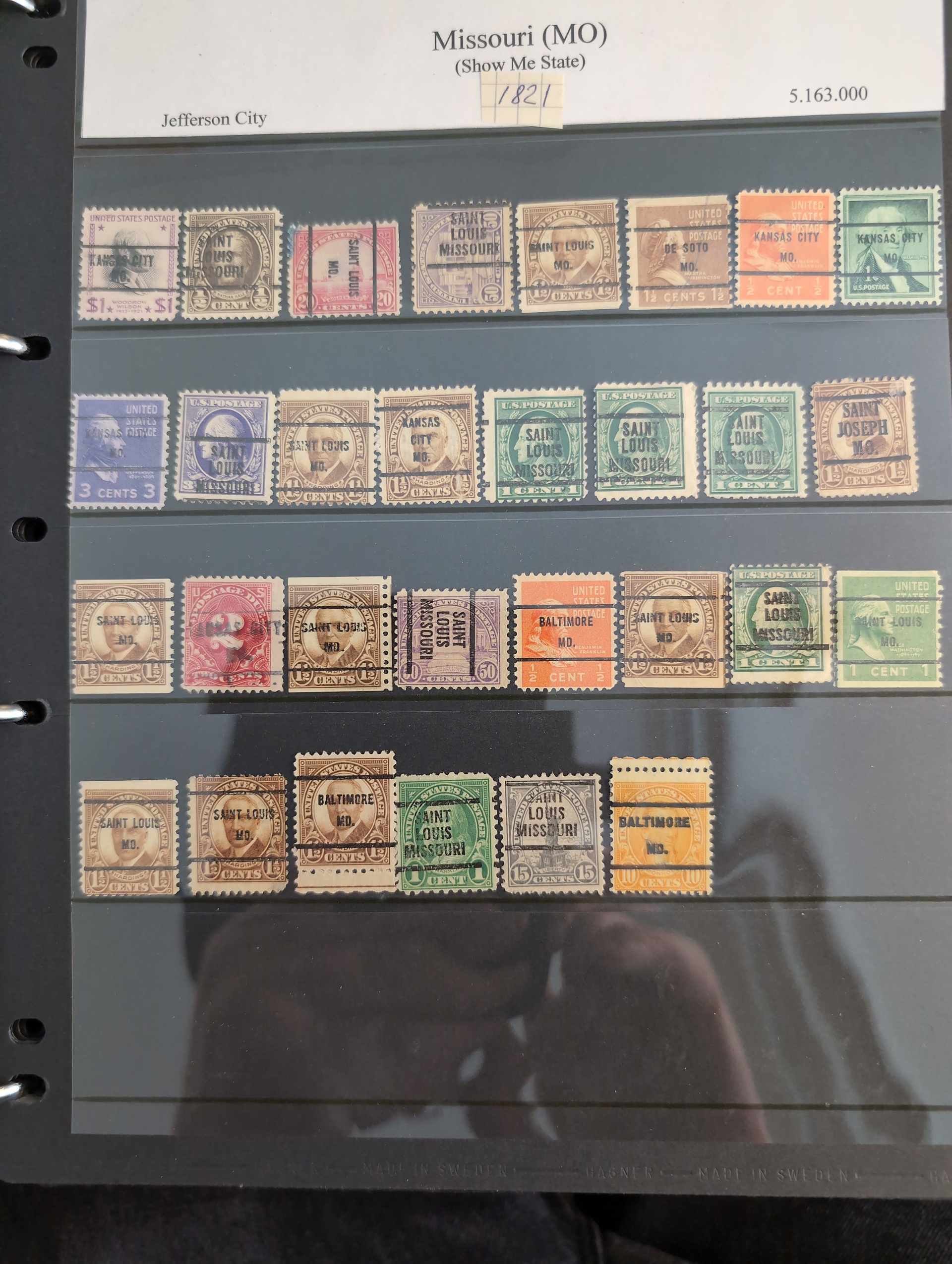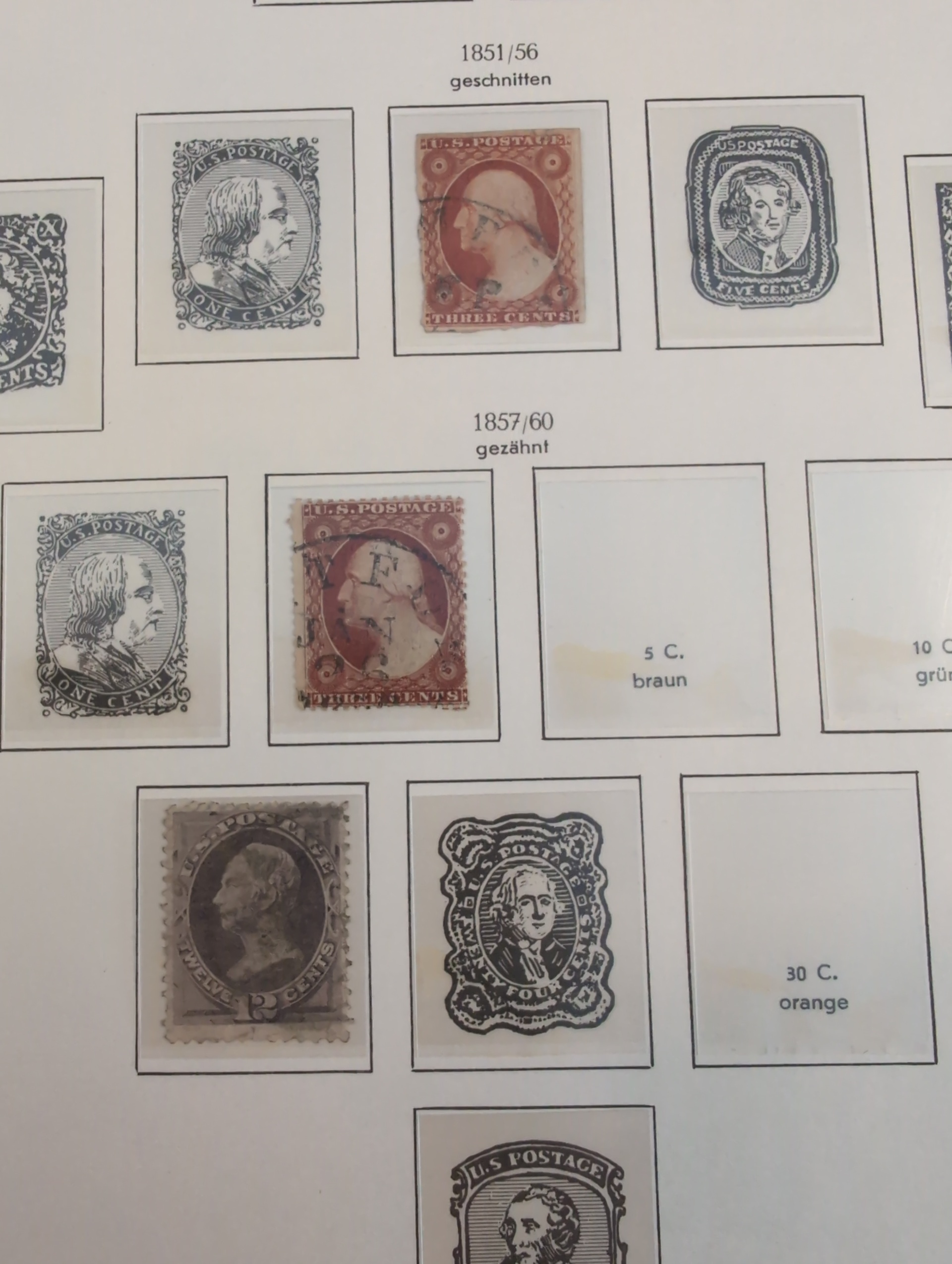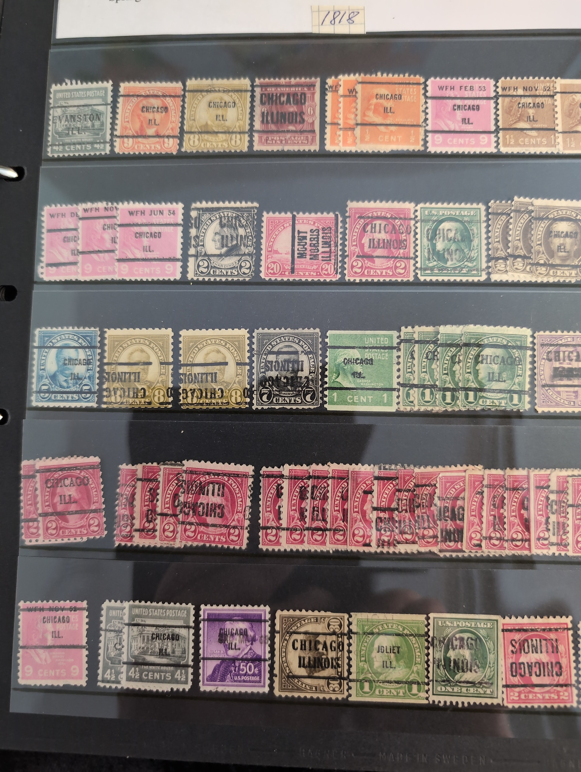 U.S.A. Collection/accumulation ★★/★/⊙ 1851–1996 in box. Four Ka-be albums (1847–1993) with a few better stamps. e.g. Jefferson 5 c 1861, Lincoln 15 c w. grill, Perry 1870 and Colombus up to 30 c. From 1920s mixed mint and used and well filled. Also included album with pre-cancels (1750 pcs) but mostly common good spread of different stamps. One stockbook mostly mint duplicates. Please see a selection of scans at www.philea.se. Mostly fine quality. Approx. 13 kg. (3000+)
