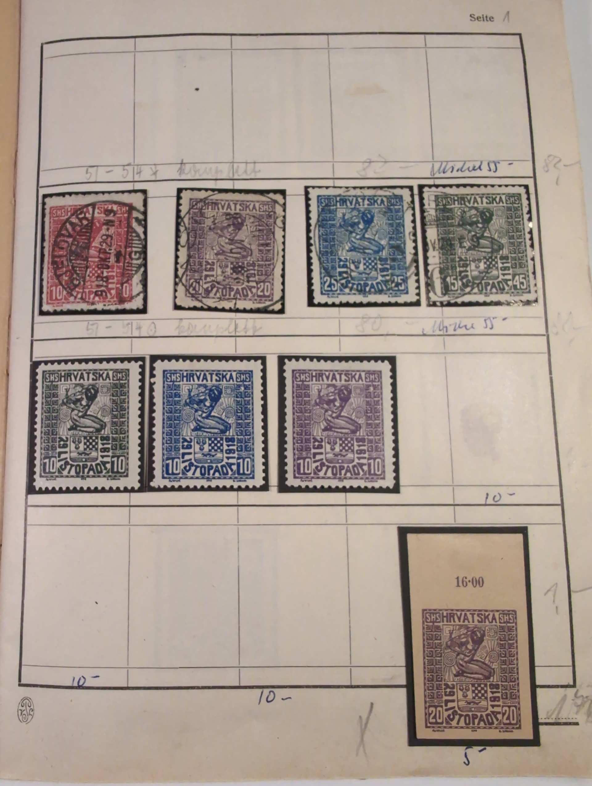 Yugoslavia. Accumulation used 1918–1950s in box. Nine club books with some better stamps and sets much from the earliest period and some from the different areas incl. 2 club books with cut pieces with cancel interes, Please see a selection of scans at www.philea.se. Good quality. (1000s)