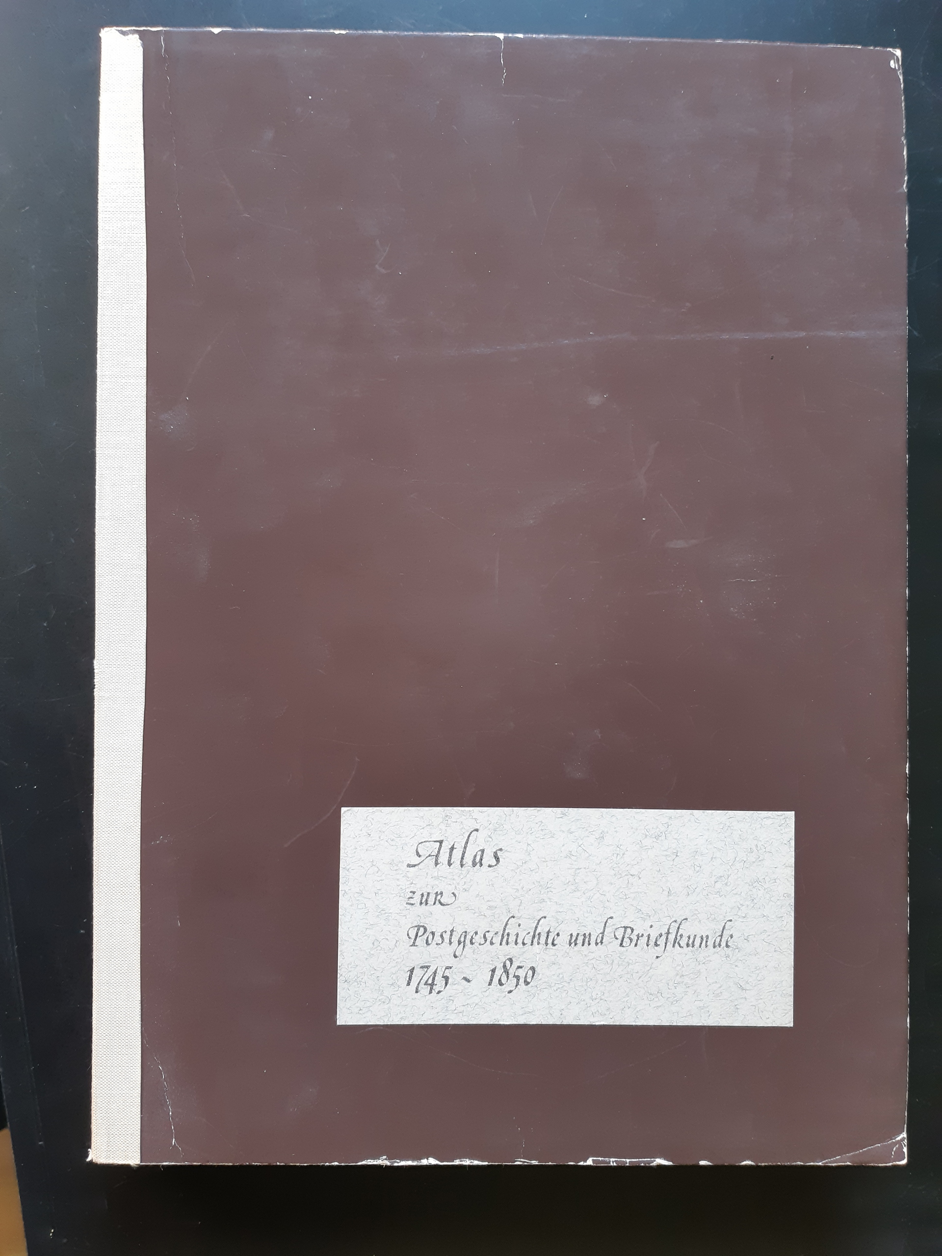 Literature. Münzberg, W., 'Atlas zur Postgeschichte und Briefkunde 1745–1850', 1980, German pre-philately atlas, a compilation of German maps, ca. 250 maps, some with coloured frontiers, softbound. Used, spine with writing.