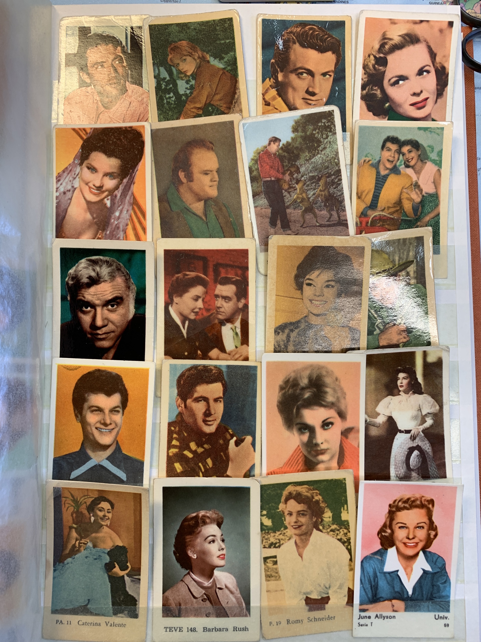 Collectable cards, ALL WORLD. Movie stars. Two albums and two boxes with thousands of cards. Please see a selection of scans at www.philea.se.