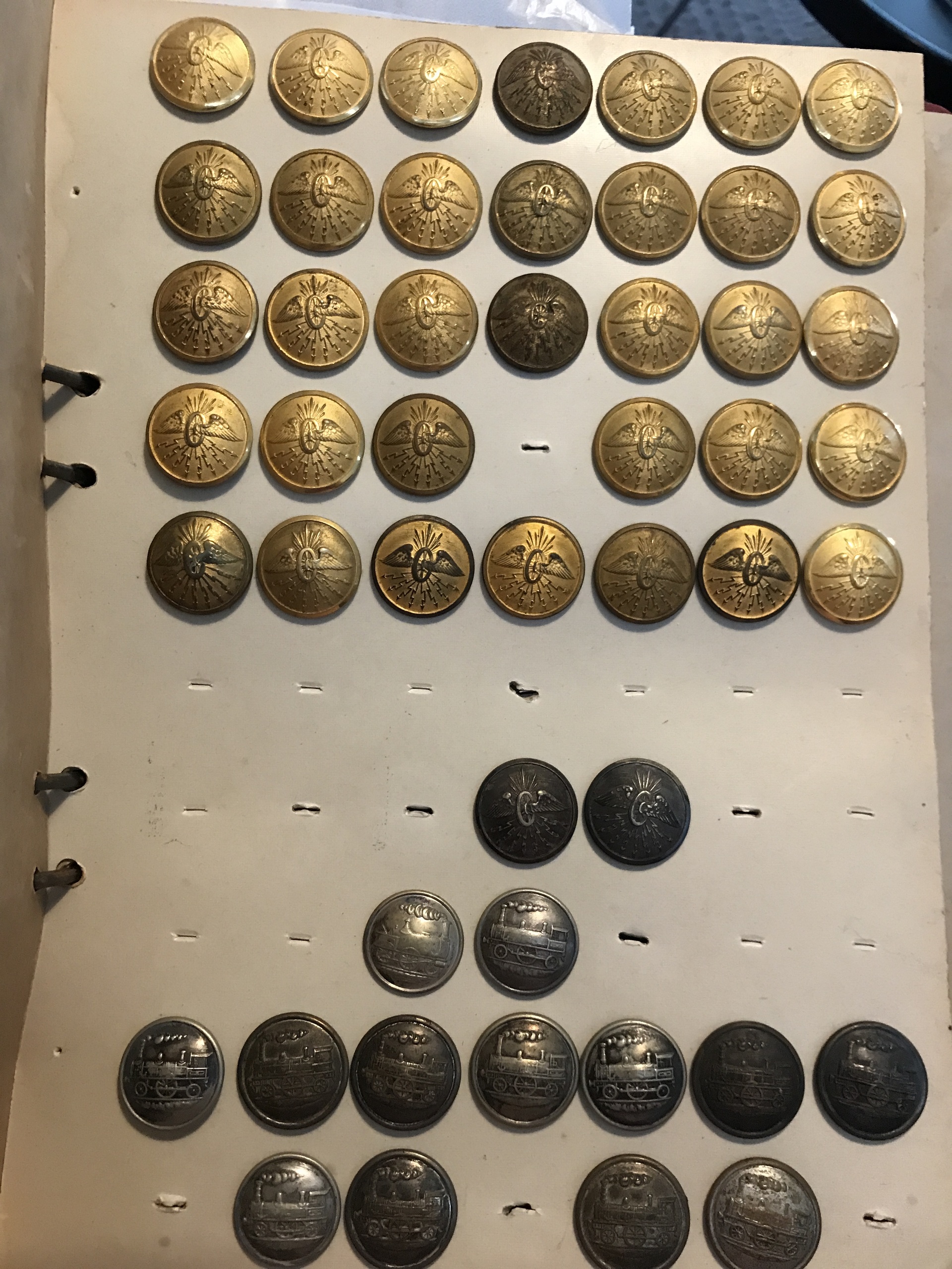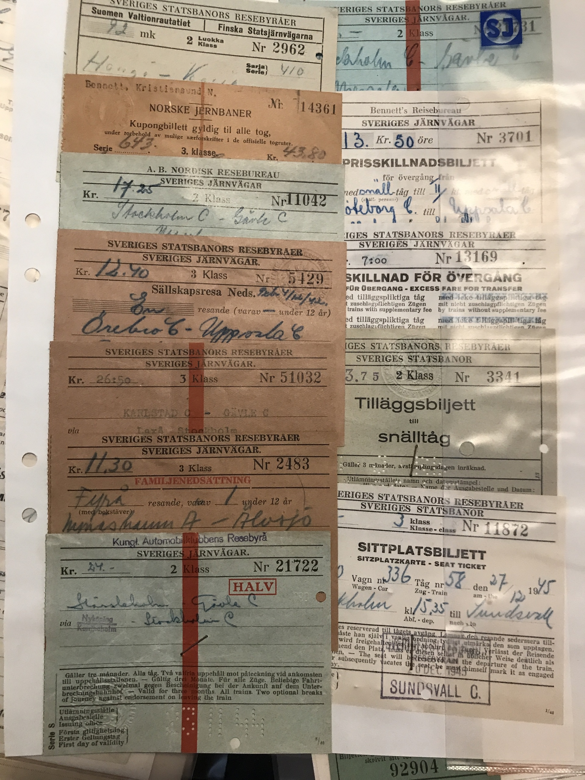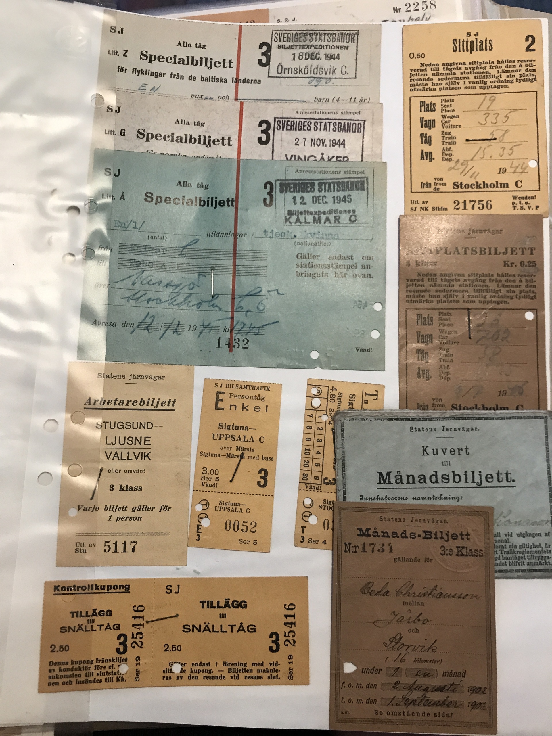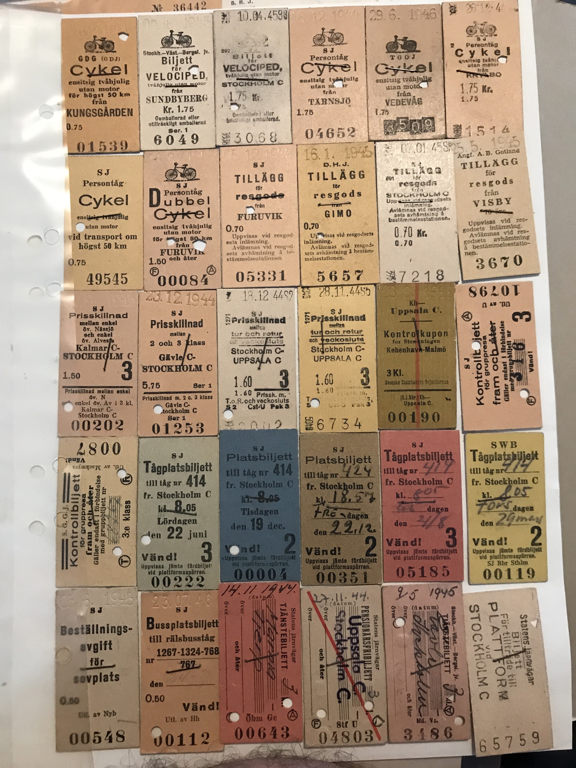 Miscellaneous, Sweden. Collection Railway memorabilia ca 250 buttons, gallons and caps brands in binder+ about 240 Railway tickets incl. some other receipts for bicycle/military etc. Please see a selection of scans at www.philea.se.