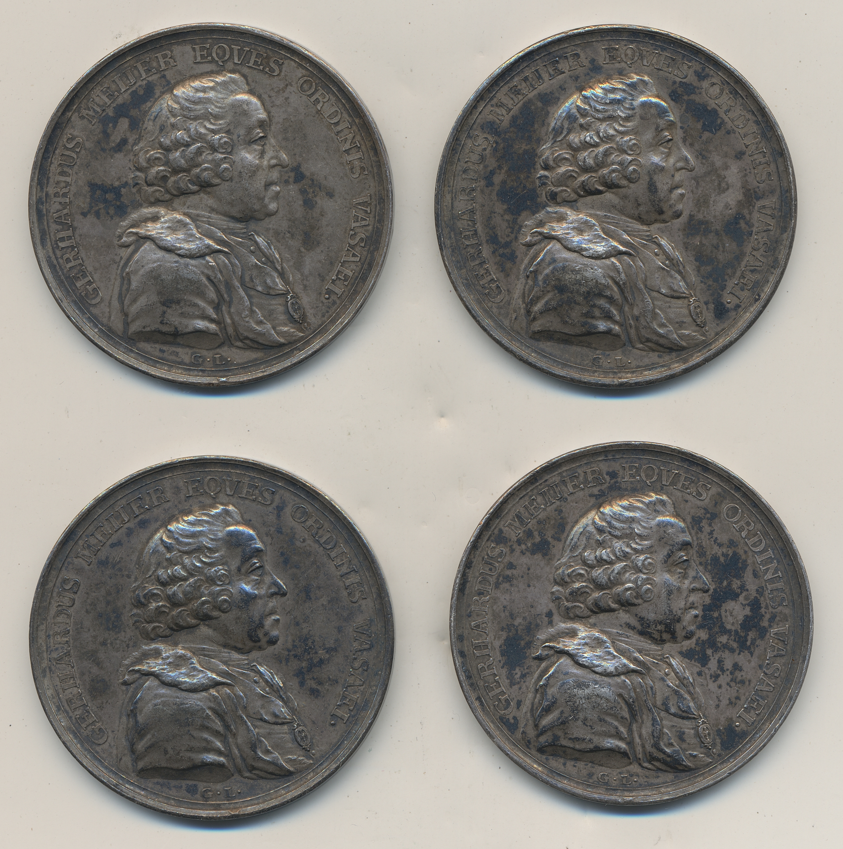Medals, non-regal, Sweden. Four silver medals, Gerhardus Meijer Eques ordinis vasaei. 1775, 49 mm, G.L, mixed quality.