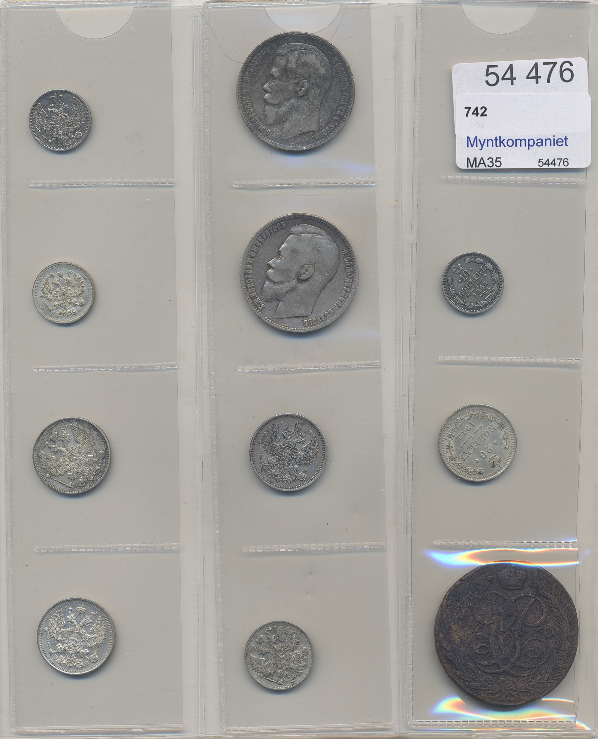 Coins, Russia. Small group of eleven Russian coins, mostly in silver. Please inspect! F-UNC.