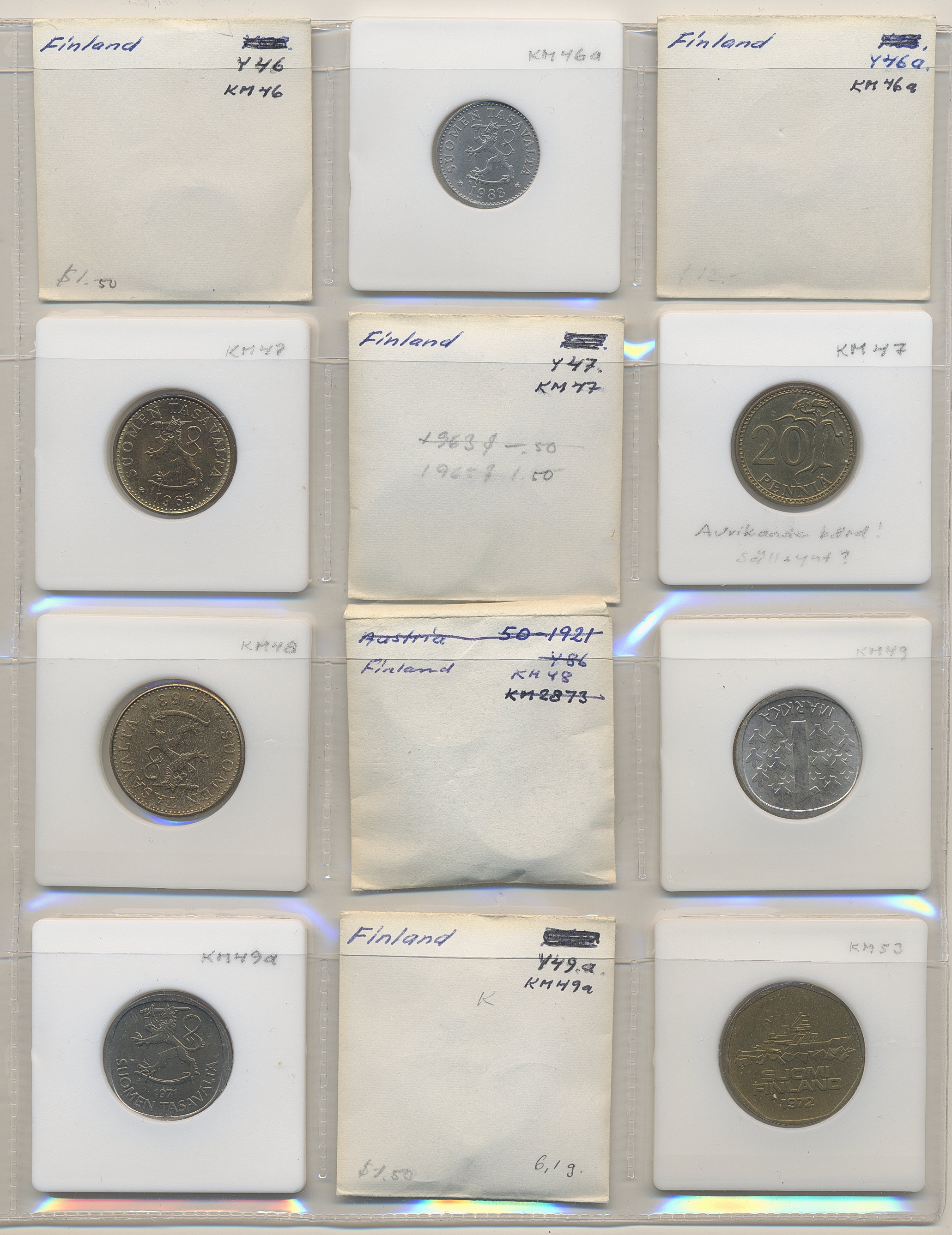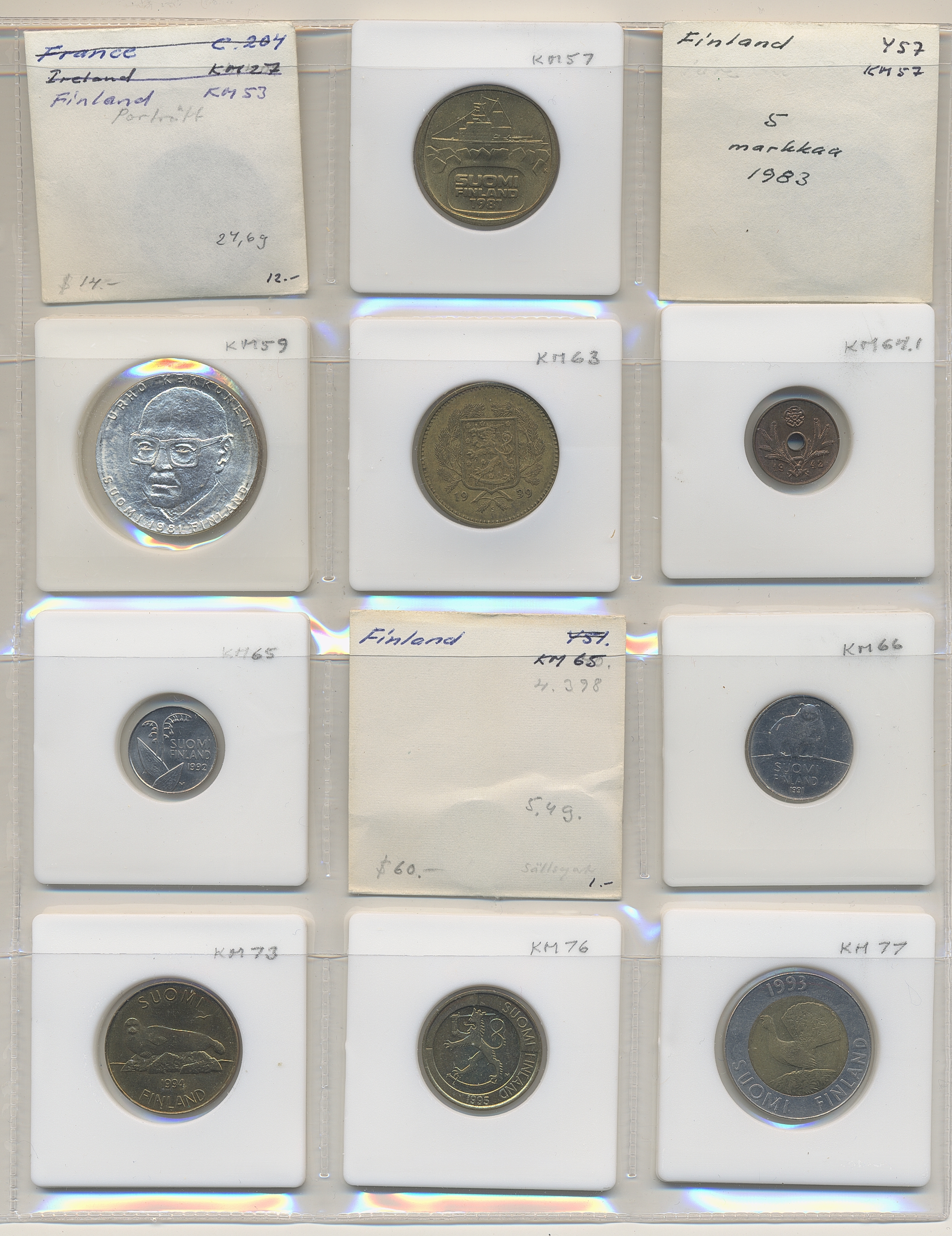 Coins, ALL WORLD. Collection of coins in album, including Finland, France. In total 144 pcs. Please inspect!