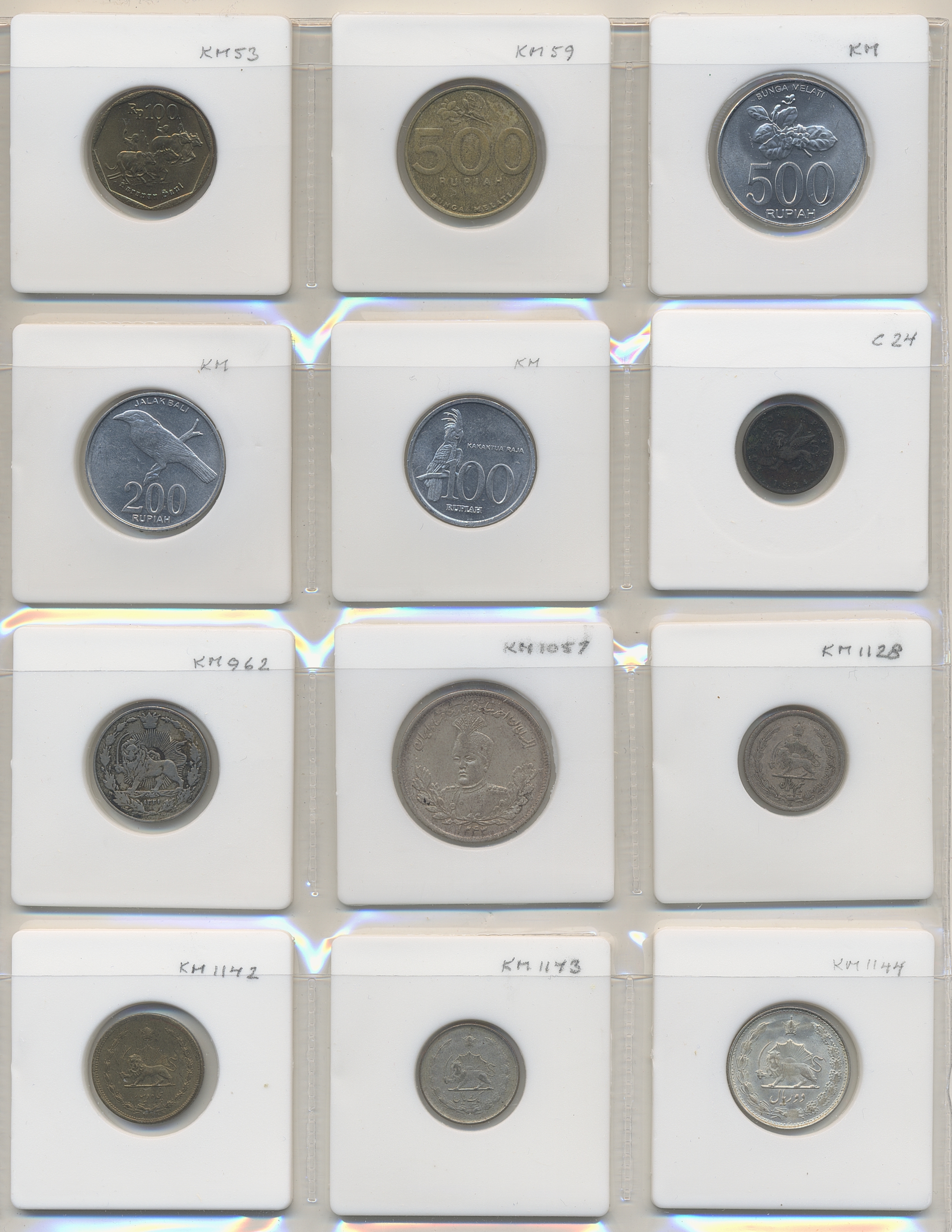 Coins, ALL WORLD. Collection of coins in album, including India, Indonesia, Iran, Ireland. In total 144 pcs. Please inspect!