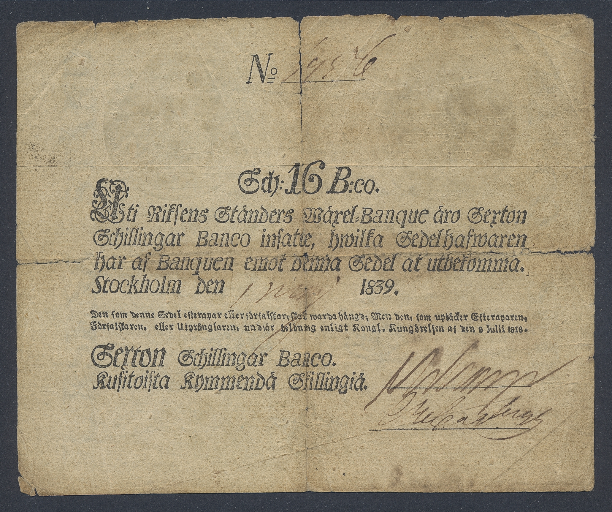 Banknotes, ALL WORLD. Seven banknotes, 1839–1960, mixed quality.
