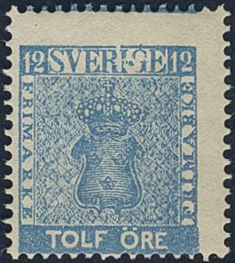 Sweden. Facit 9v13 ★, 12 öre blue-greenish blue with 'dot in 'G' variety'. Very unusual in mint condition, without price in Facit.