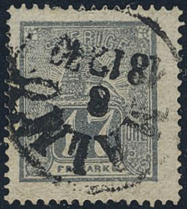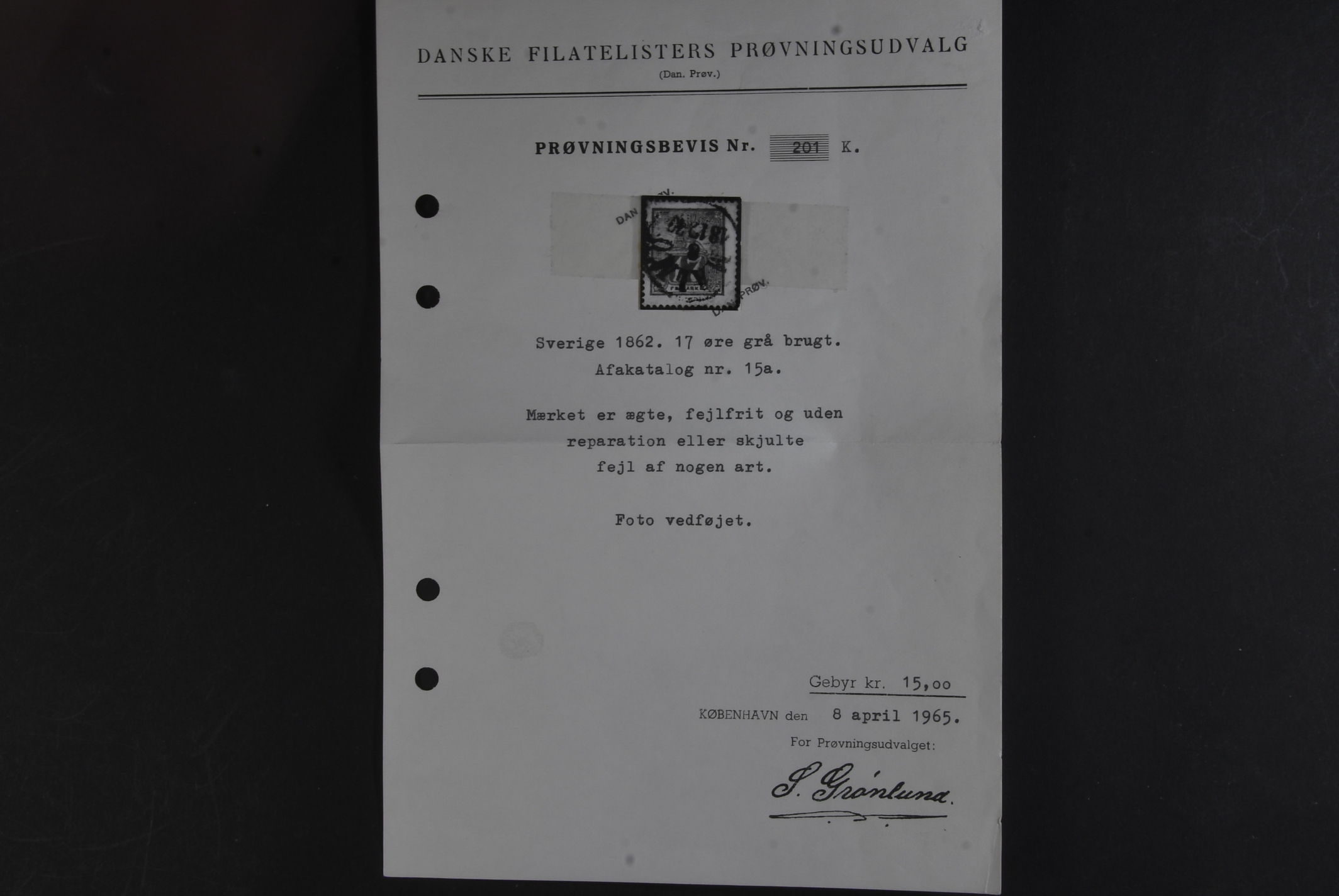 Sweden. Facit 15c used, 17 öre bluish grey. Well-centered copy with reversed canc. MALMÖ 8.12.70. Cert. Grønlund. SEK 6500