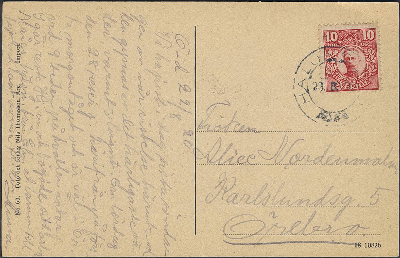 Sweden. Facit 82, Z county. HÄLJESUND 23.8.20. Postcard sent to Örebro. Postal: 2000:-