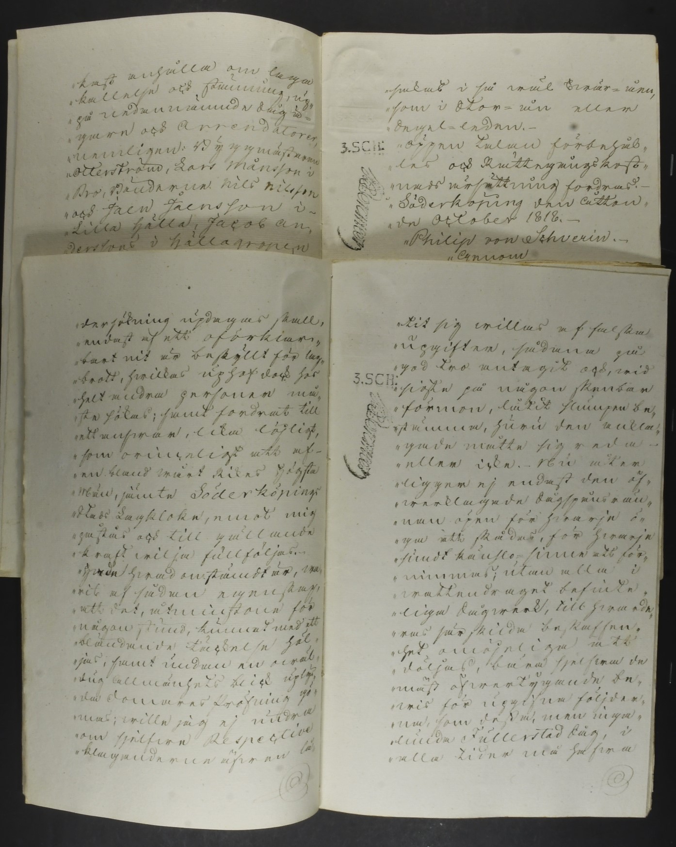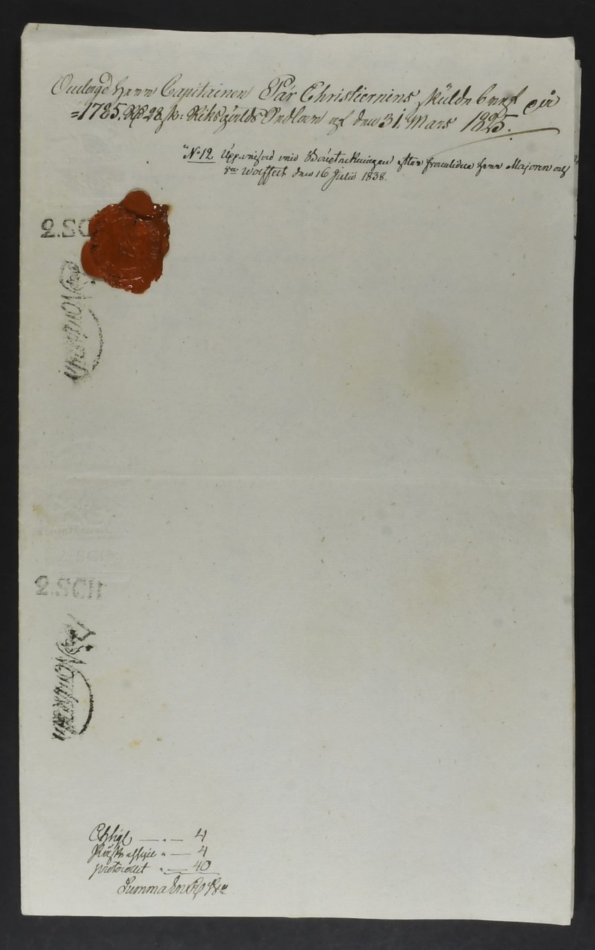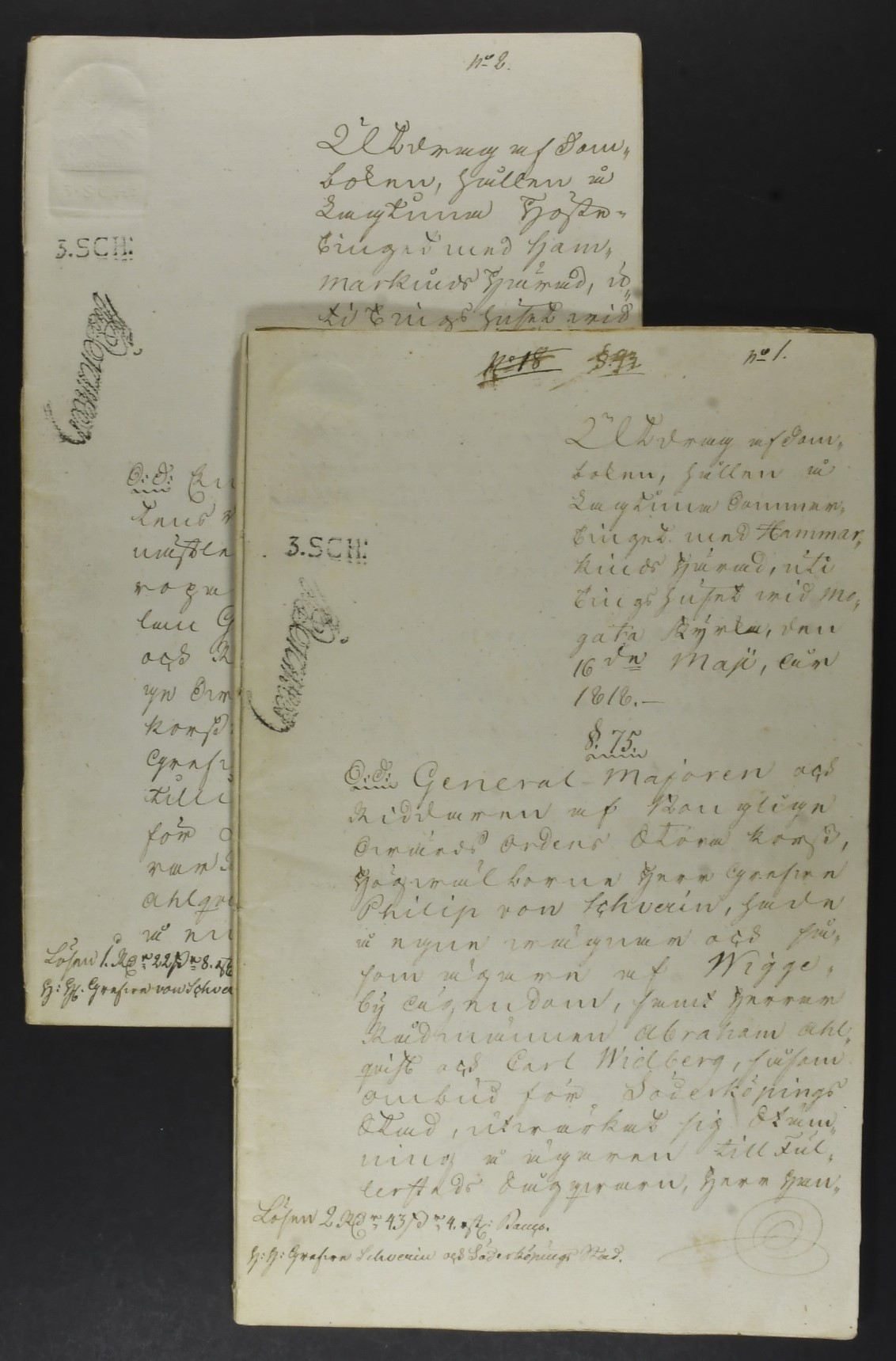 Sweden. Revenue stamped papers, lot 1811–1825. CHARTA SIGILLATA. 1 sk revalued +50% (12), 3 sk restamped on 3 sk (4th issue), 3 sk 1816 (18) Borgstedt, Some different Dutch paper makers watermarks, e.g. I.L.B., G.Brouwer, "Maid of Dort". 2 sk + 2 sk 1825 (wm S&A), 3 sk 1821 (9), 1822 (2), 2 Rd and 5 Rd 1818 (wm "GB" in cartoush) Nordvall. Forty-four cpl two-pages in total, mostly affixed together in fiscal matters. Fine to Very Fine condition. Scans are presented at www.philea.se. (44)