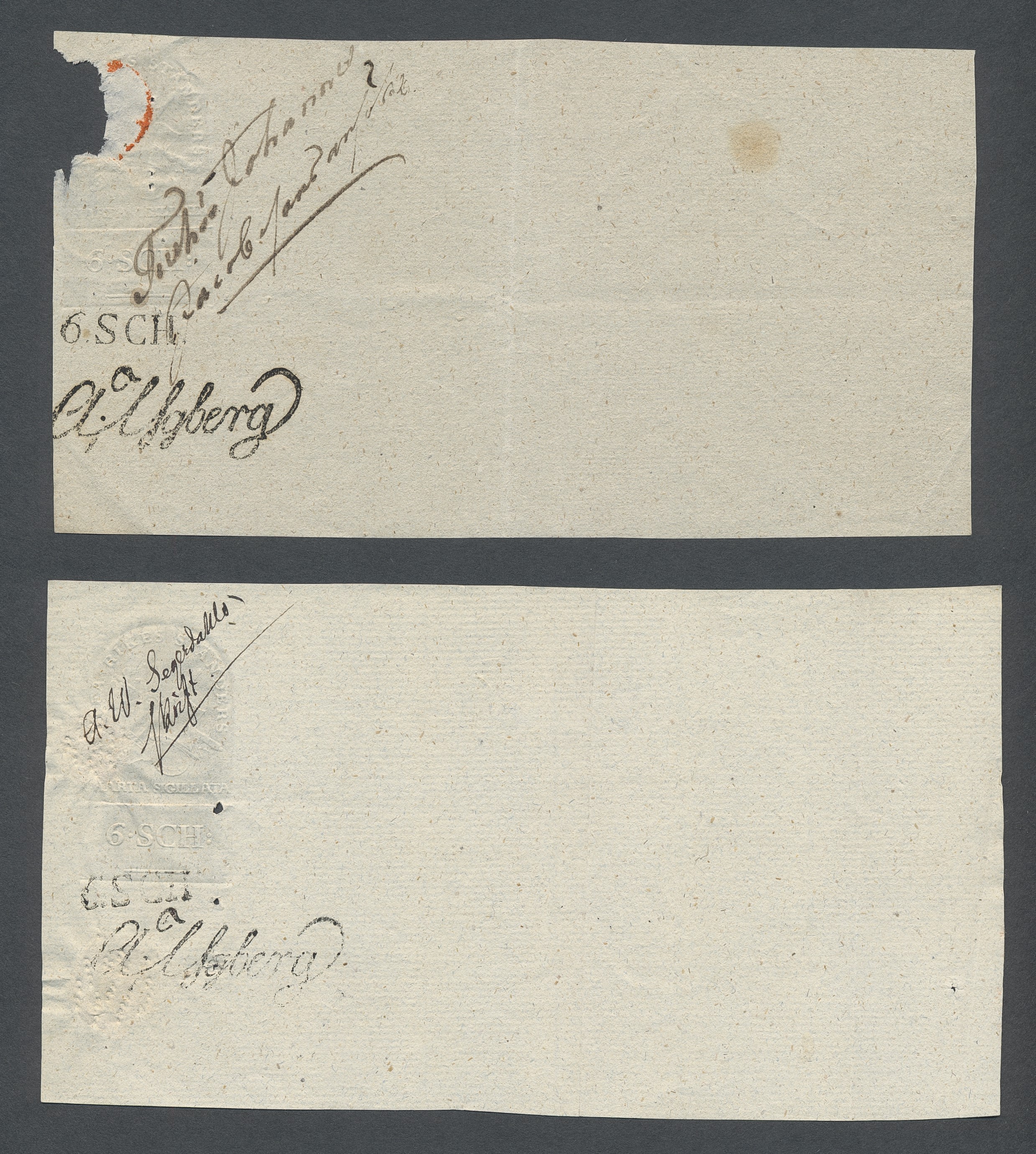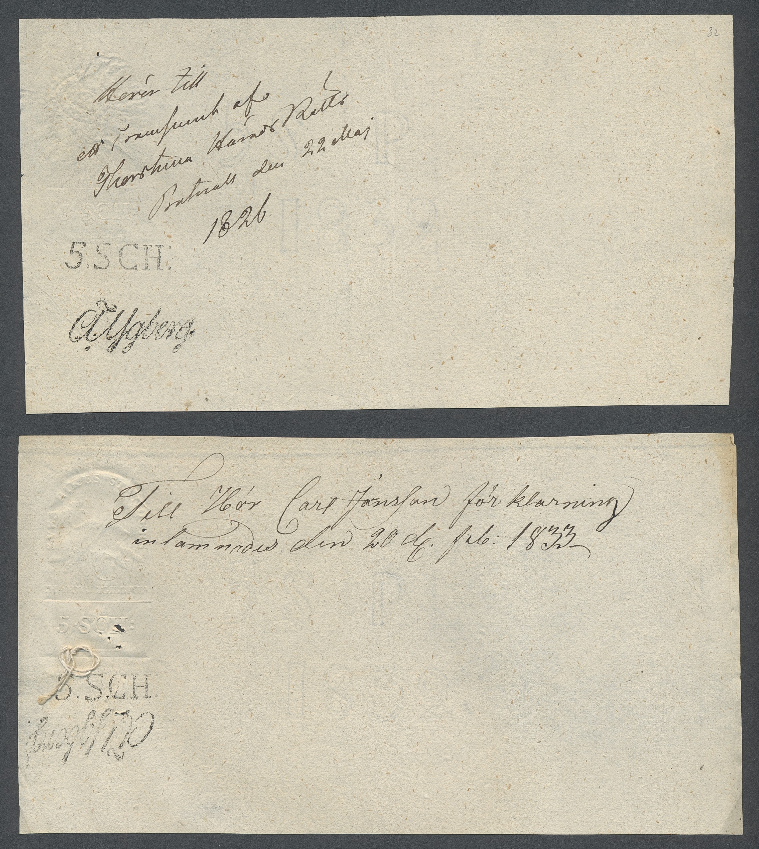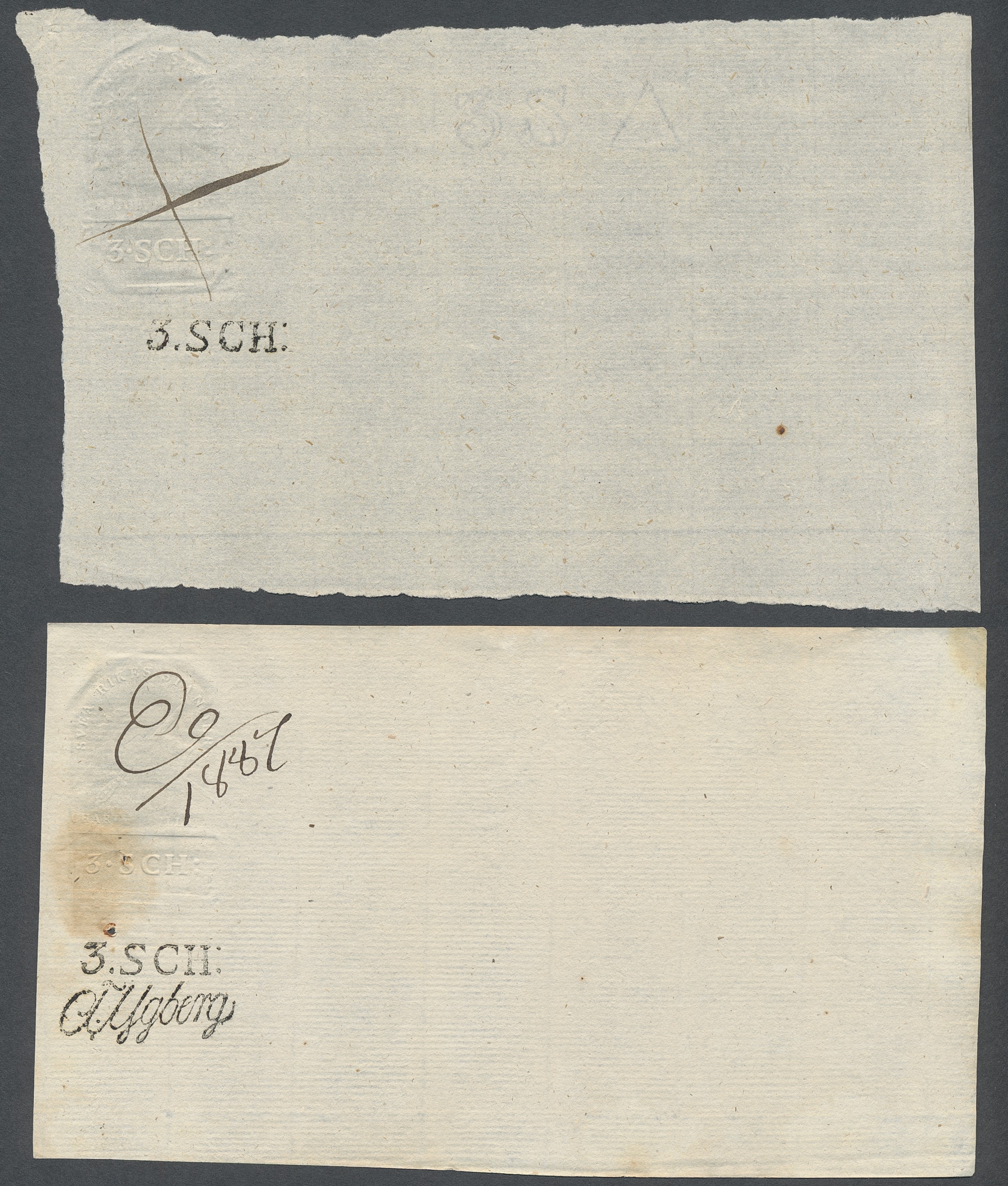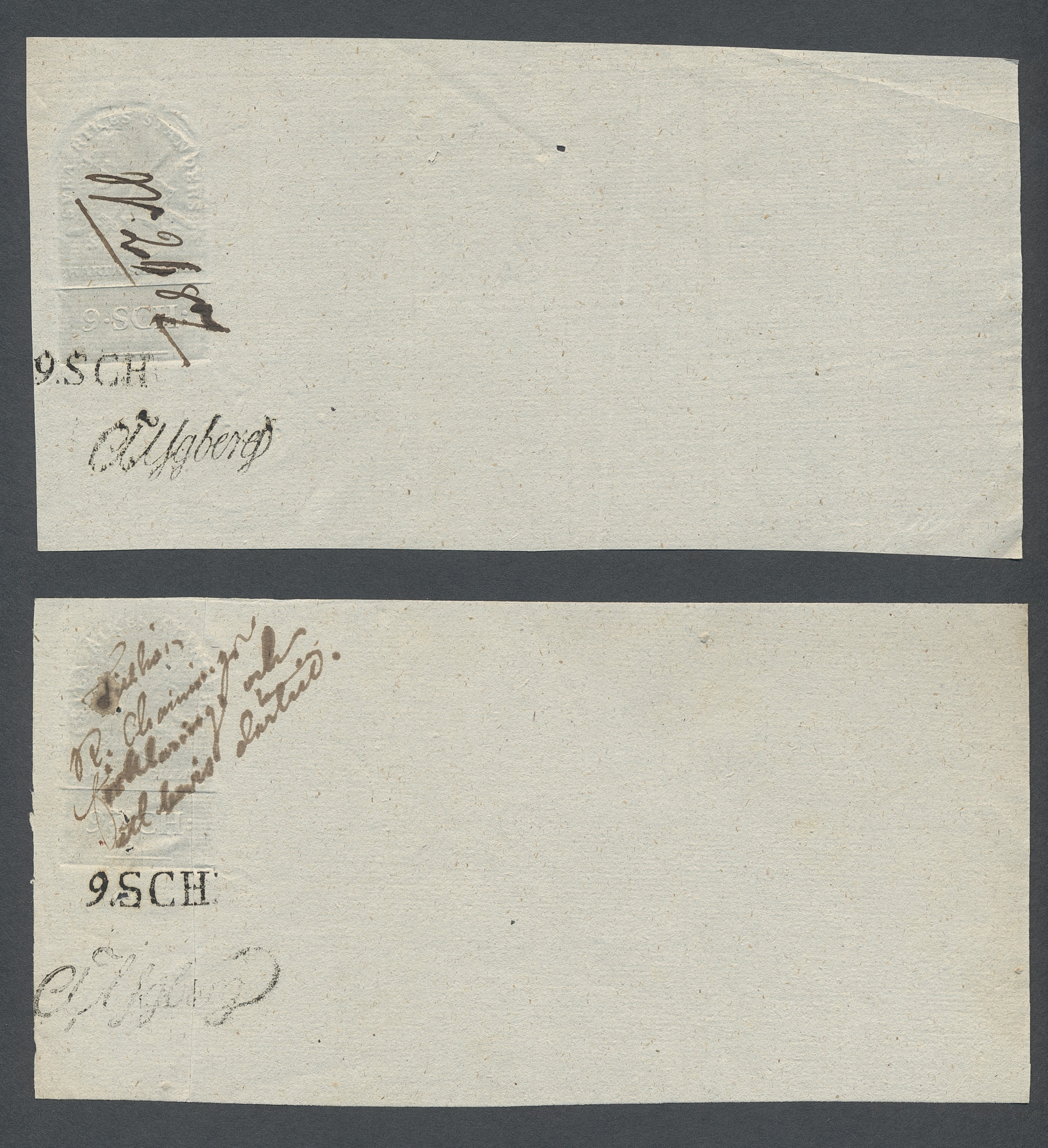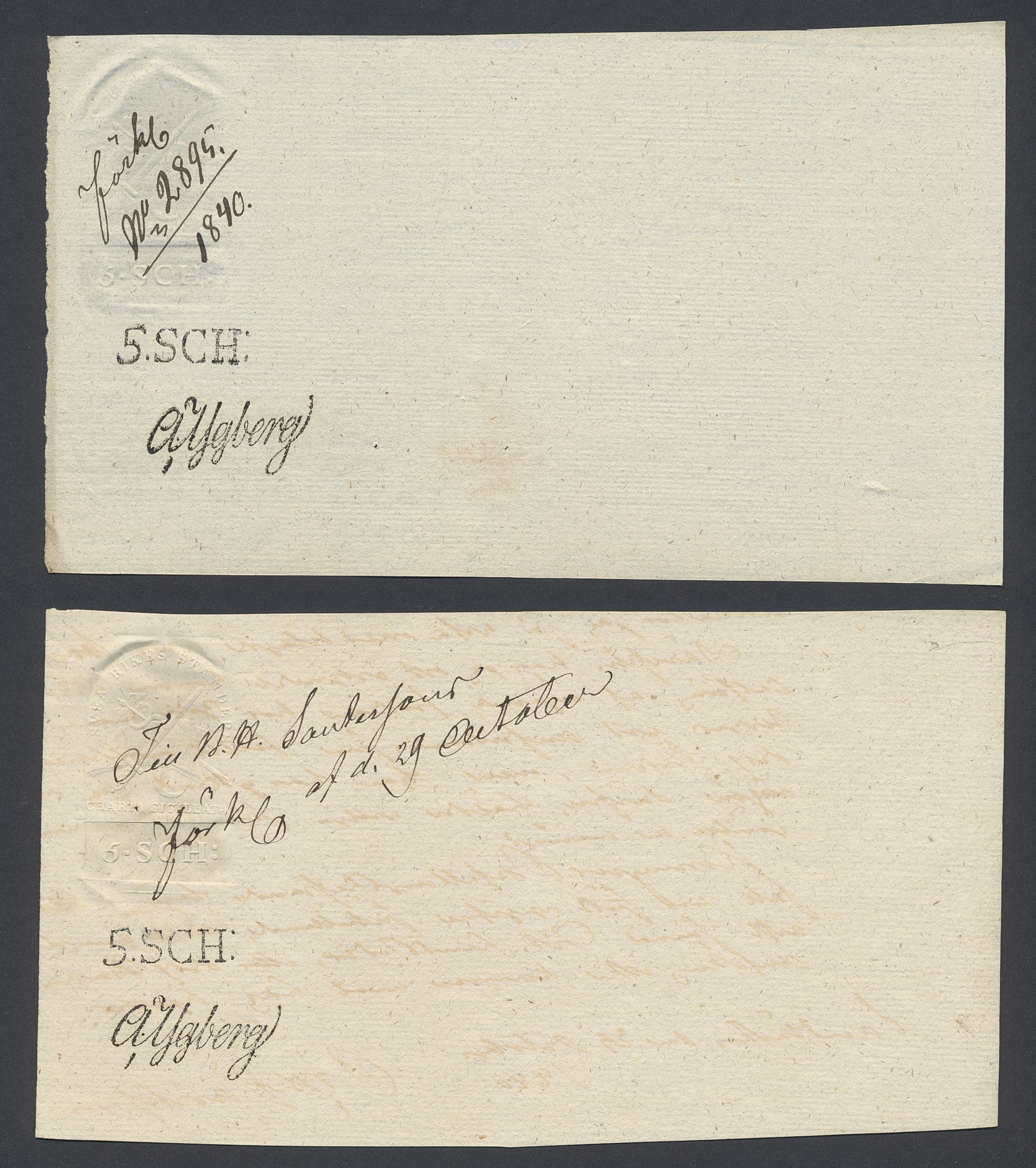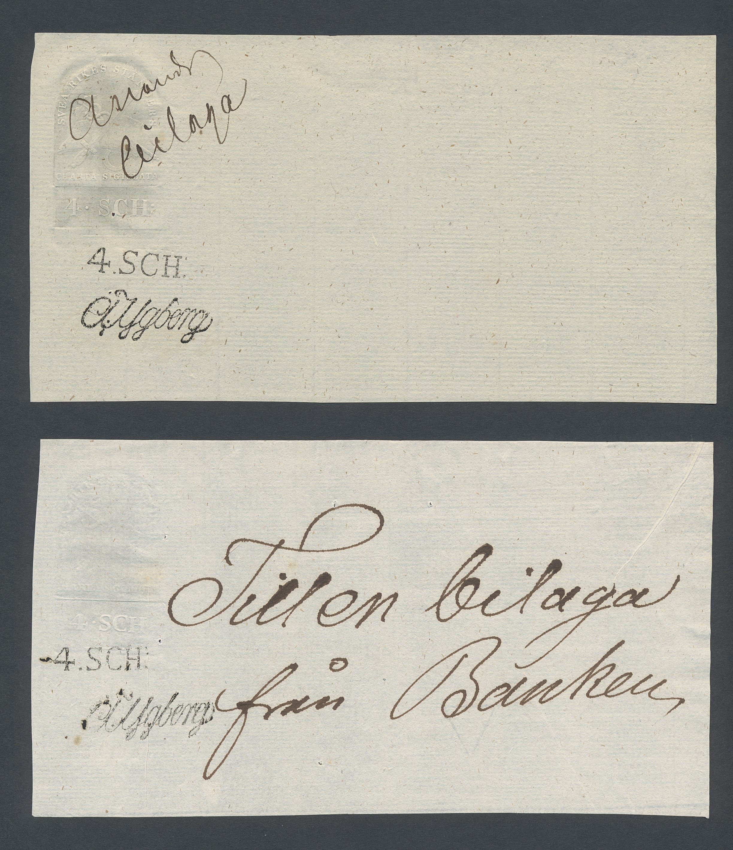 Sweden. Revenues, collection 1811–1844 in two albums. Documentary stamp, 1811 edition. Ygberg nameprint. Extensive collection 3 sch–50 Rd, just missing four denominations (32 sch, 1 1/3, 1 2/3 and 4 Rd). Specialized on watermark and paper with a large number of rare variants, e.g. mirror positions. 176 items in total incl 15 denominations graded as 'R' in Facit 2015. A compilation nearly impossible to obtain. The cat. value exceed 40000 SEK with a substancial premium for the variants. A list of the content and pictures of almost the entire lot are presented at www.philea.se. Ex. Per Sundberg. (176)