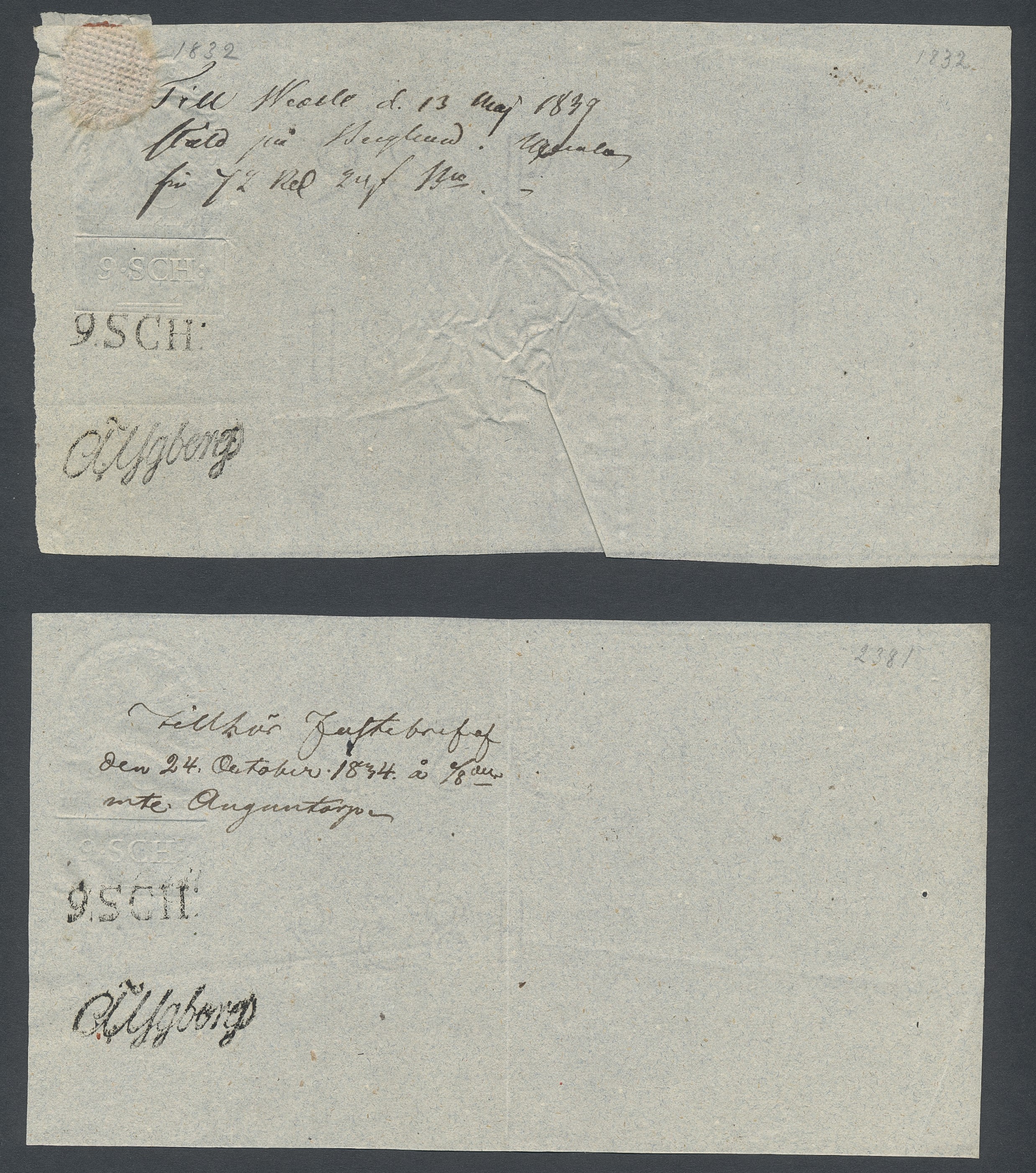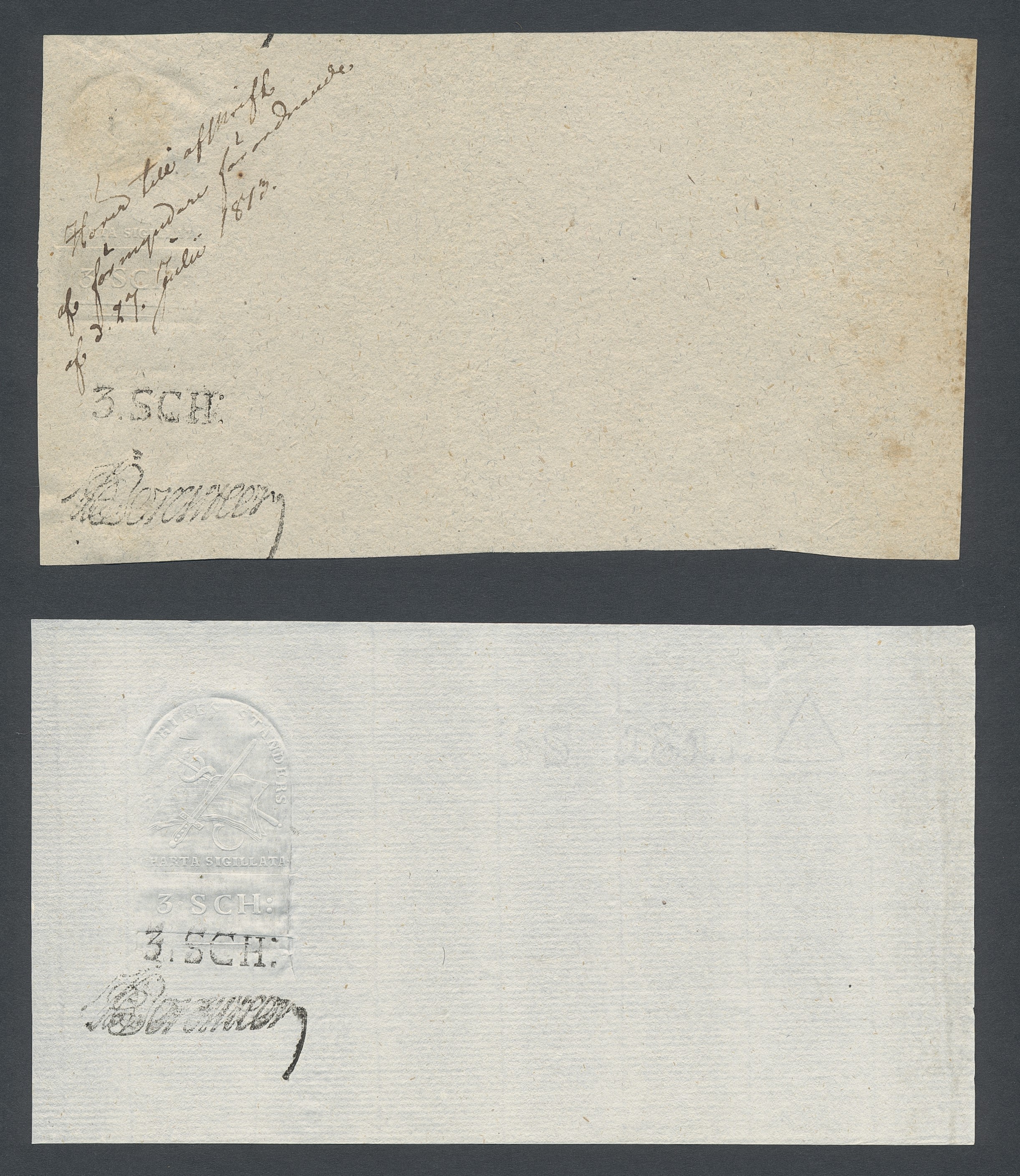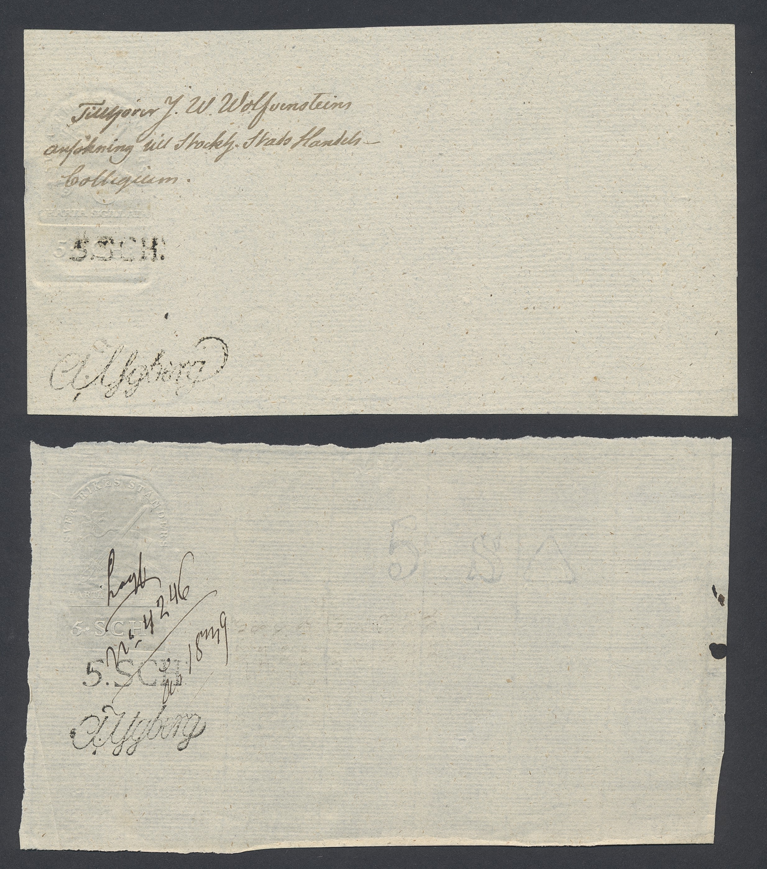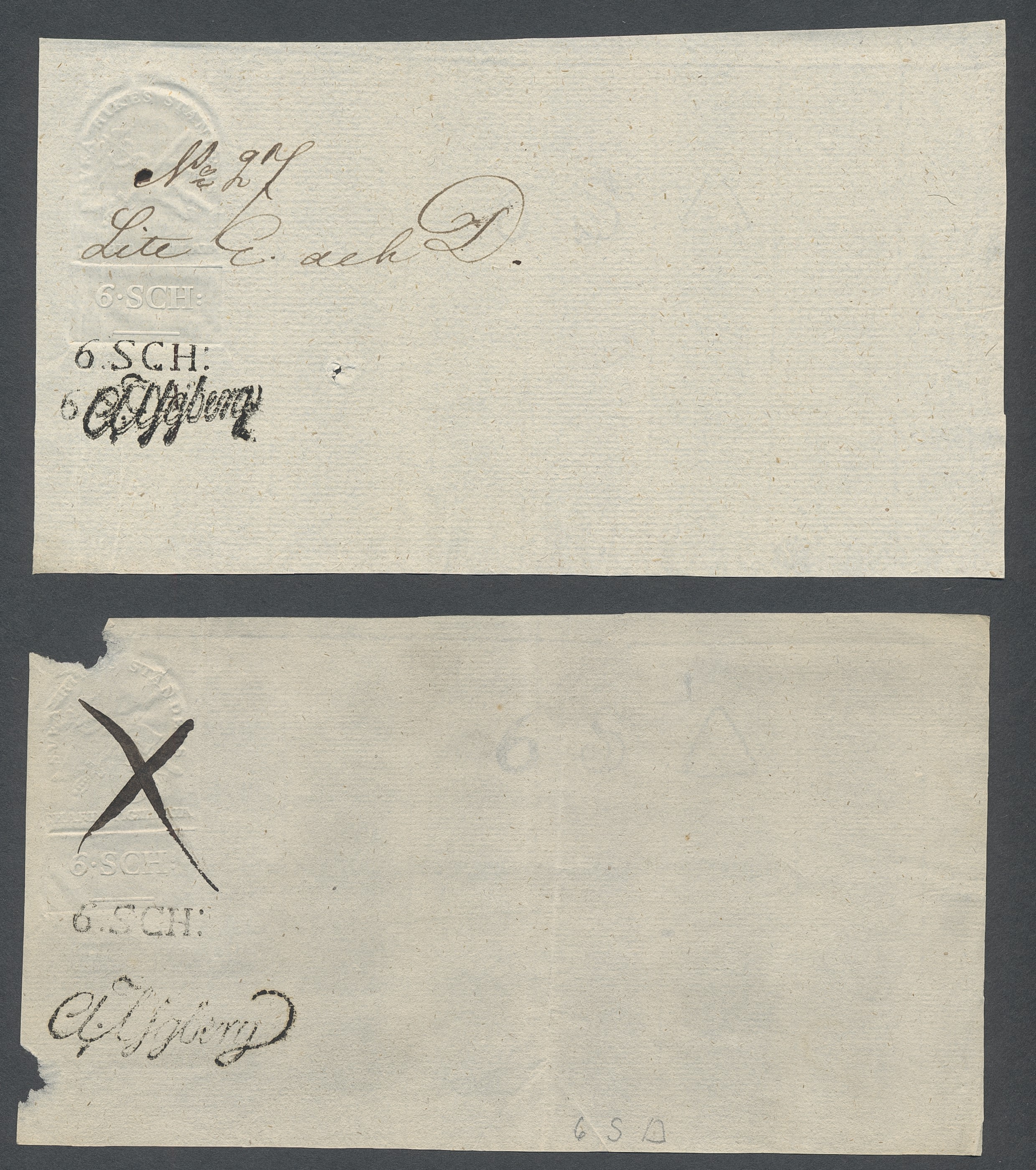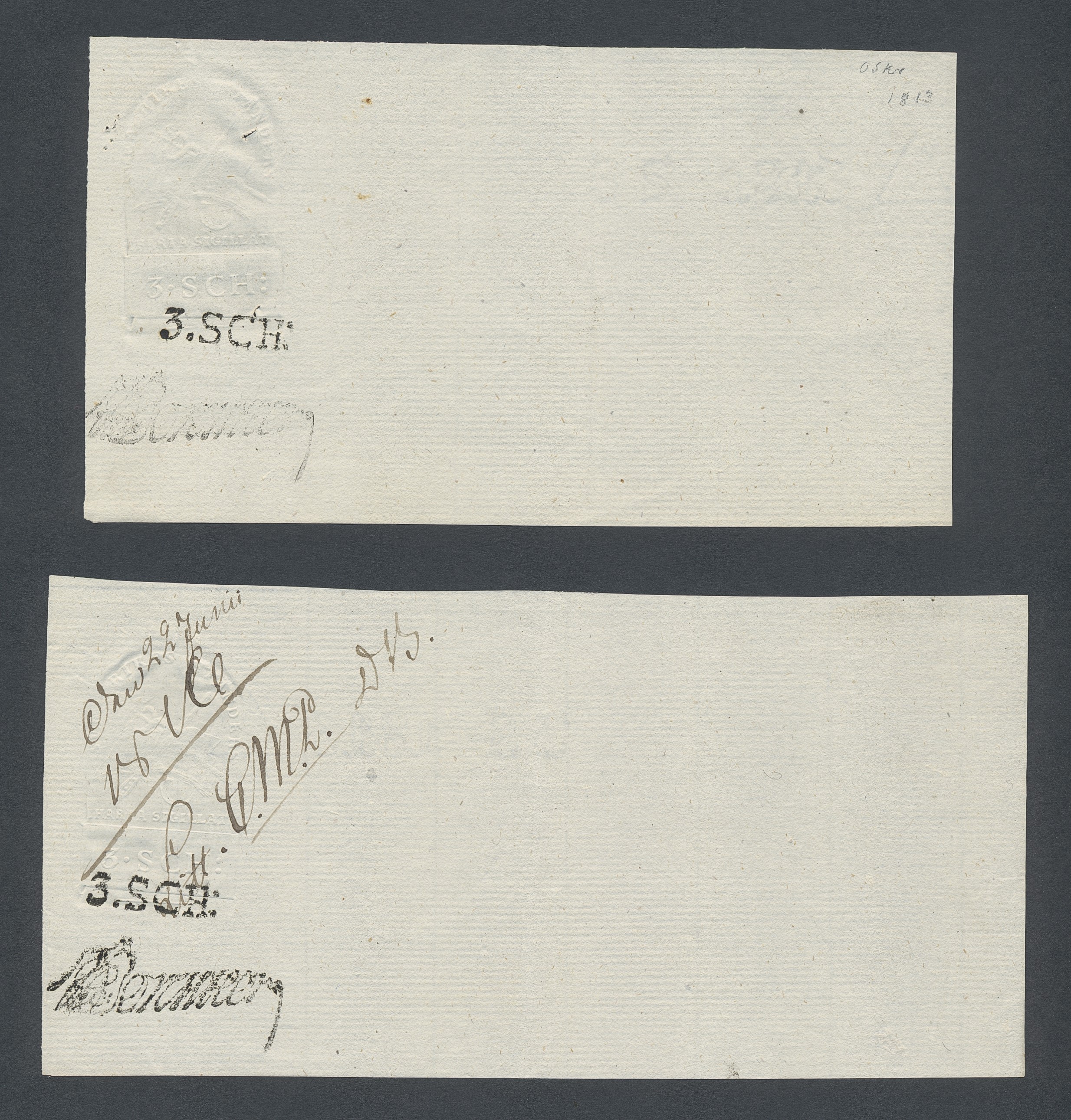 Sweden. Revenues, collection 1811–1844 in two albums. Documentary stamp, 1811 edition. Ygberg nameprint. Extensive collection 3 sch–50 Rd, just missing four denominations (32 sch, 1 1/3, 1 2/3 and 4 Rd). Specialized on watermark and paper with a large number of rare variants, e.g. mirror positions. 176 items in total incl 15 denominations graded as 'R' in Facit 2015. A compilation nearly impossible to obtain. The cat. value exceed 40000 SEK with a substancial premium for the variants. A list of the content and pictures of almost the entire lot are presented at www.philea.se. Ex. Per Sundberg. (176)