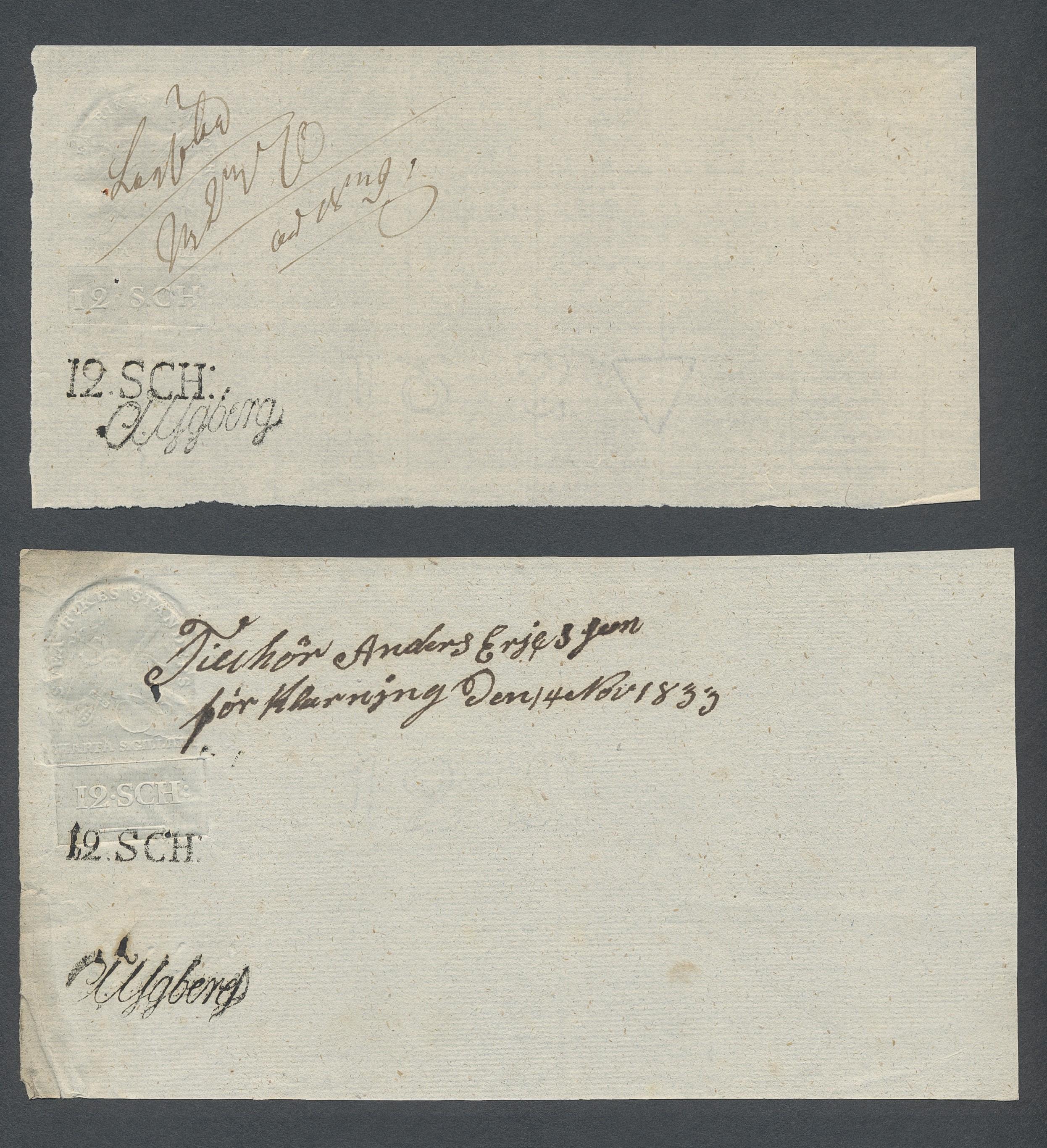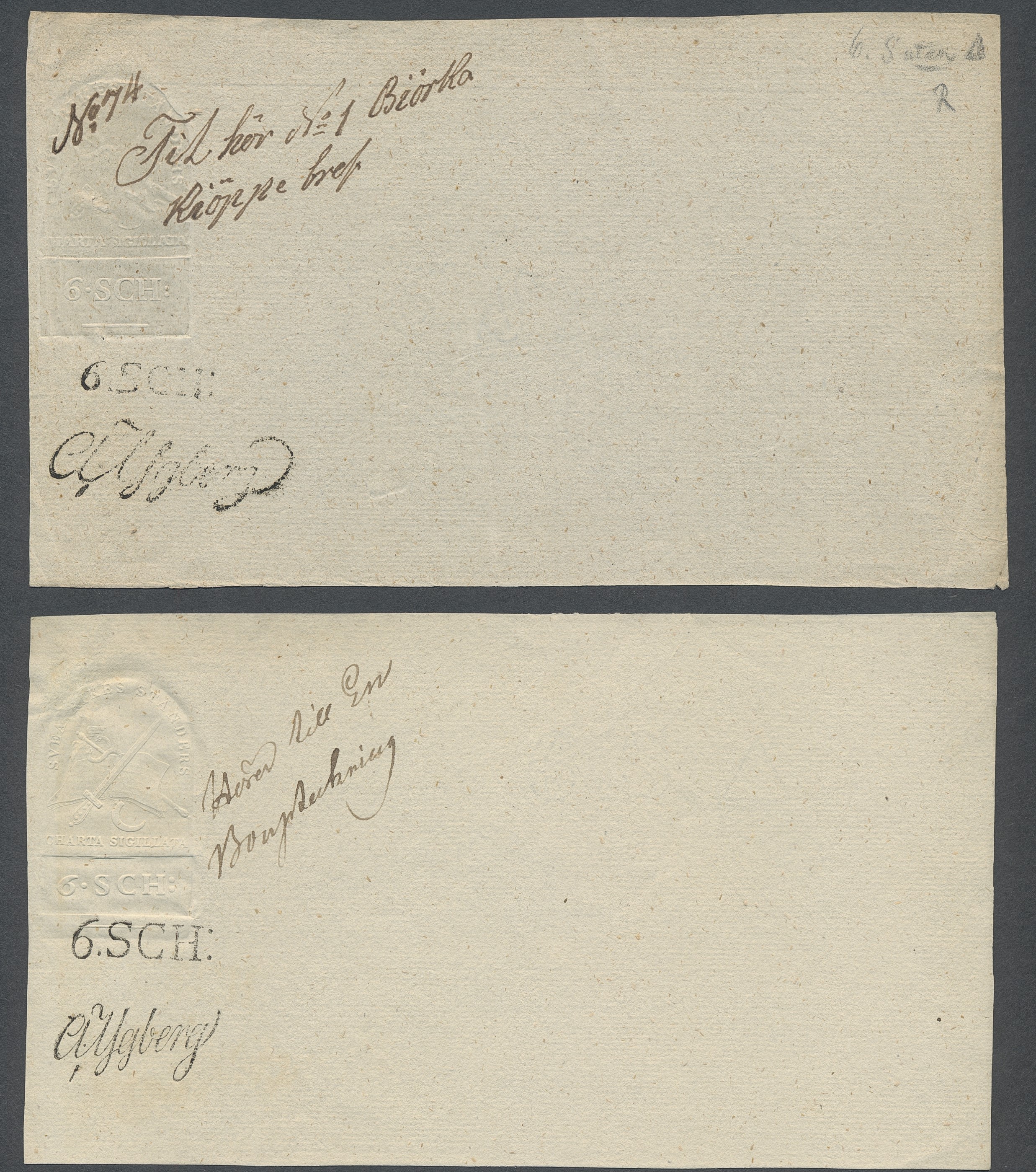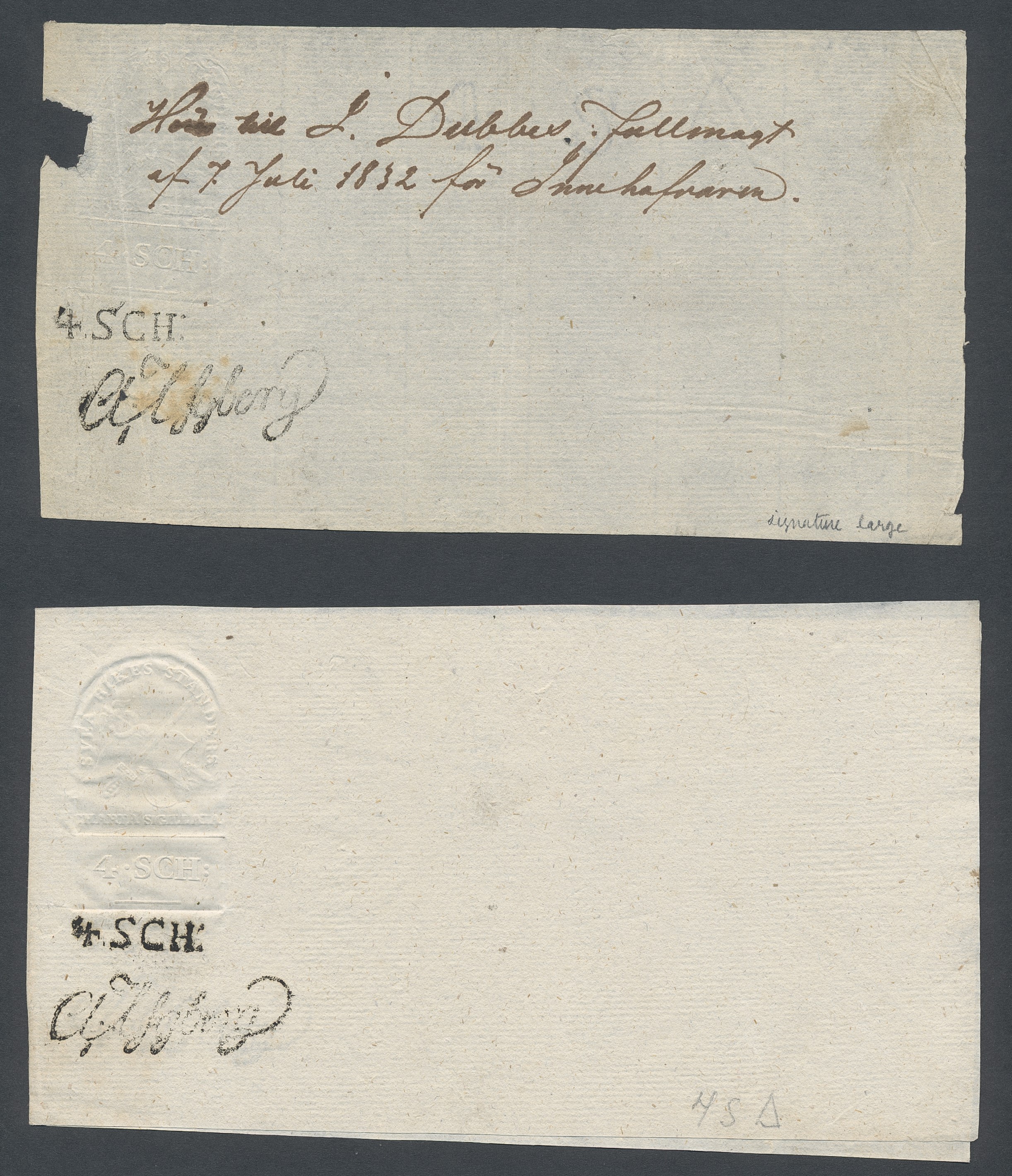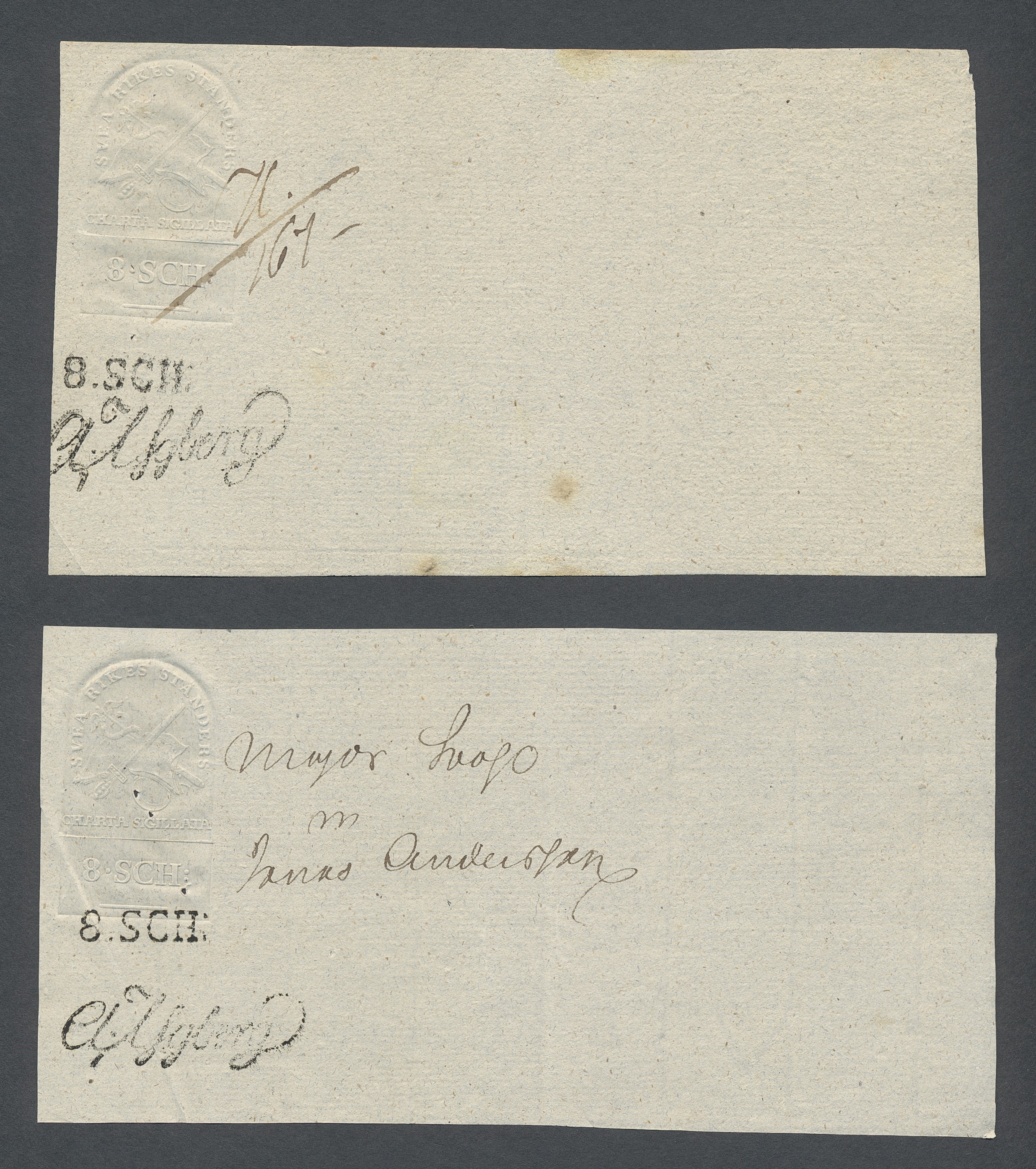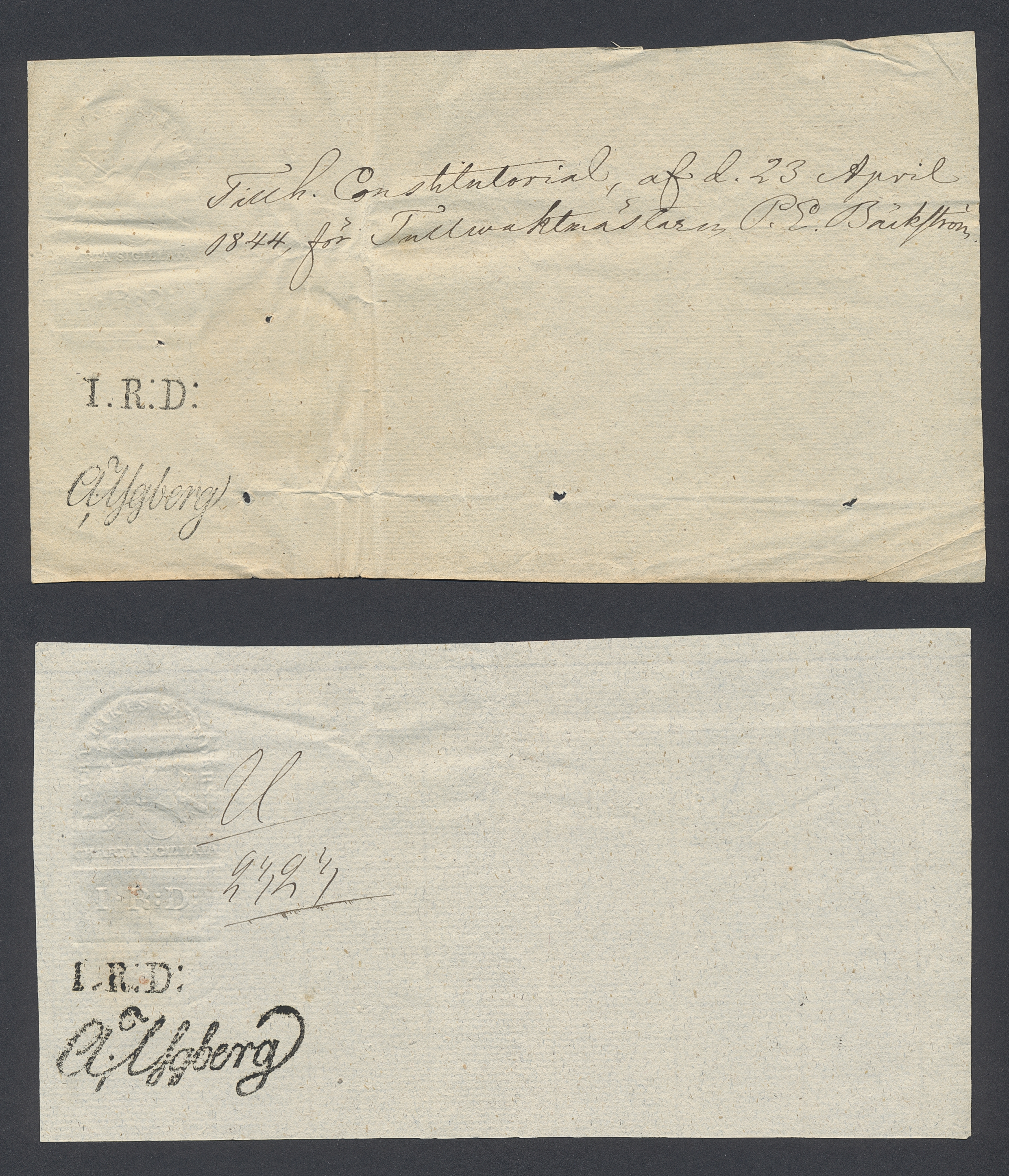 Sweden. Revenues, collection 1811–1844 in two albums. Documentary stamp, 1811 edition. Ygberg nameprint. Extensive collection 3 sch–50 Rd, just missing four denominations (32 sch, 1 1/3, 1 2/3 and 4 Rd). Specialized on watermark and paper with a large number of rare variants, e.g. mirror positions. 176 items in total incl 15 denominations graded as 'R' in Facit 2015. A compilation nearly impossible to obtain. The cat. value exceed 40000 SEK with a substancial premium for the variants. A list of the content and pictures of almost the entire lot are presented at www.philea.se. Ex. Per Sundberg. (176)