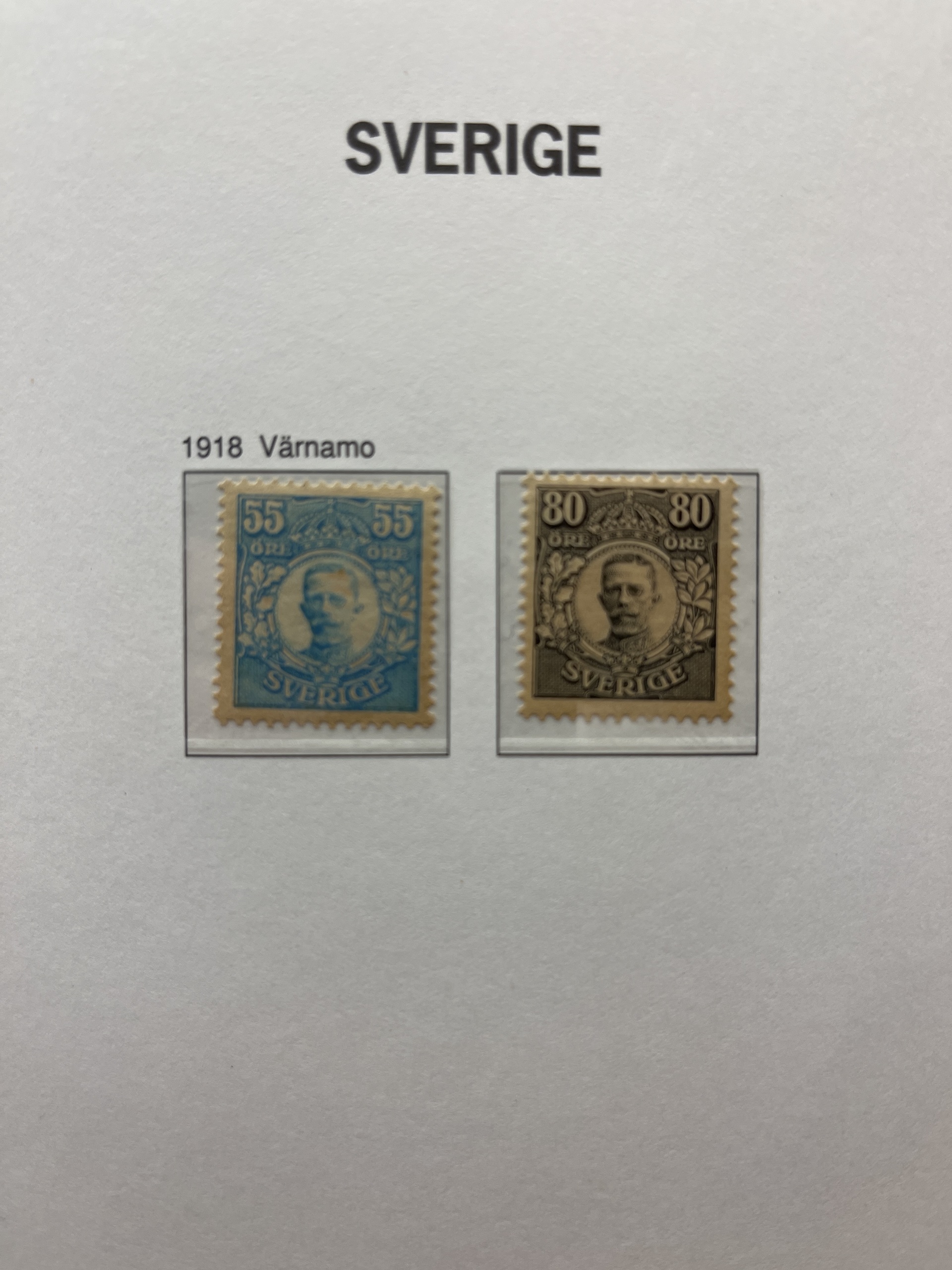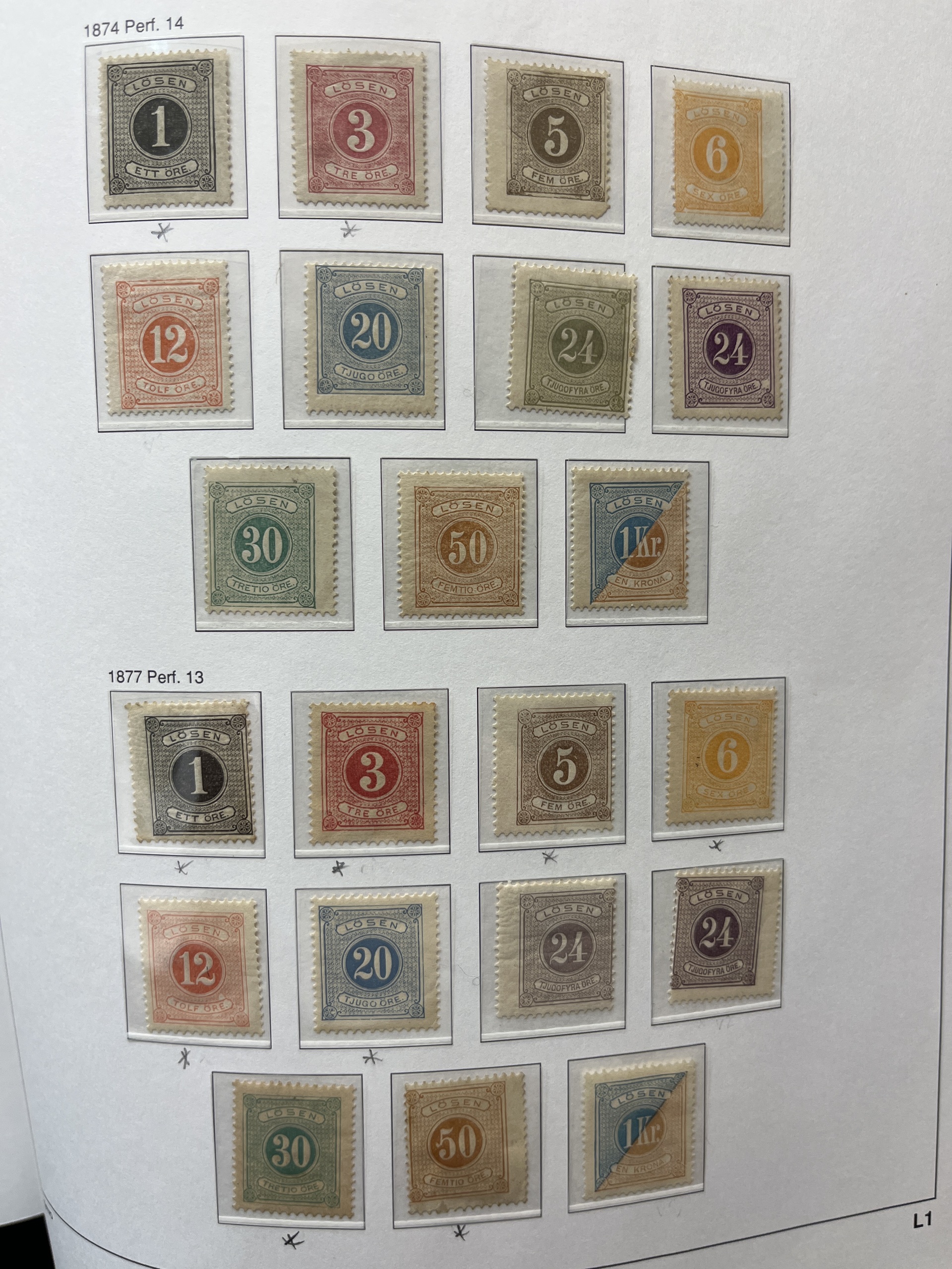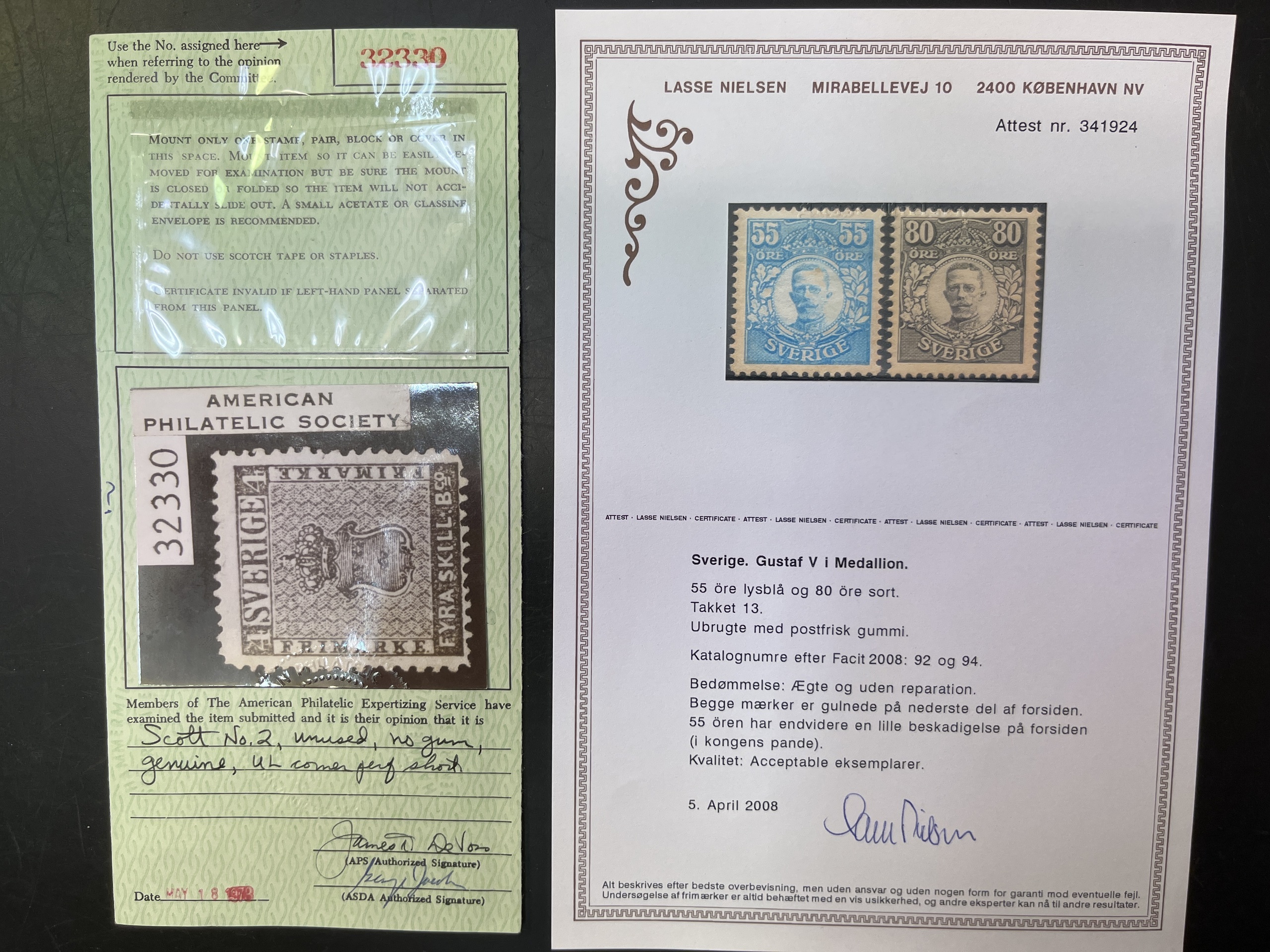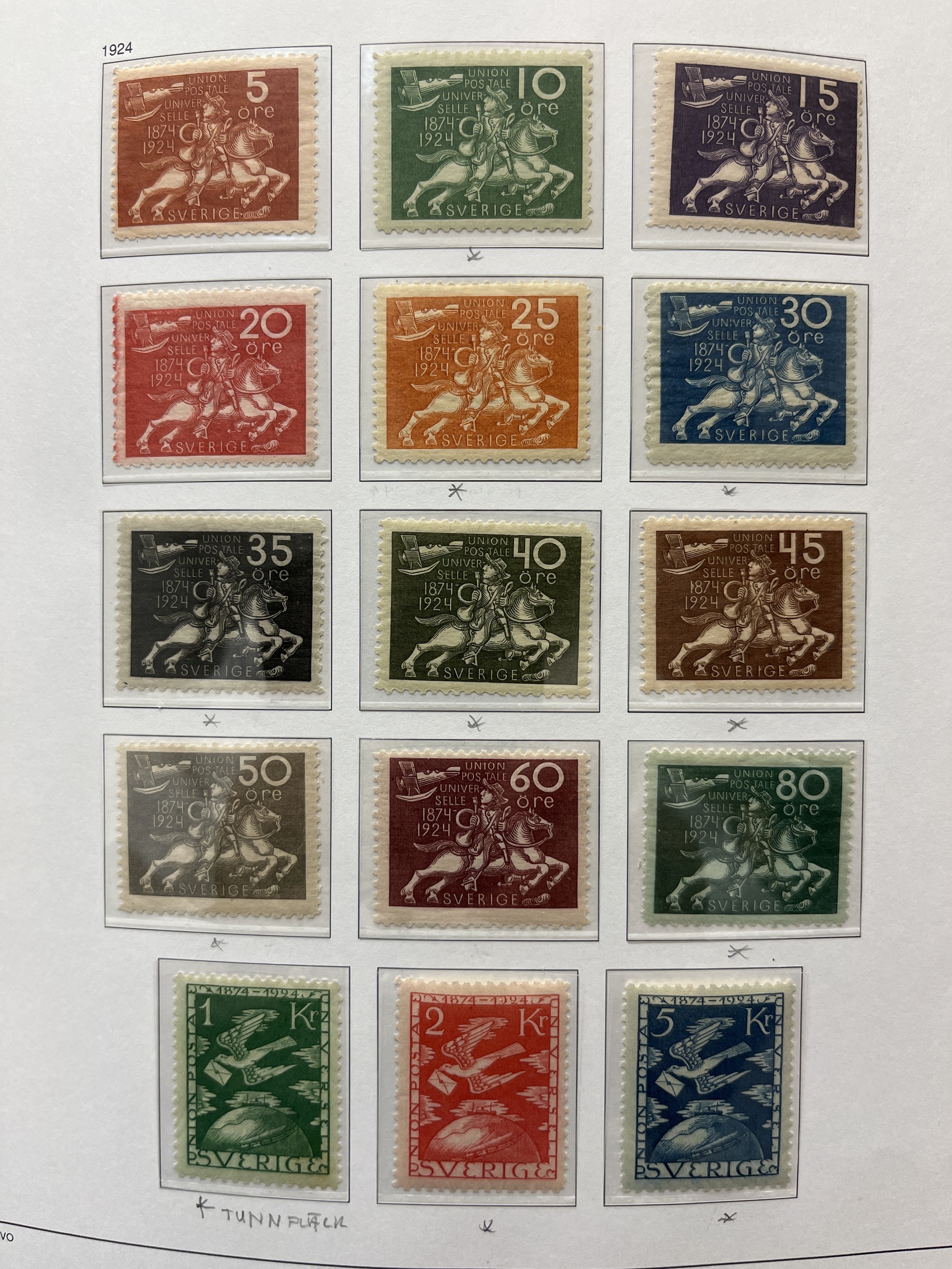 Sweden. Collection ★★/★ 1855–1969 in DAVO album with stamp mounts. Compl. collection in main types with e.g. 3–24 skill bco (incl some reprints), 55 and 80 öre with cert. the beginning are some stamps without gum. In the beginning mixed quality, later fine.