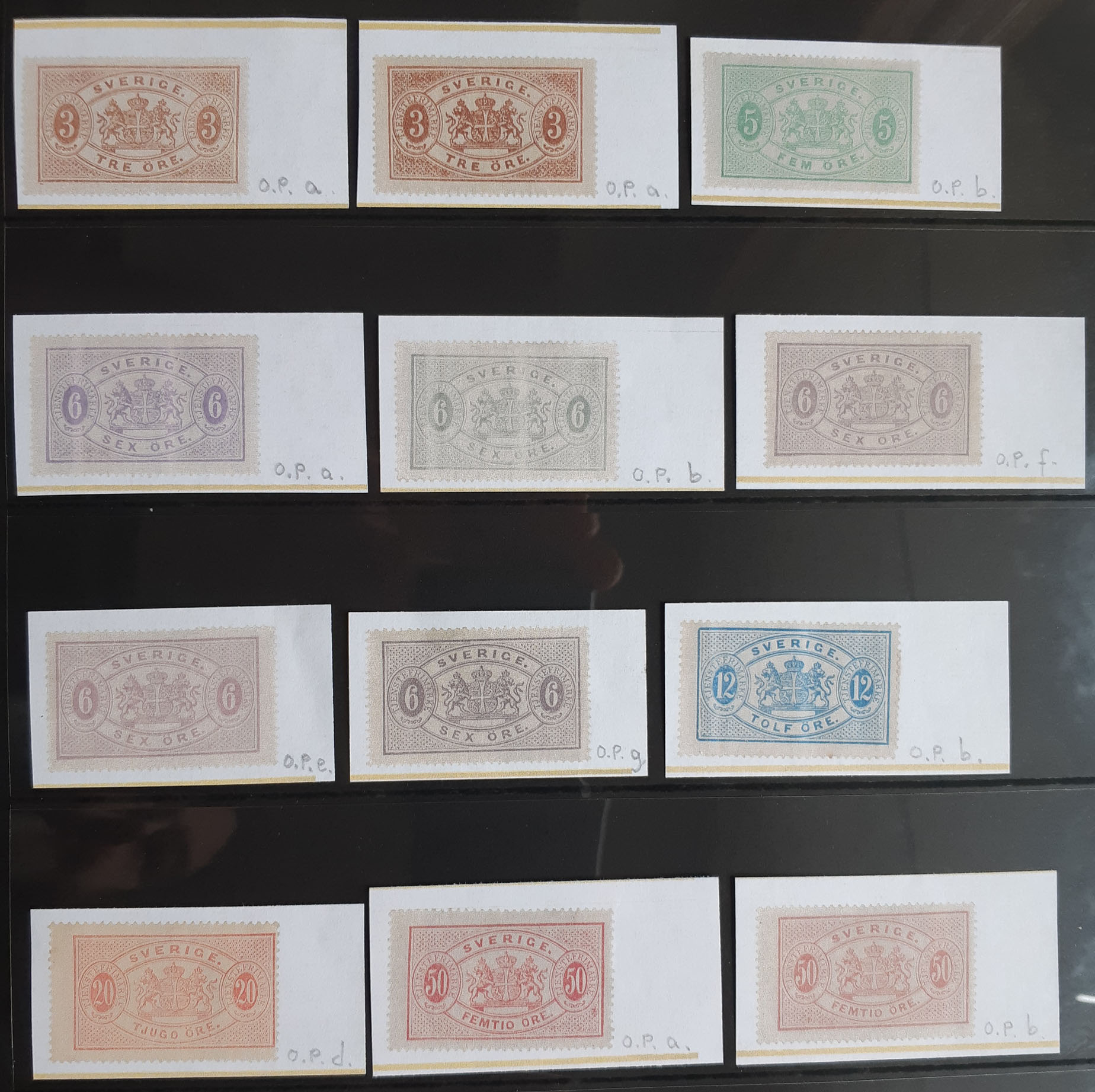Sweden. Collection ★/(★) LARGE OFFICIALS 14. Incl. several different shades, also better – twelve stamps with opionions (shades) by O.P. Somewhat mixed quality, but also fine, well centered stamps. High catalogue value. Please inspect. (24)