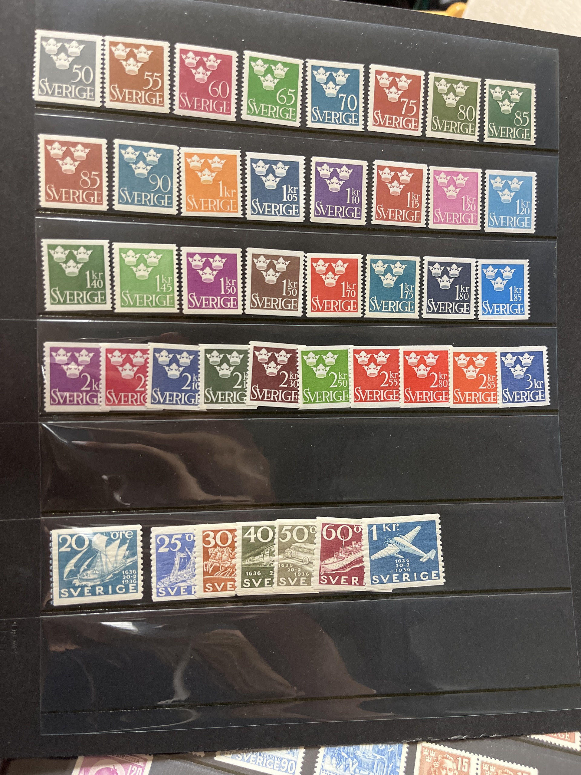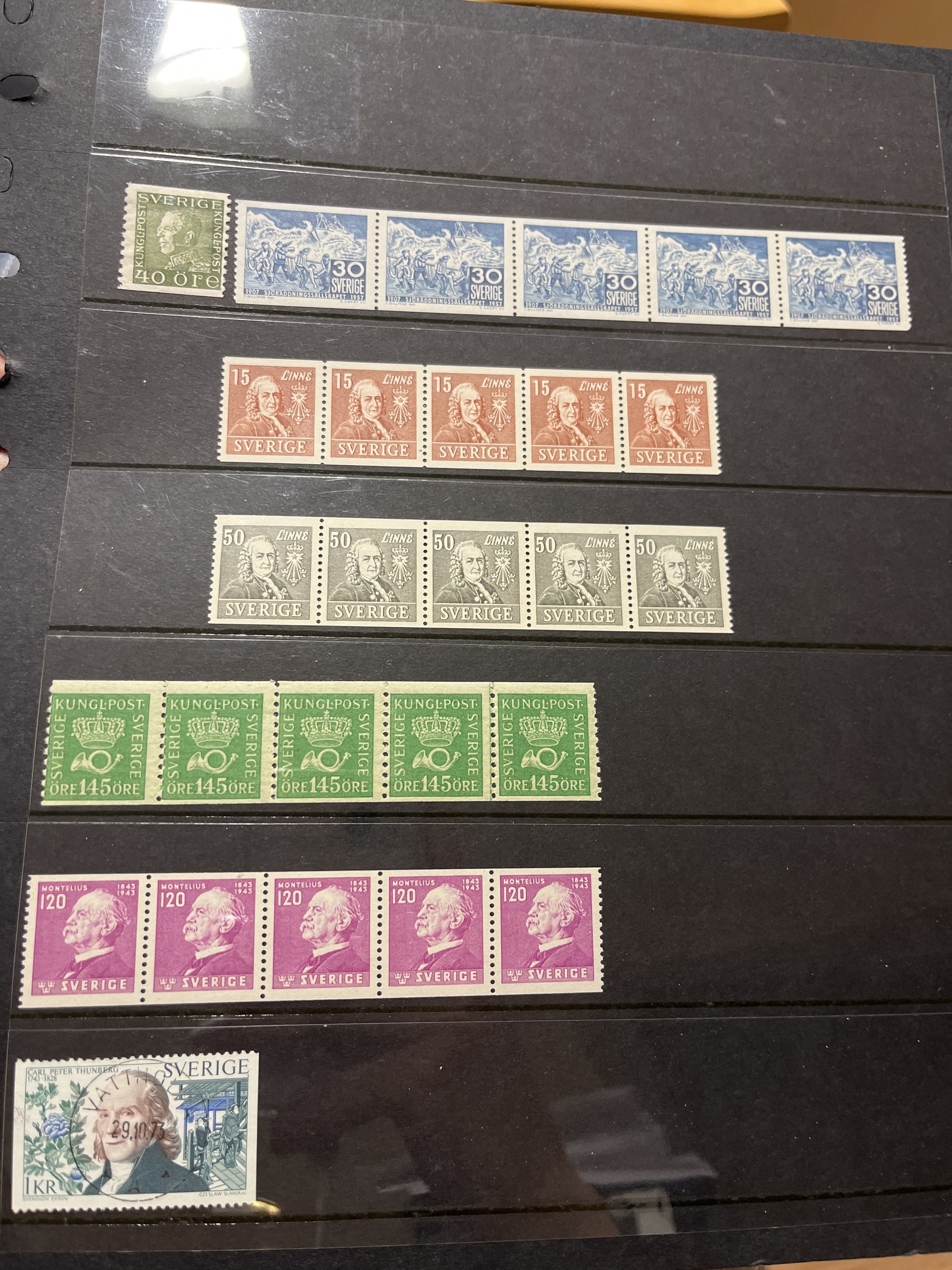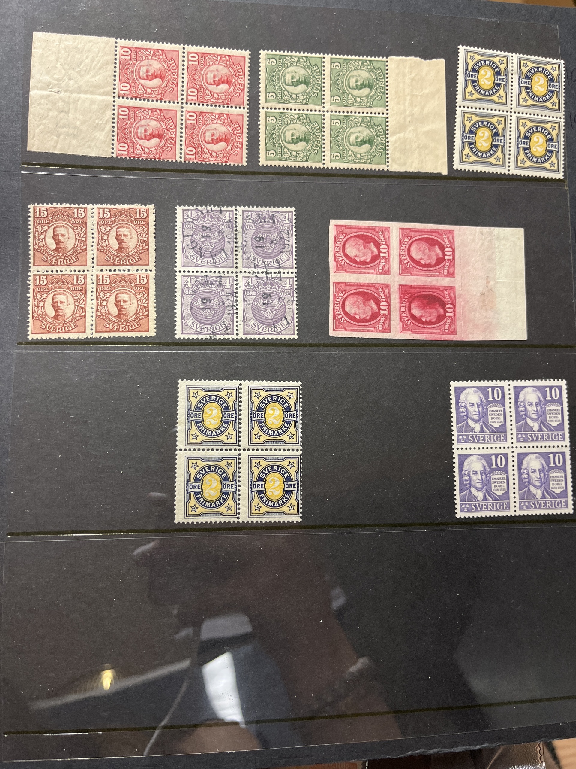 Sweden. Accumulation ★★/★ 1880–1960s on visir leaves. somewhat messy and no order at all, but carefull inspection should be rewarding with better stamps here and there. Please see a selection of scans at www.philea.se. Mostly good quality. (ca. 400)