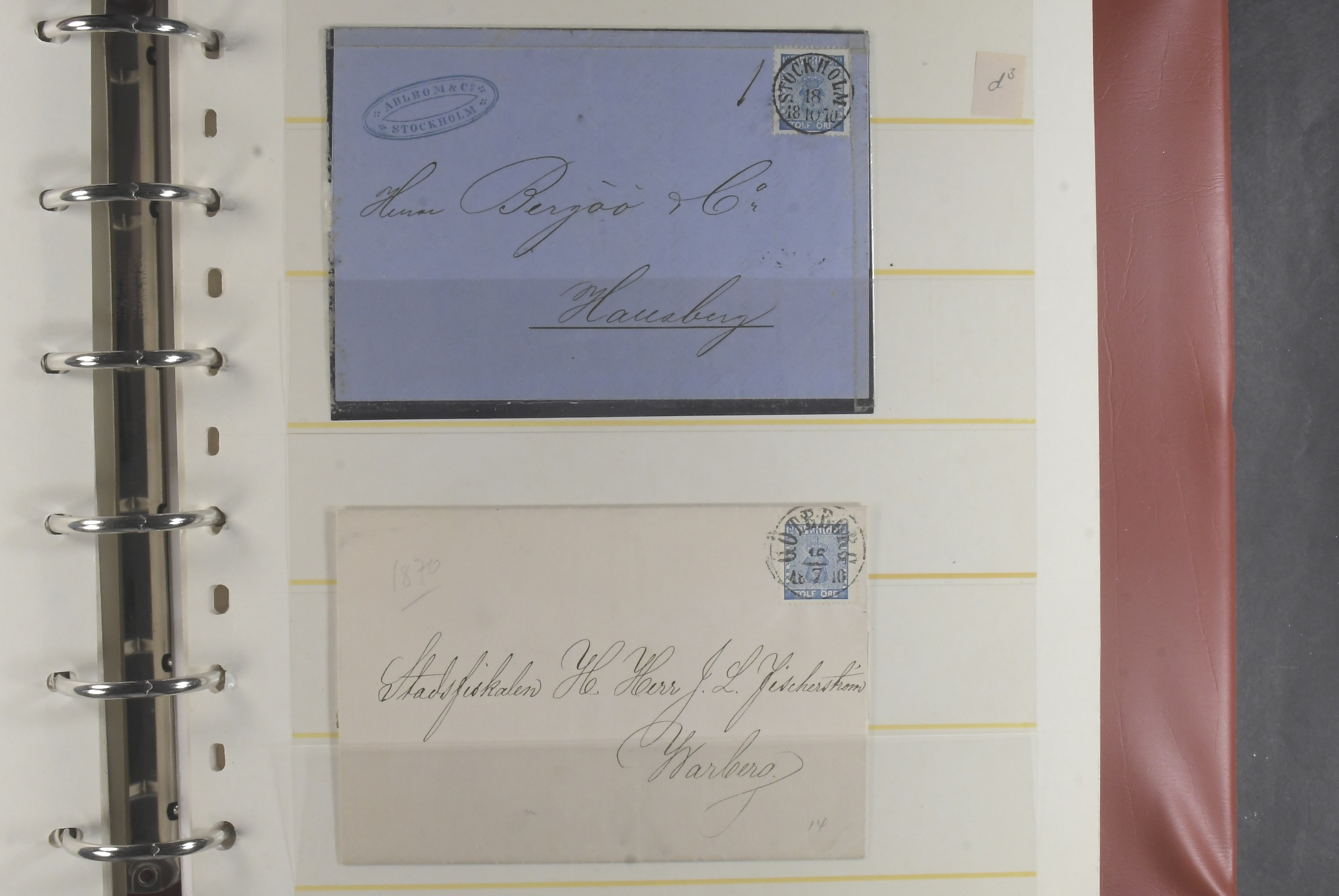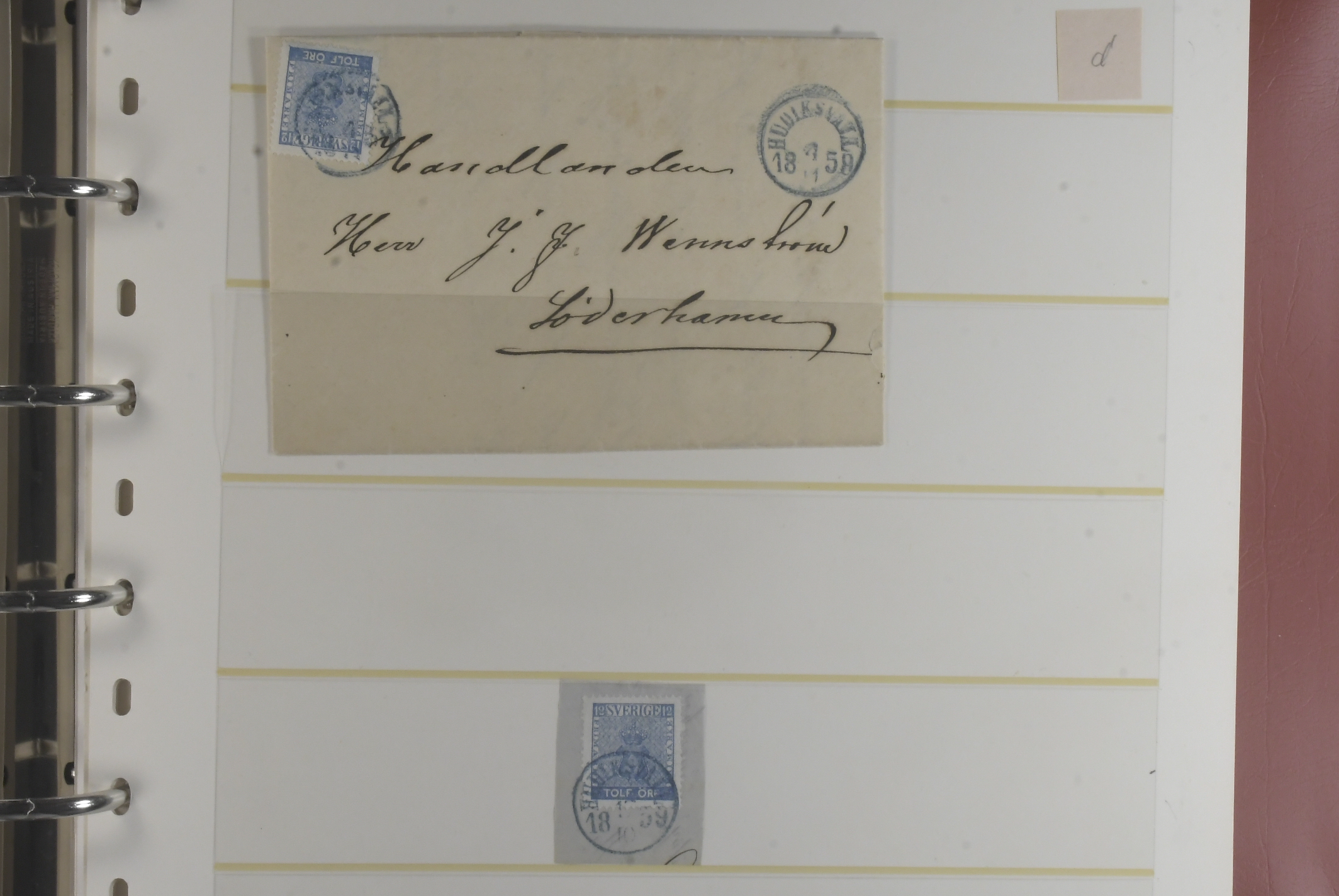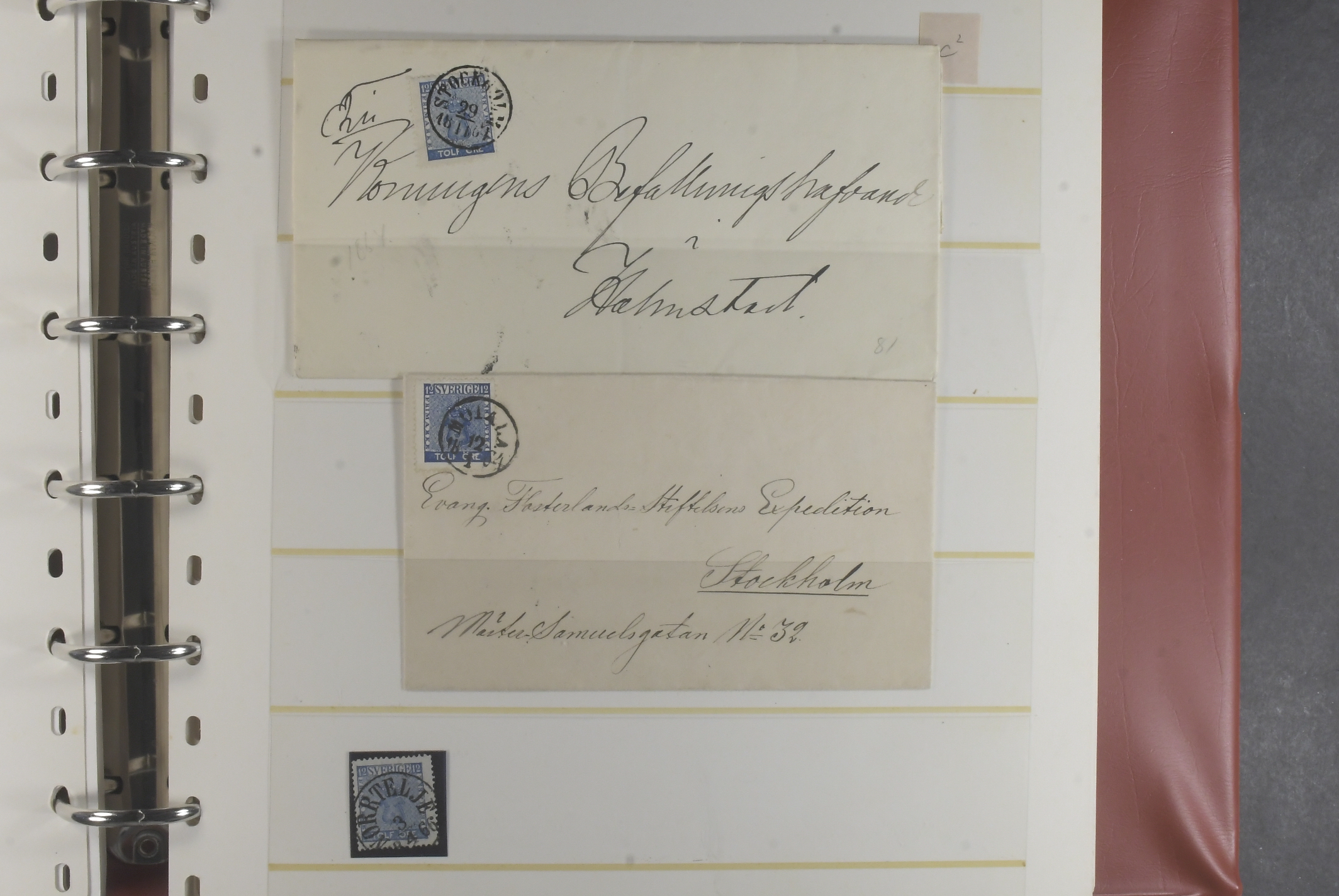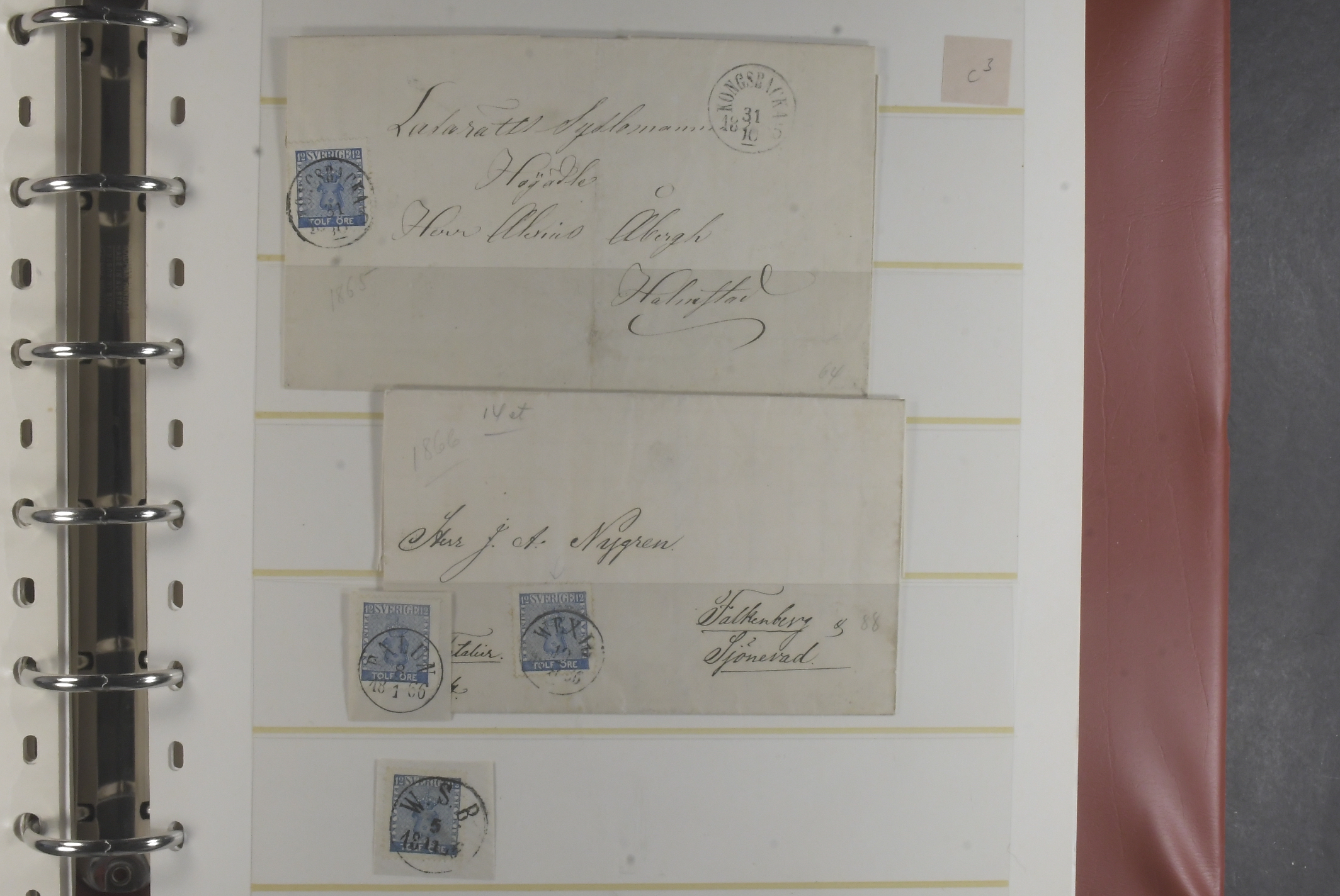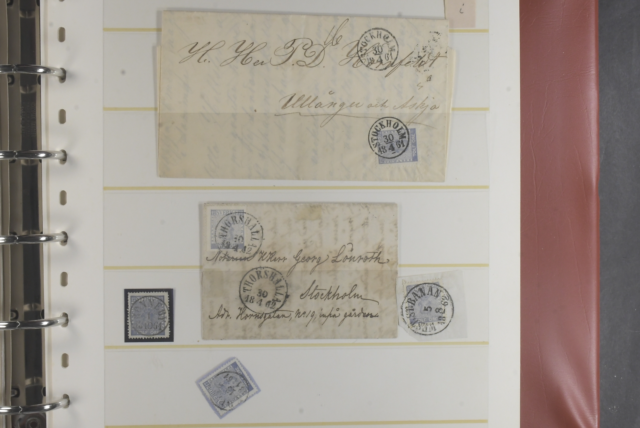 Sweden. Collection used COAT-OF-ARMS on visir leaves. Study of shades plus some non-identified duplicates. Selected stamps with readable–superb cancellations, incl. e.g. 14×9 and 40×50 öre (but no 5 öre denominations). The entire lot is presented at www.philea.se. Mostly fine quality. (280)