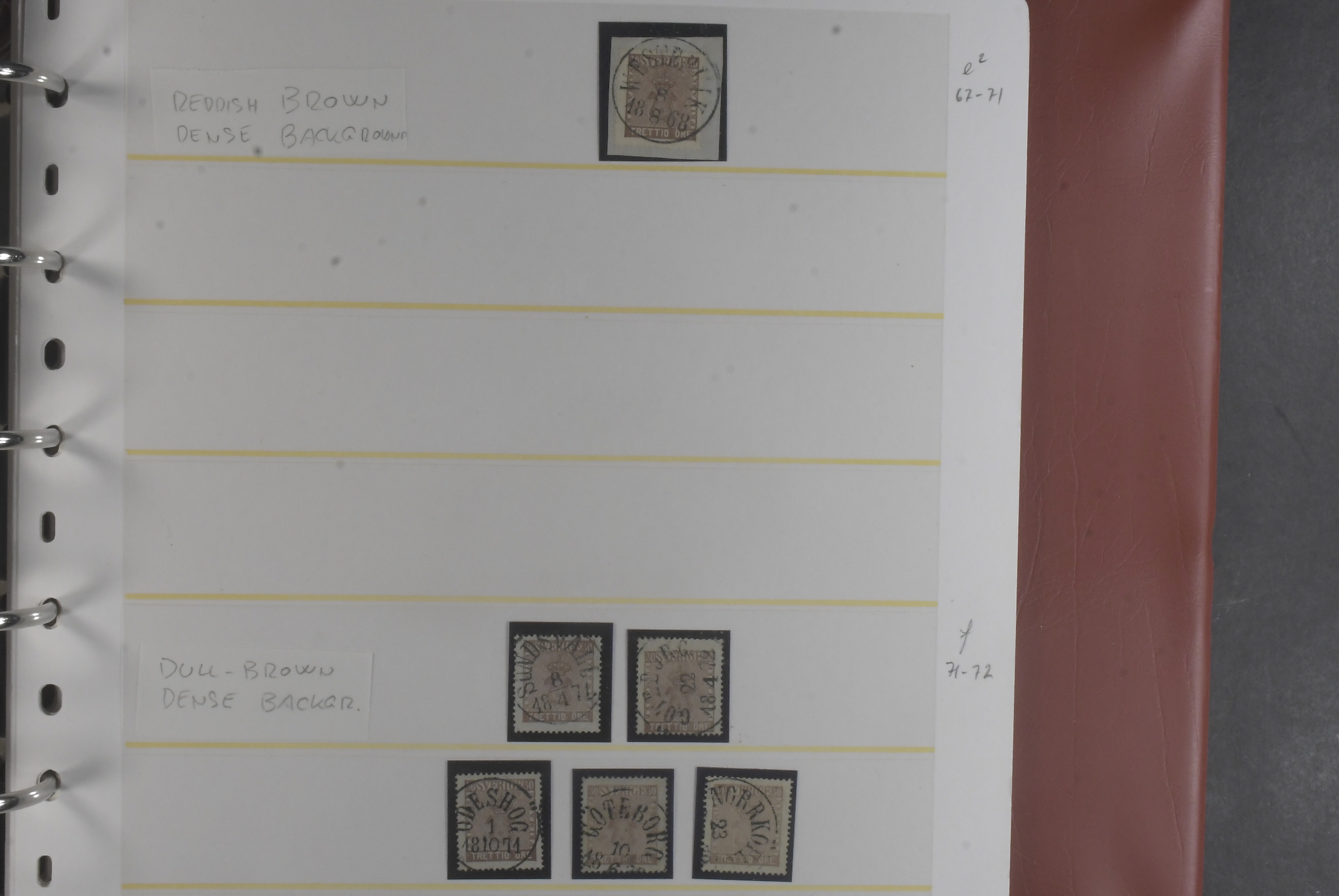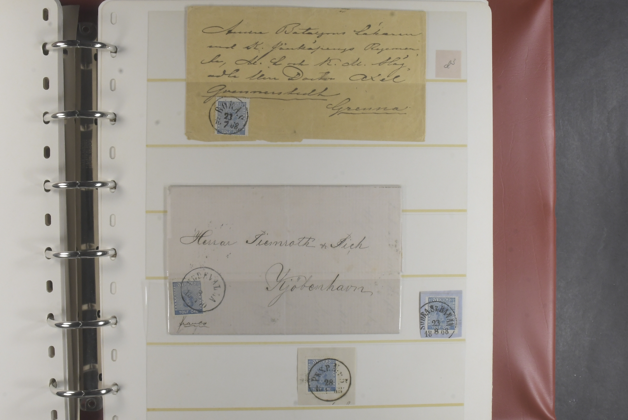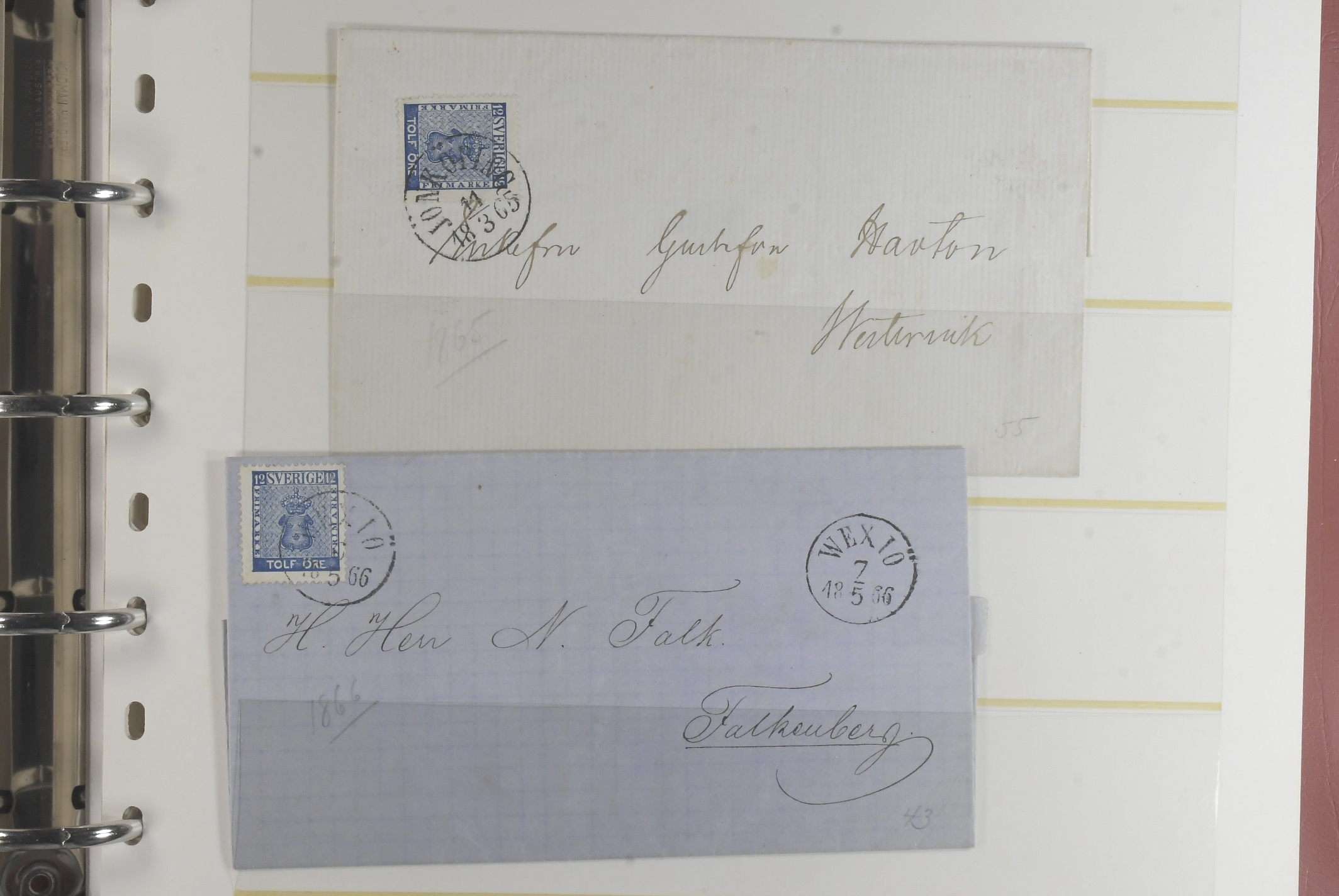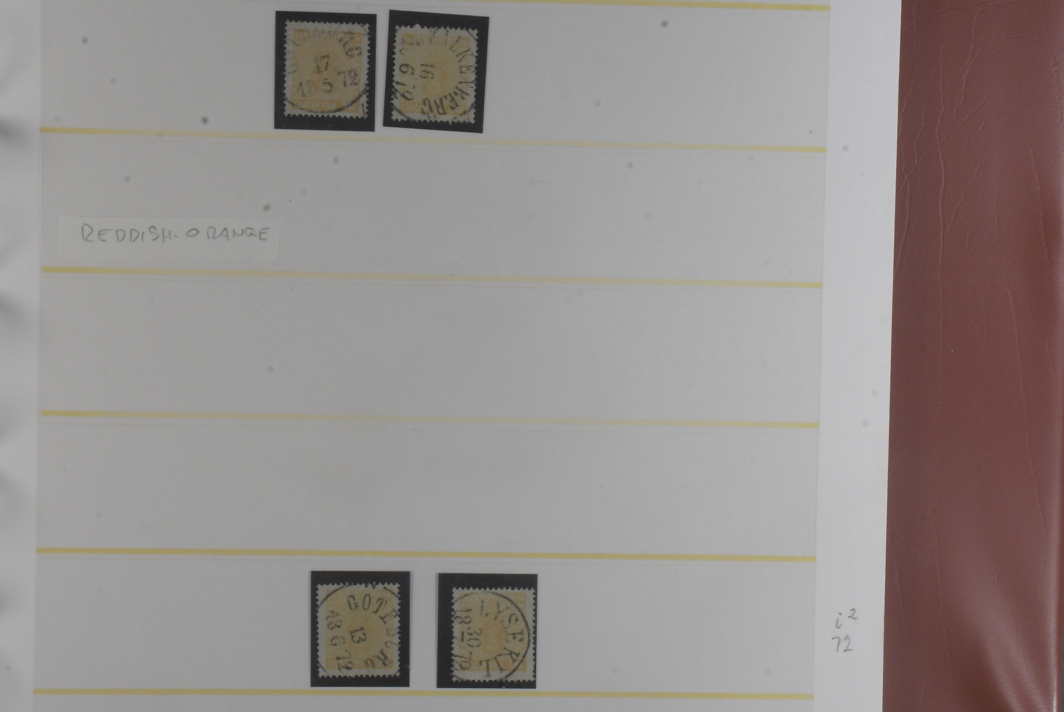 Sweden. Collection used COAT-OF-ARMS on visir leaves. Study of shades plus some non-identified duplicates. Selected stamps with readable–superb cancellations, incl. e.g. 14×9 and 40×50 öre (but no 5 öre denominations). The entire lot is presented at www.philea.se. Mostly fine quality. (280)