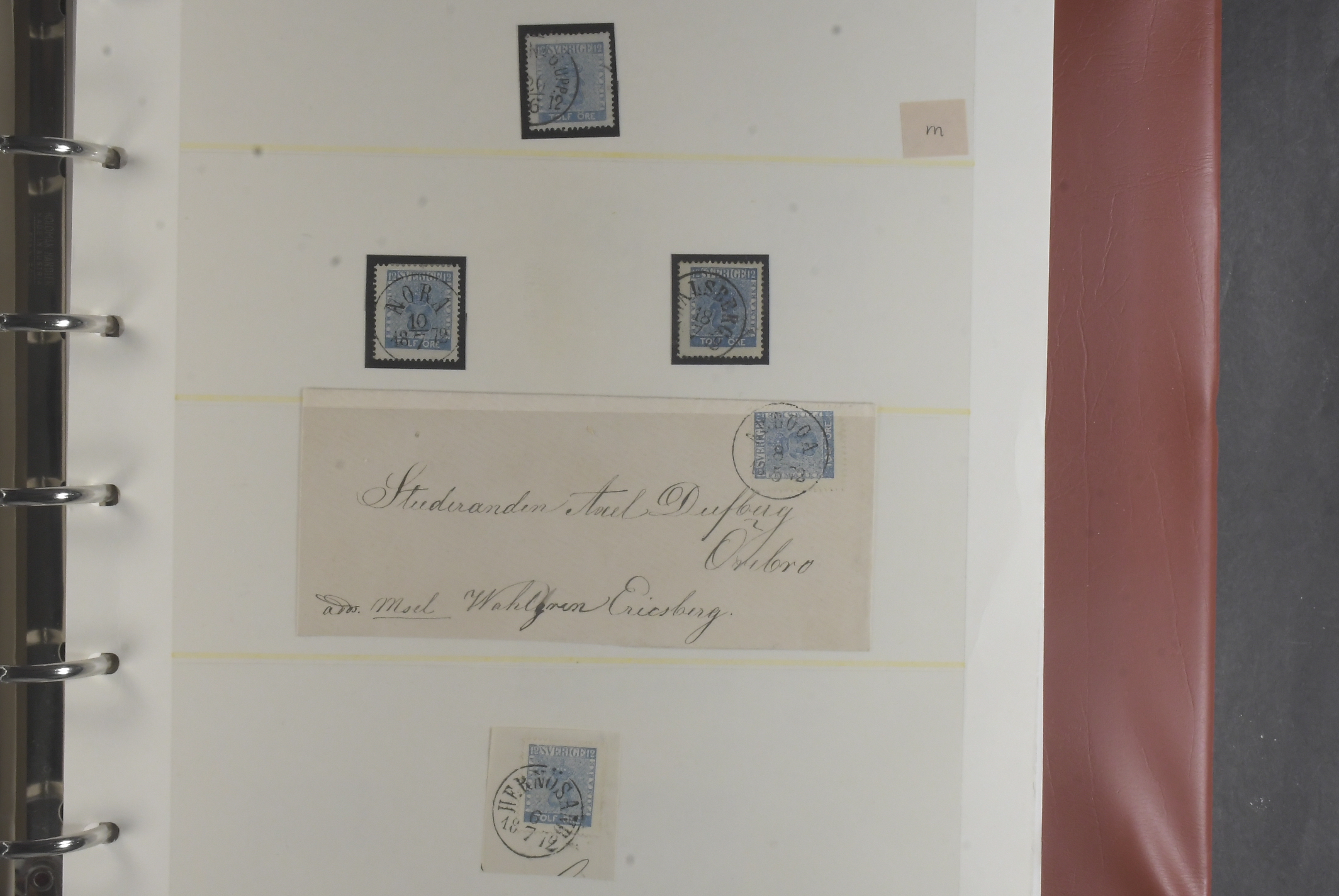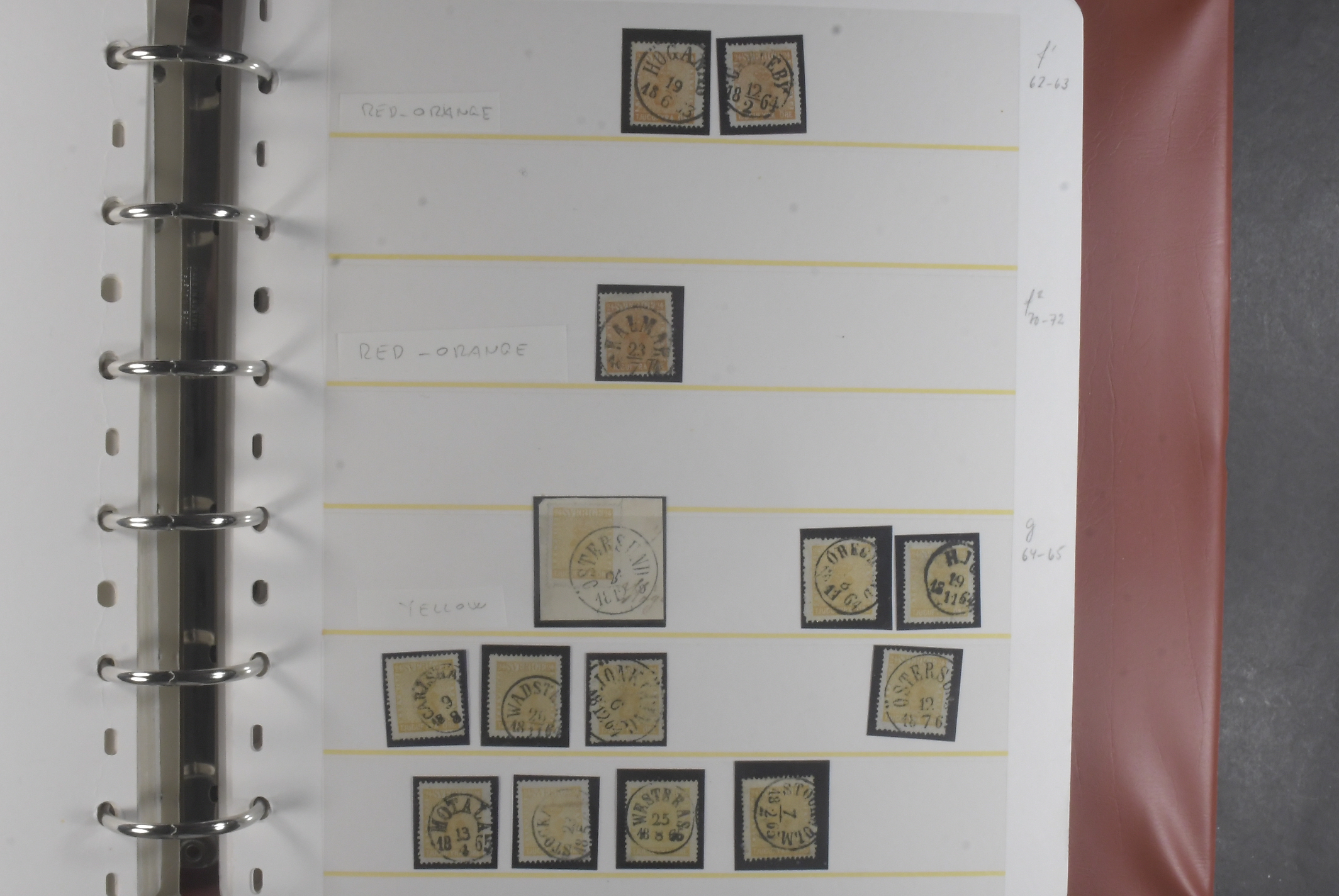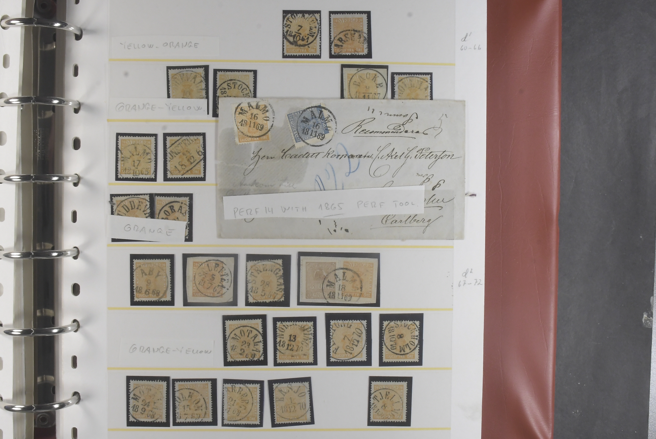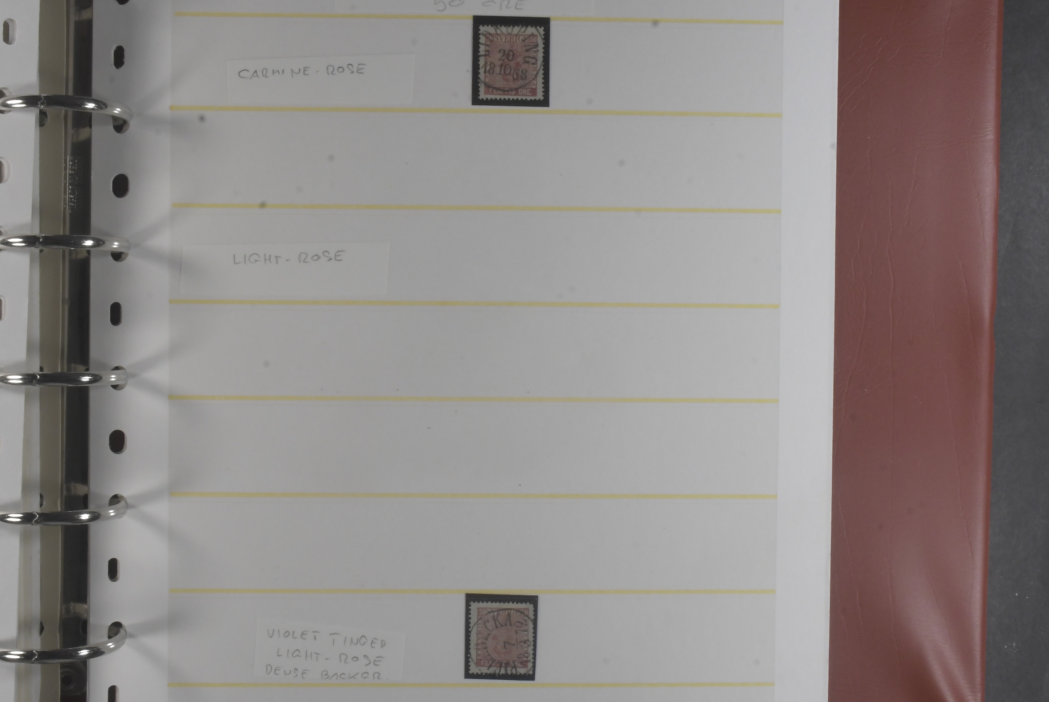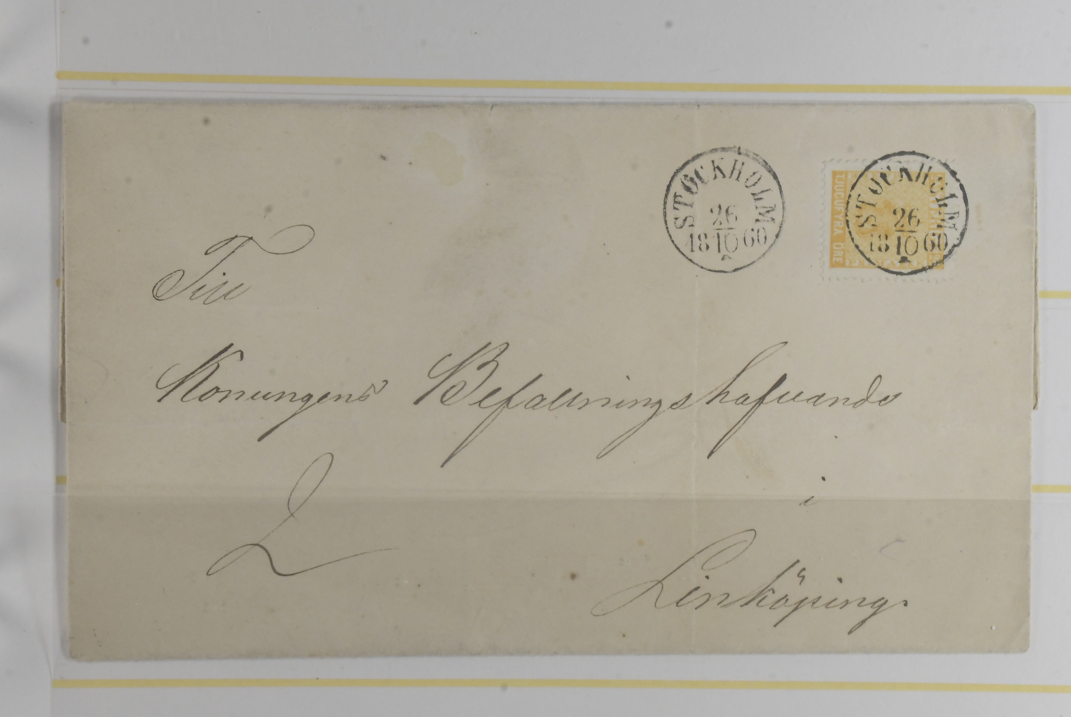 Sweden. Collection used COAT-OF-ARMS on visir leaves. Study of shades plus some non-identified duplicates. Selected stamps with readable–superb cancellations, incl. e.g. 14×9 and 40×50 öre (but no 5 öre denominations). The entire lot is presented at www.philea.se. Mostly fine quality. (280)