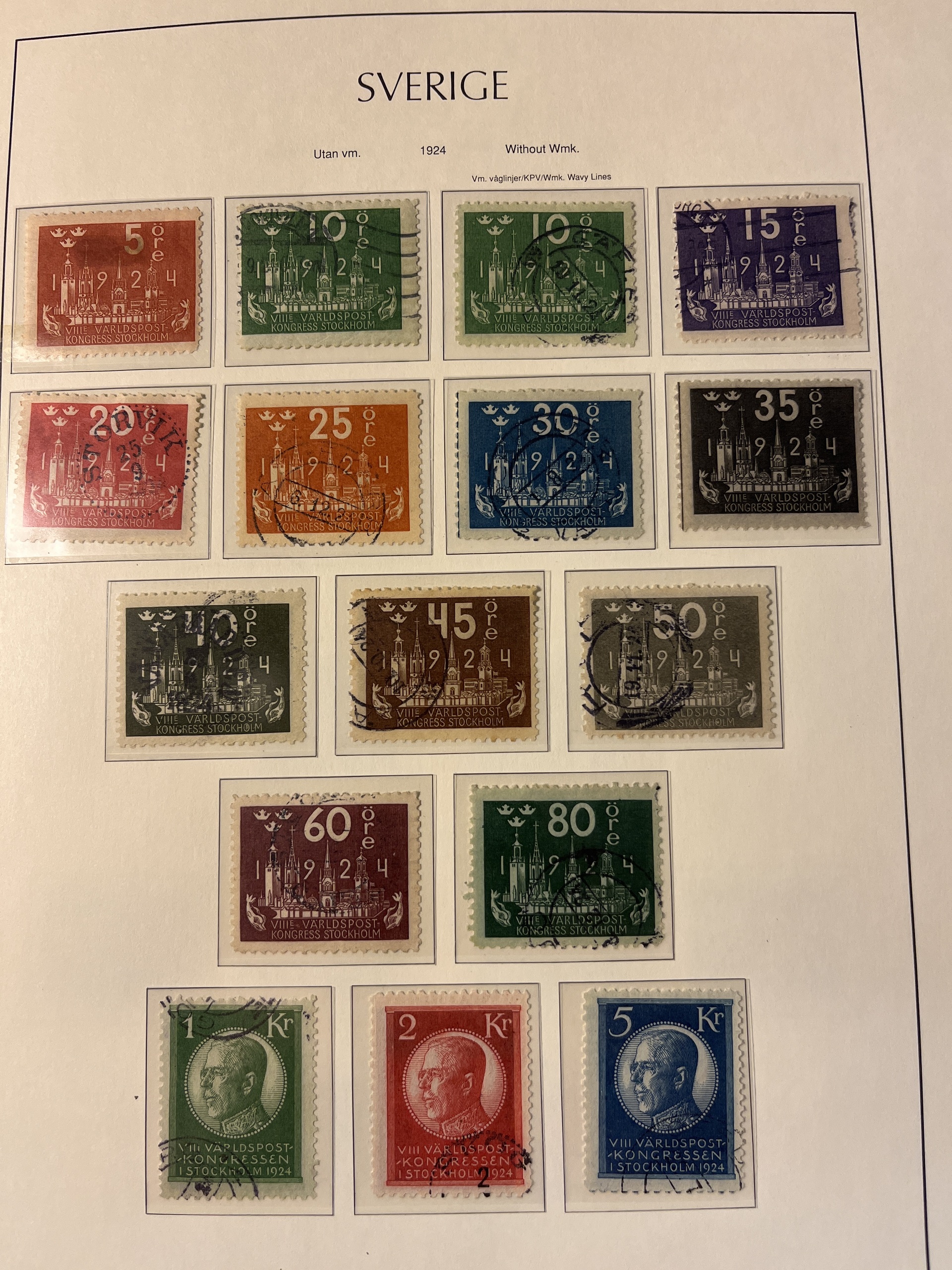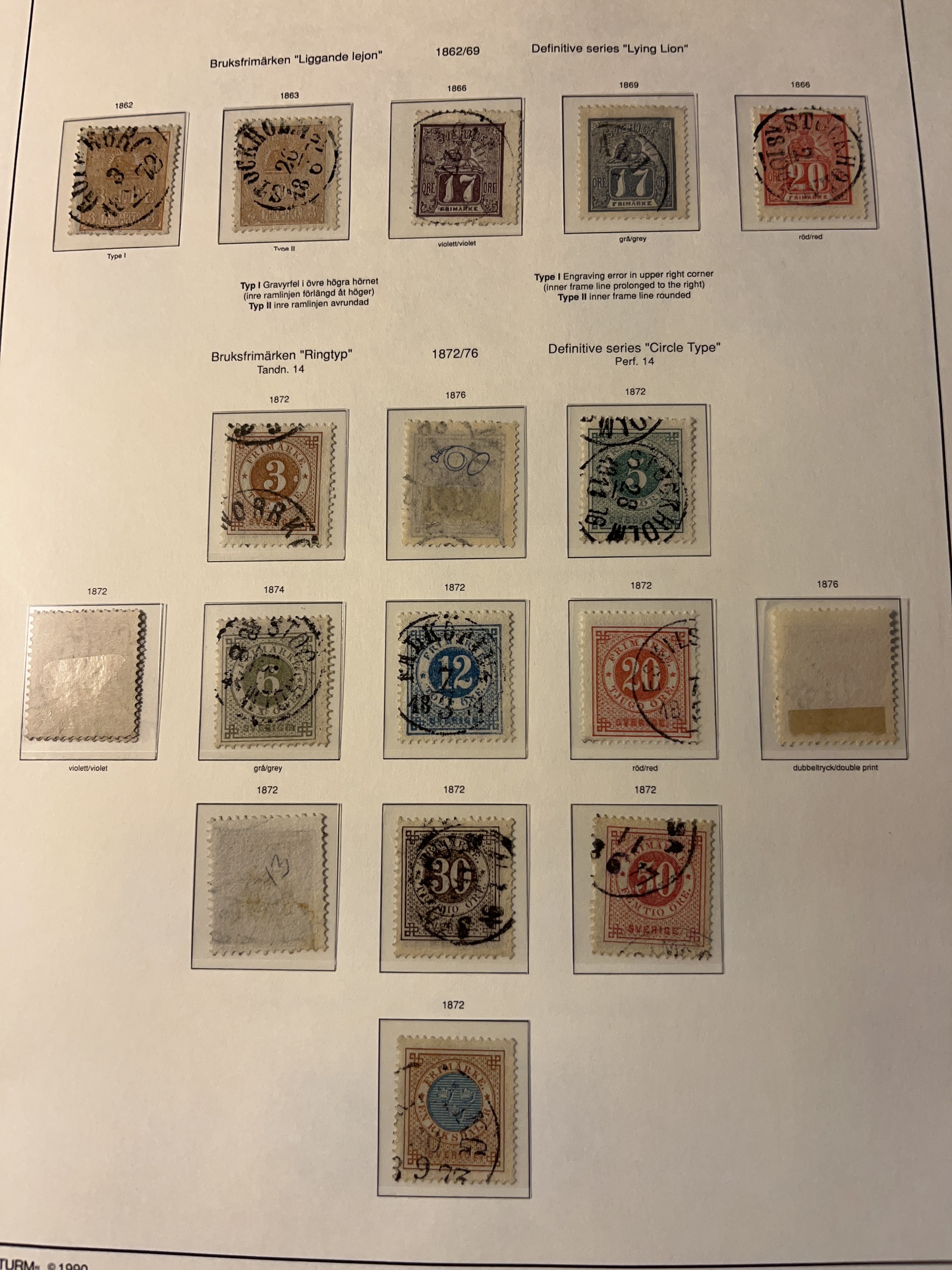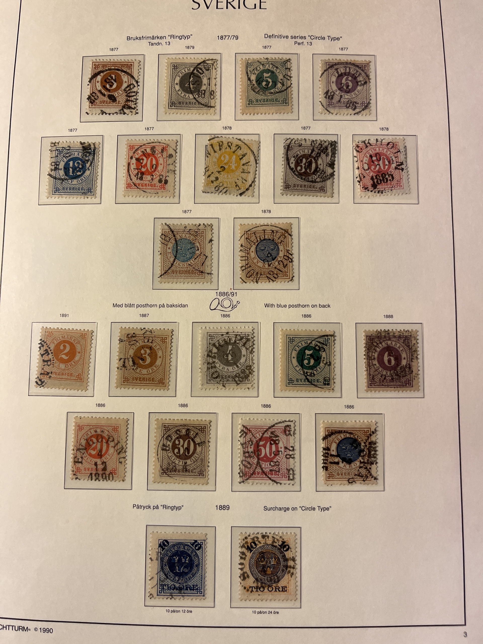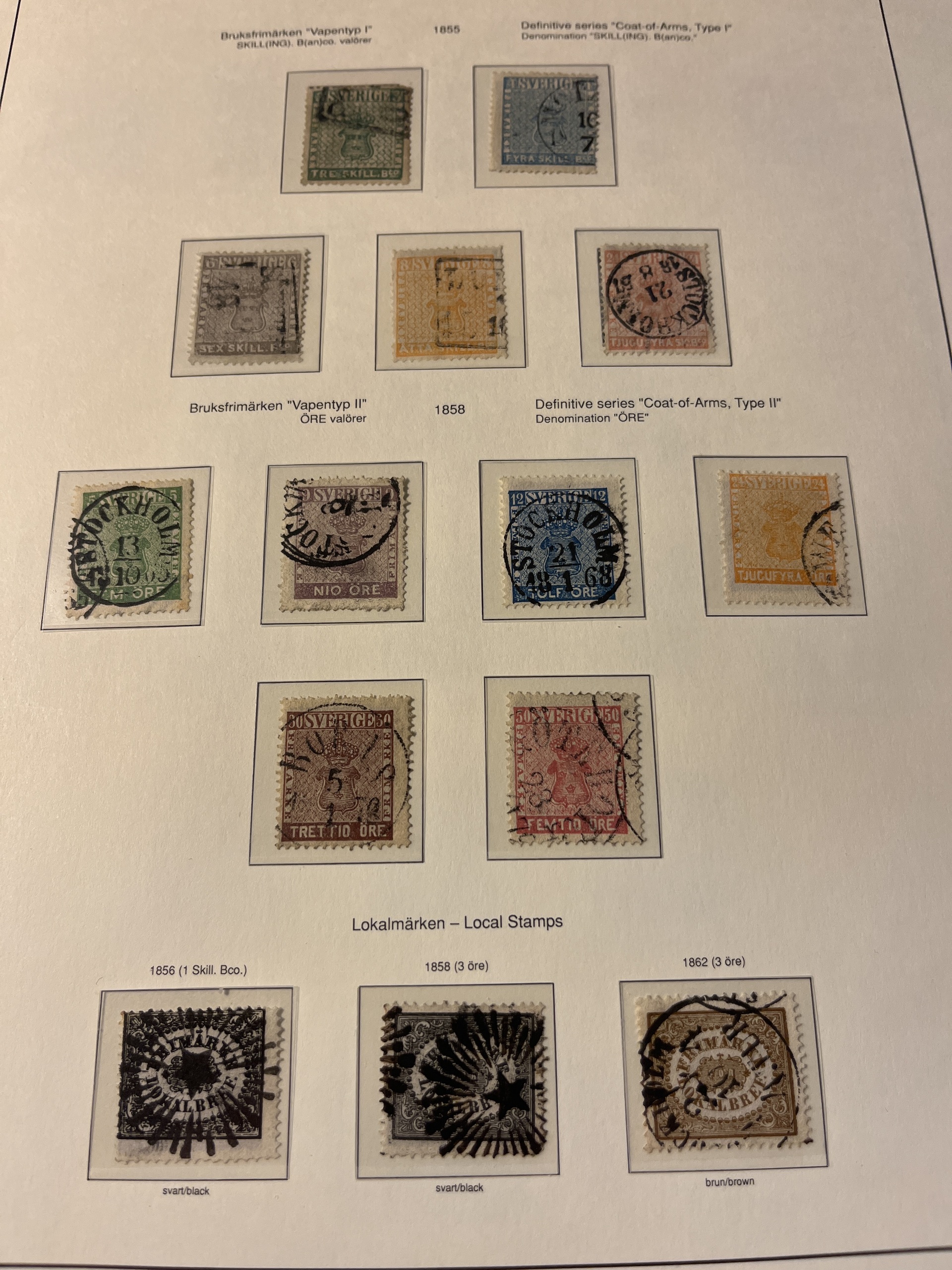 Sweden. Collection used 1855–1936 on leaves. Almost complete in main numbers, but without the 55 and 80 öre 1918 and afew military stamps. A few Circle stamps mounted on the wrong place – otherwise fine. Please see a selection of scans at www.philea.se. In the beginning mixed quality, later fine.