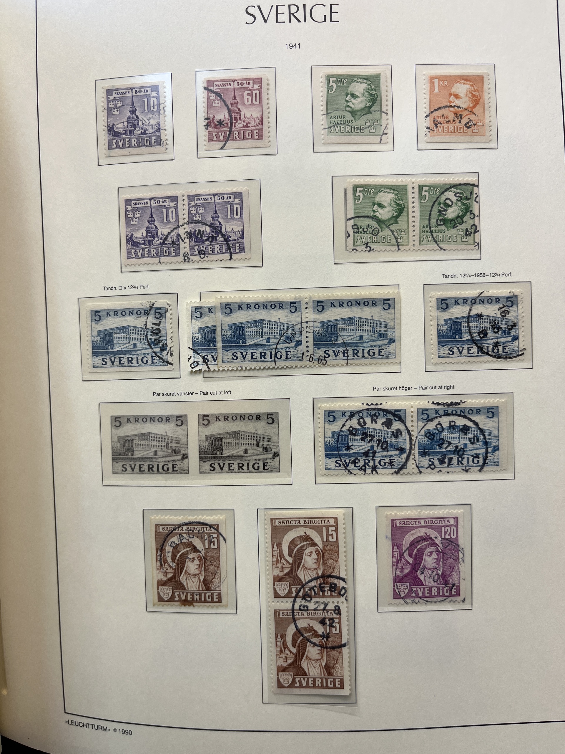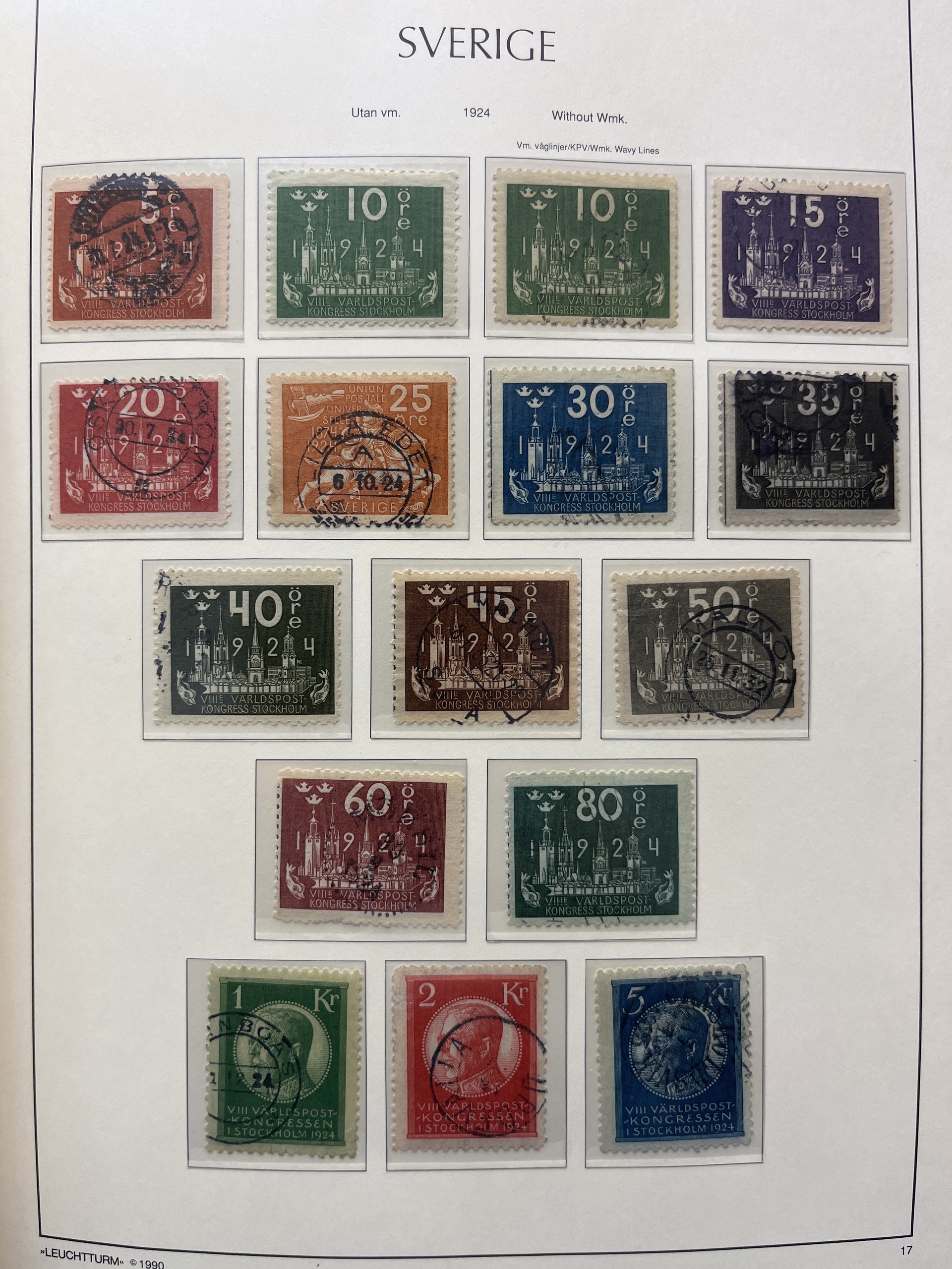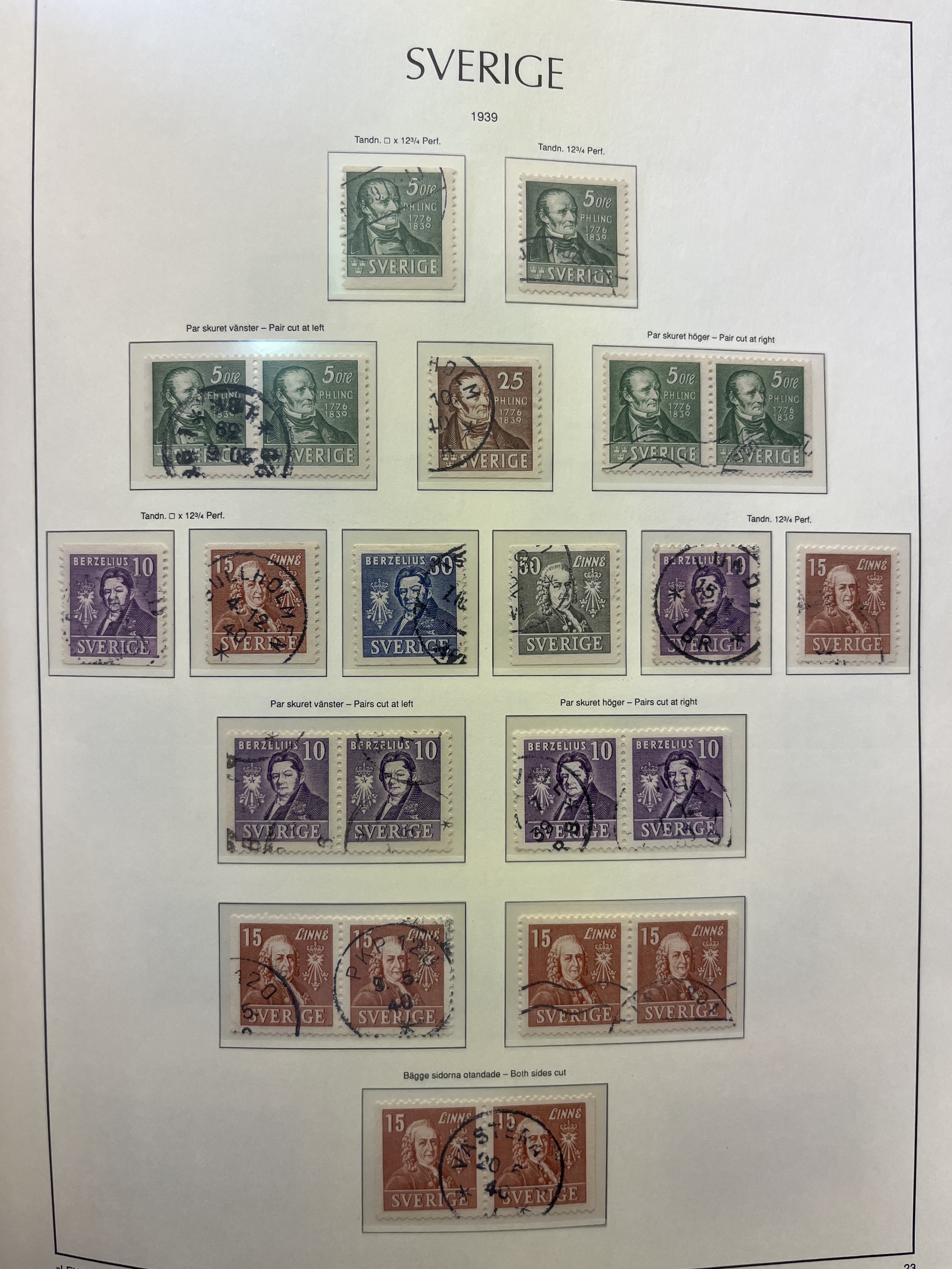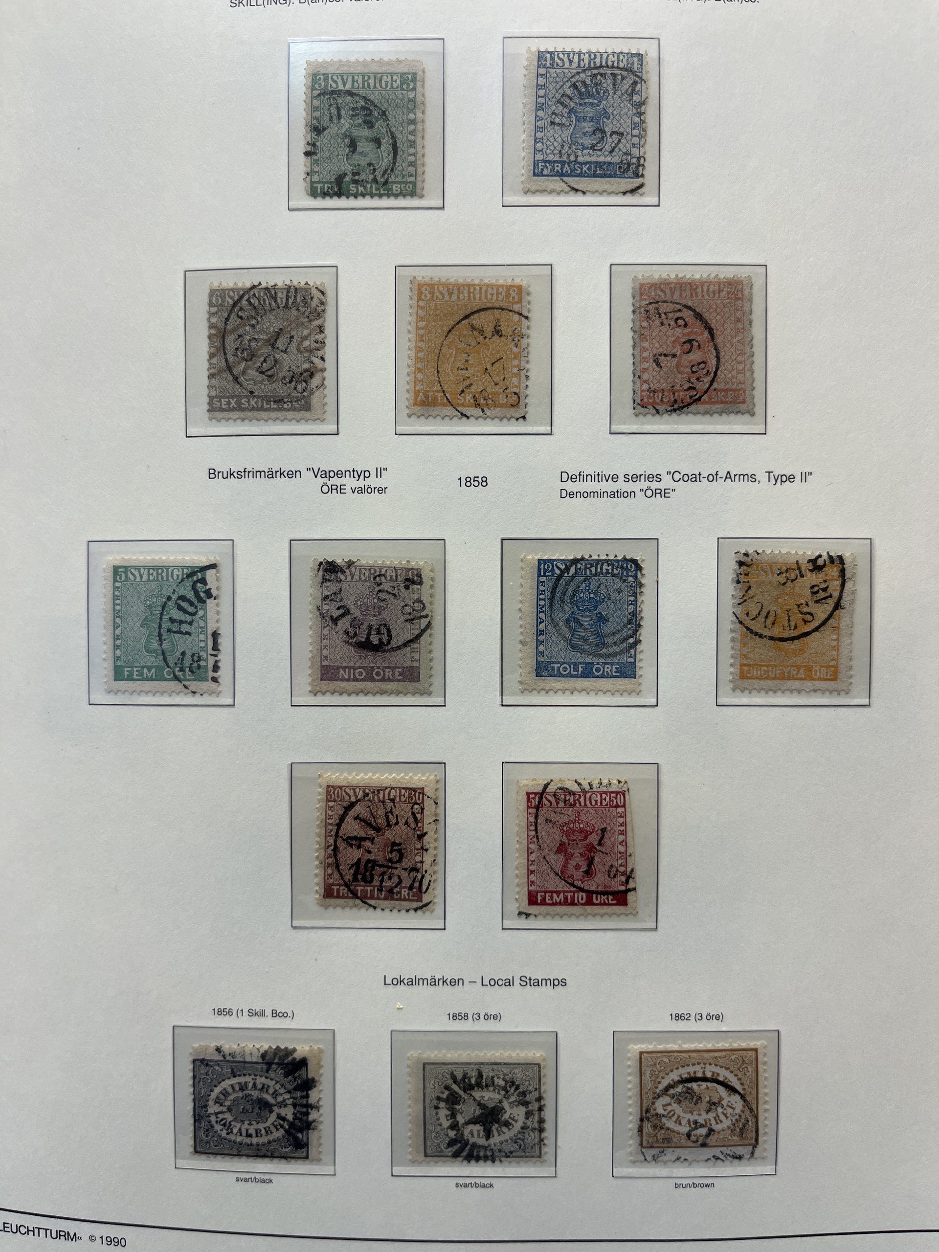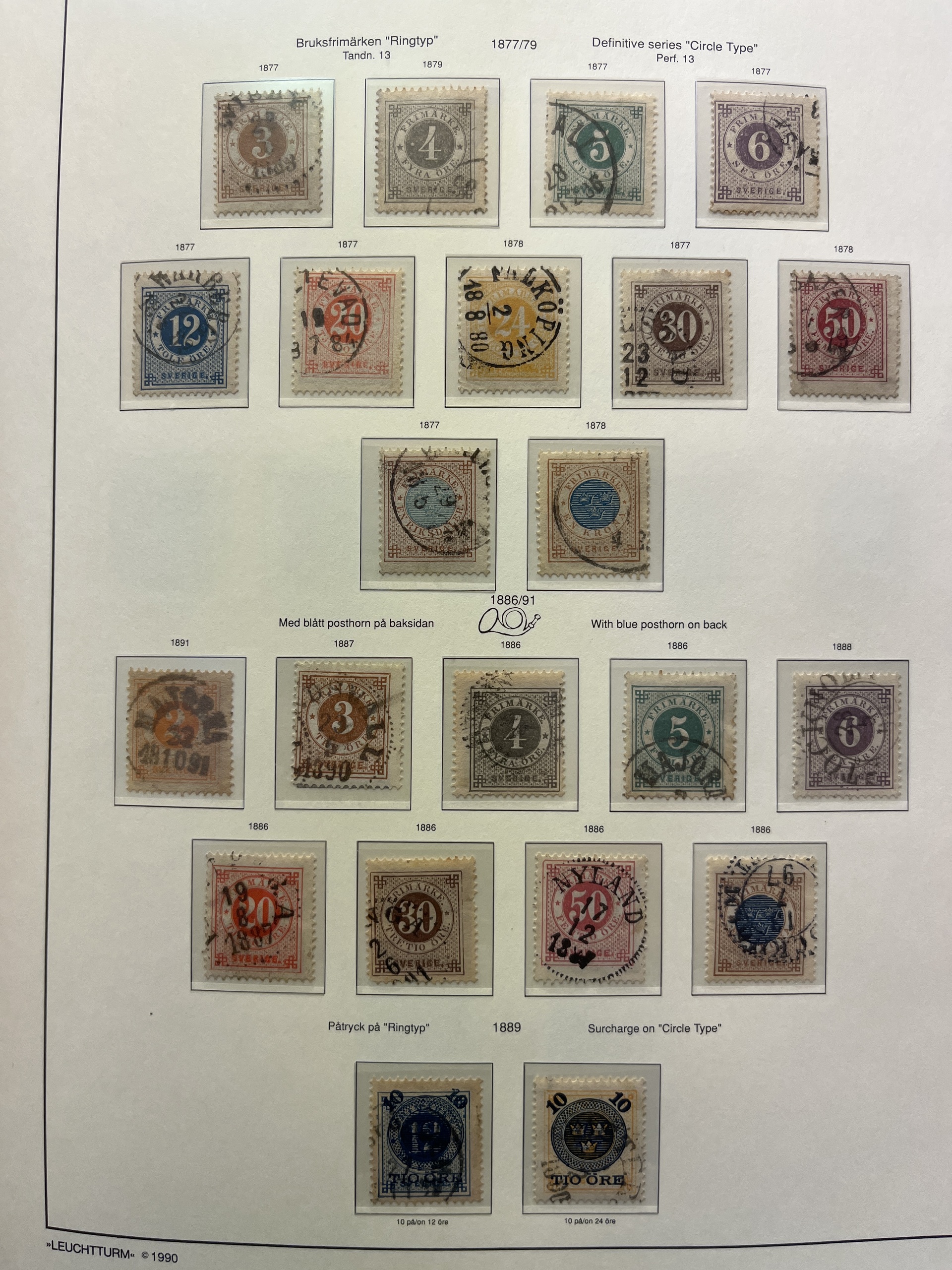 Sweden. Collection used 1855–1974 in Leuchtturm album with stamp mounts. Incl. 3–24 skill bco (3, 6–24 skill bco with cert.), Circle type compl. 1924 year sets compl., many BC/CB-pairs. Please see a selection of scans at www.philea.se. In the beginning mixed quality, later fine.