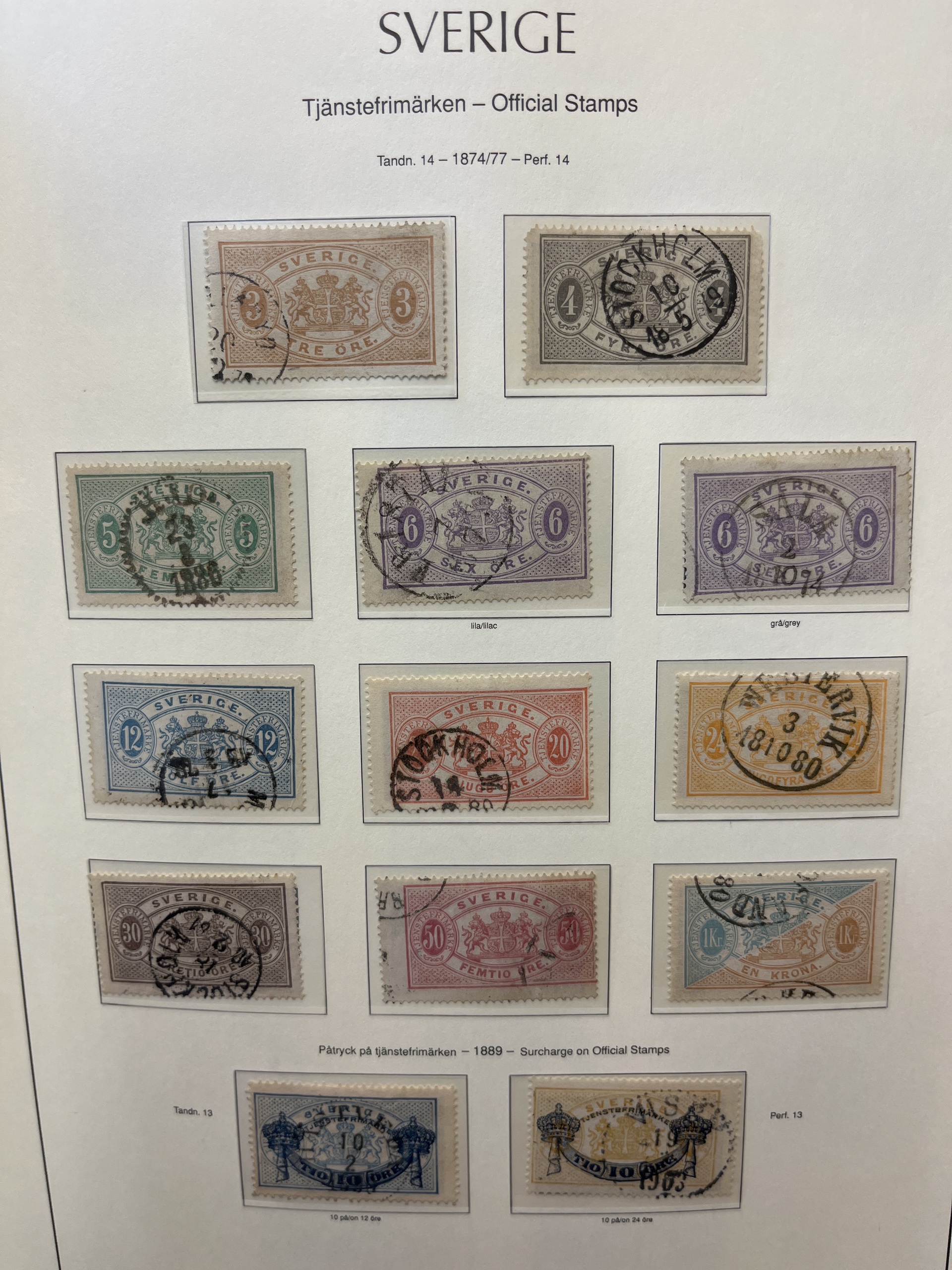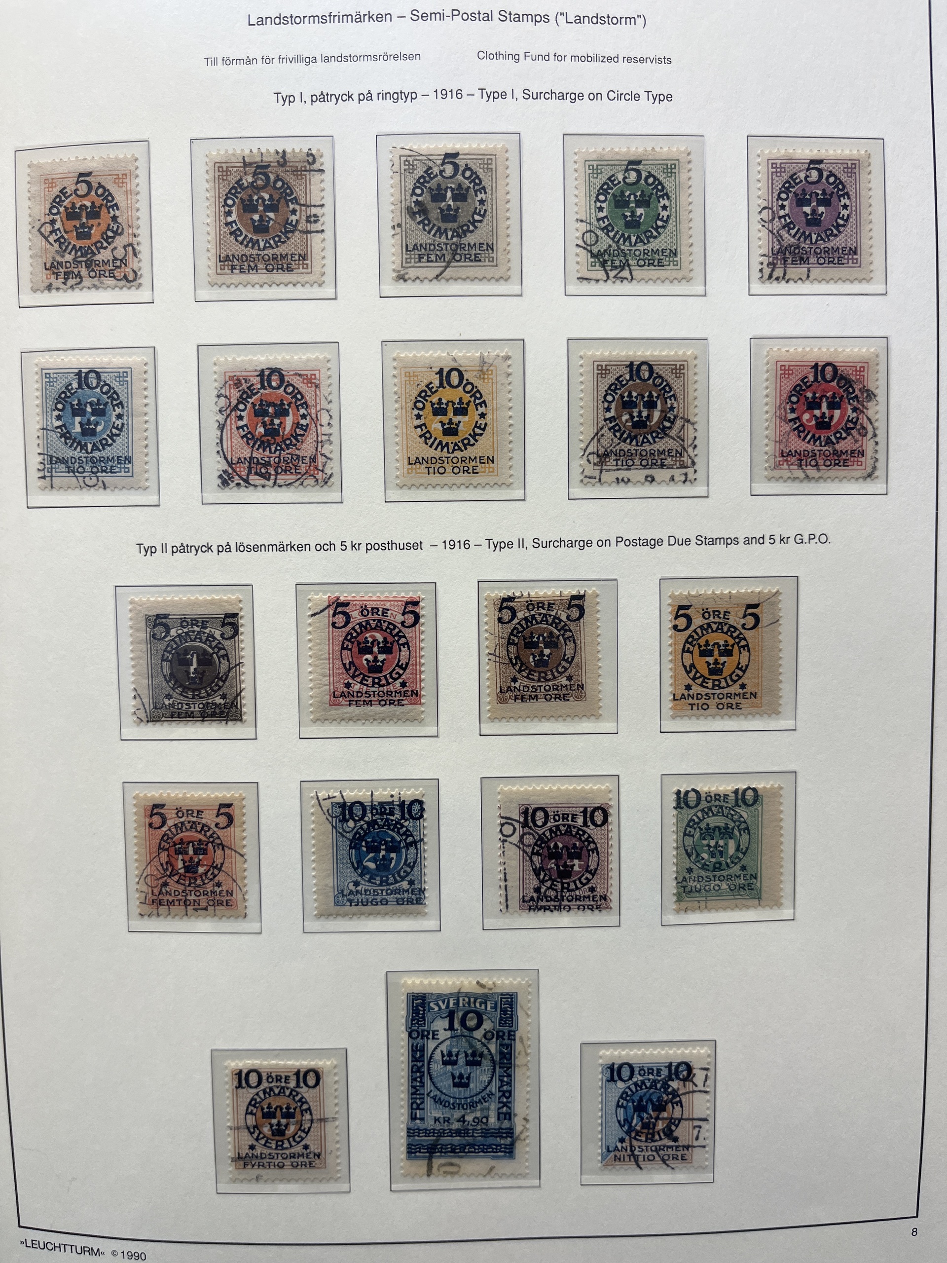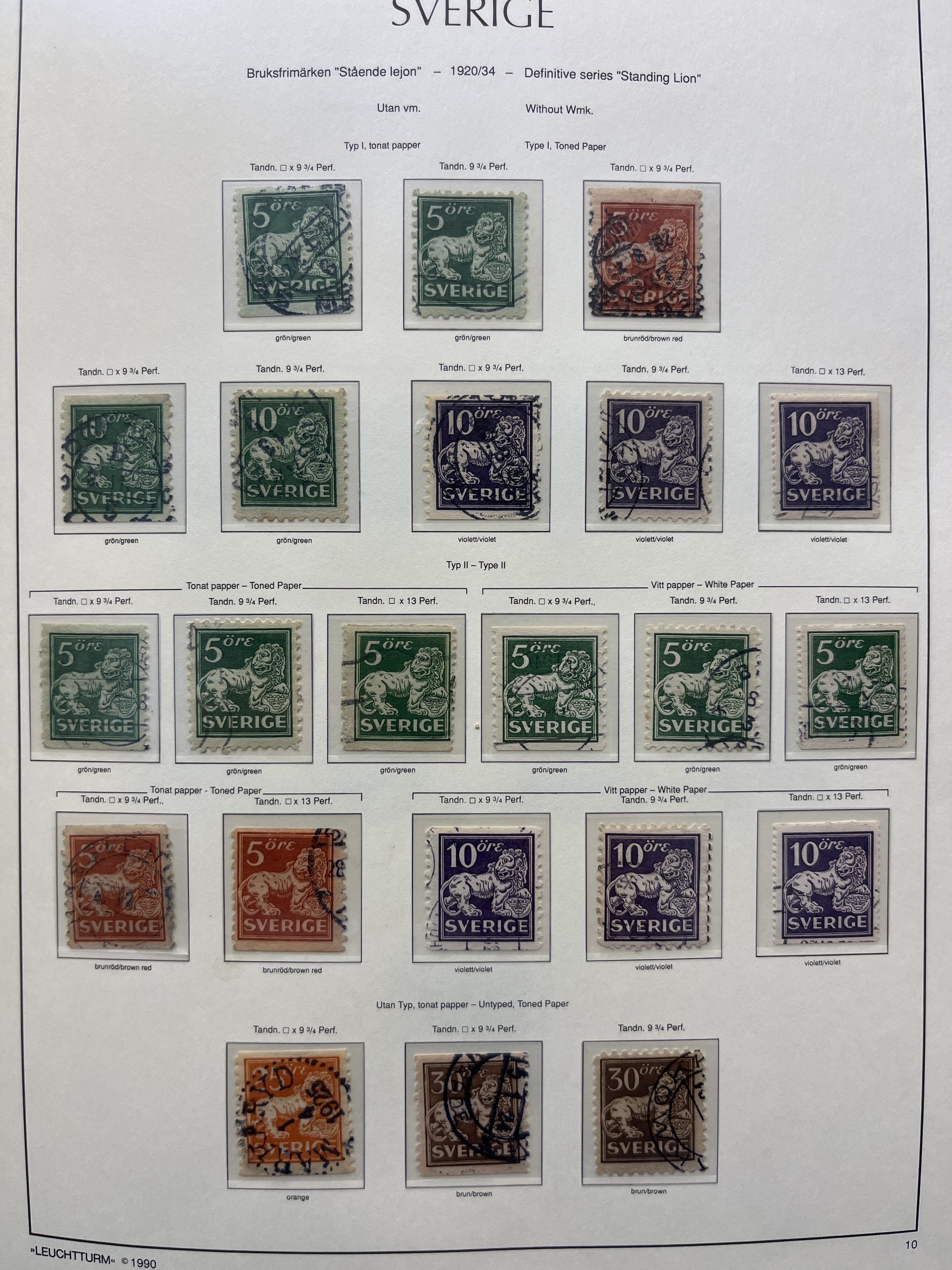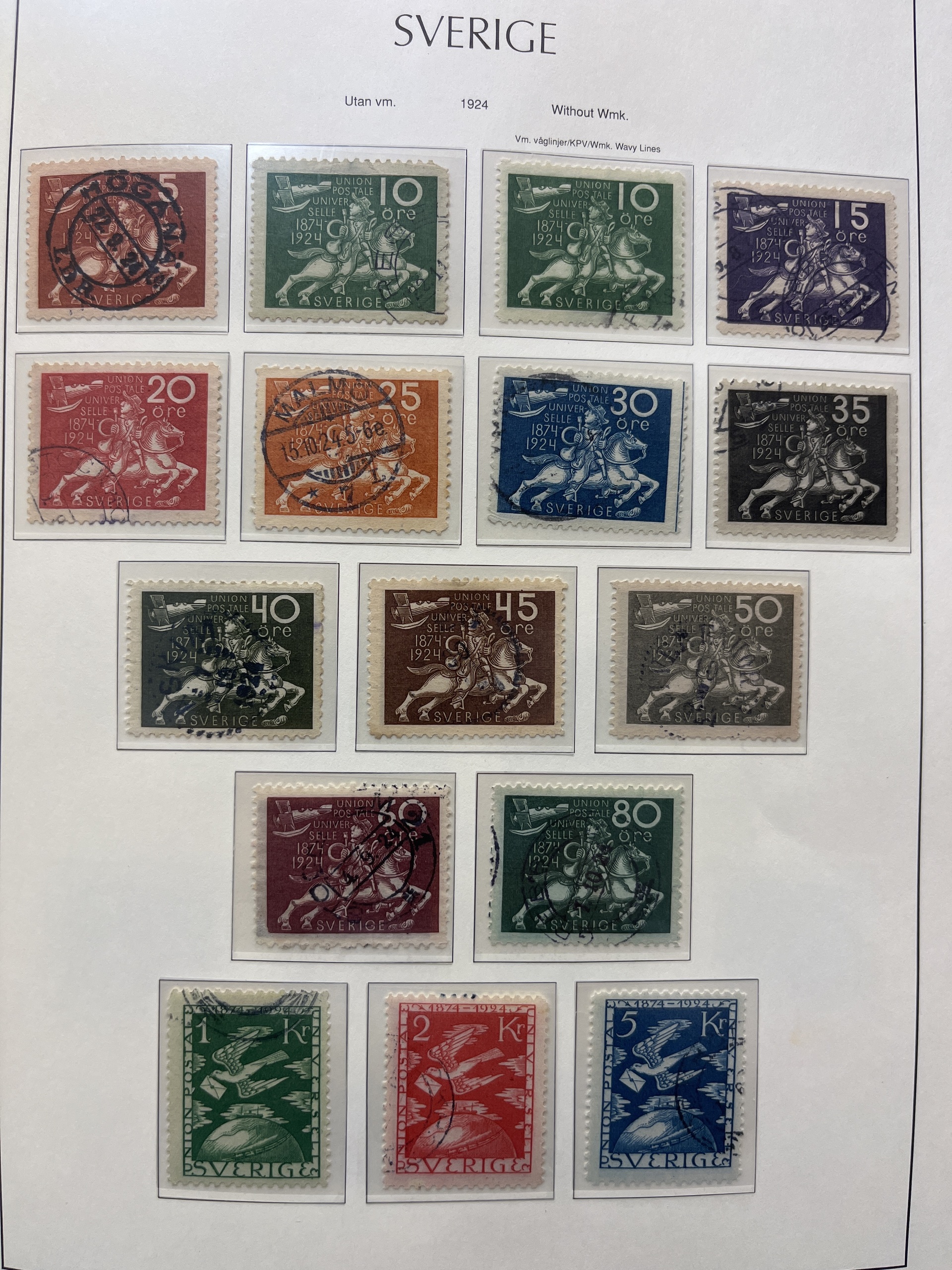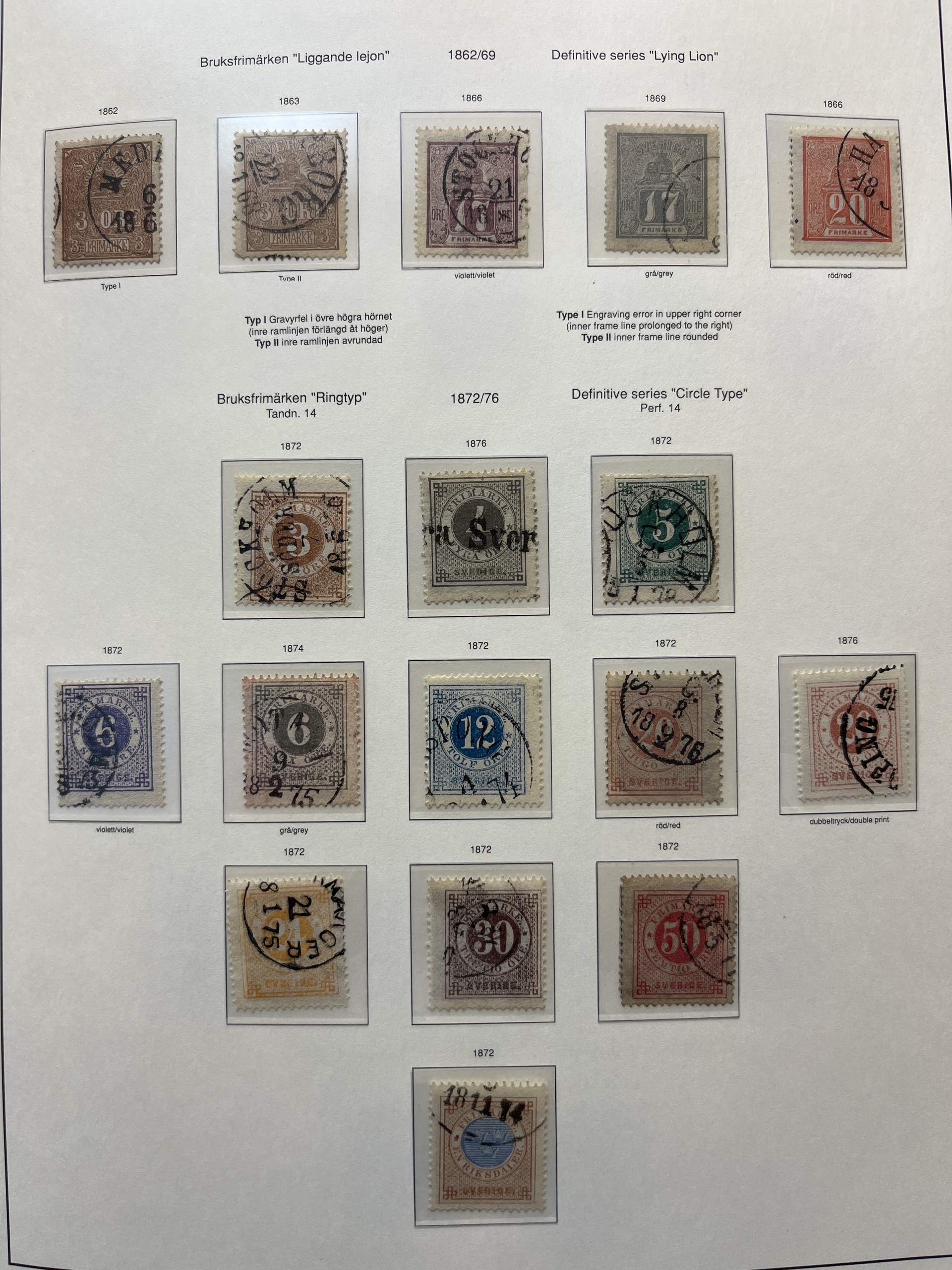 Sweden. Collection used 1855–1974 in Leuchtturm album with stamp mounts. Incl. 3–24 skill bco (3, 6–24 skill bco with cert.), Circle type compl. 1924 year sets compl., many BC/CB-pairs. Please see a selection of scans at www.philea.se. In the beginning mixed quality, later fine.