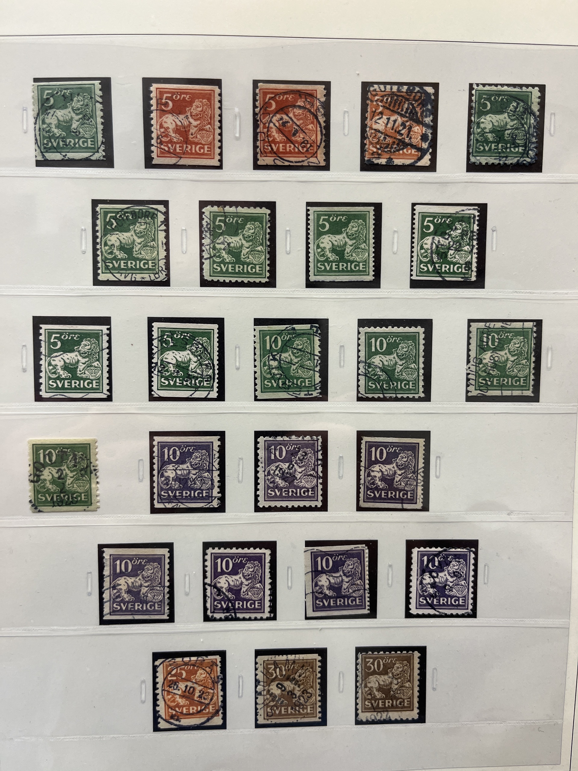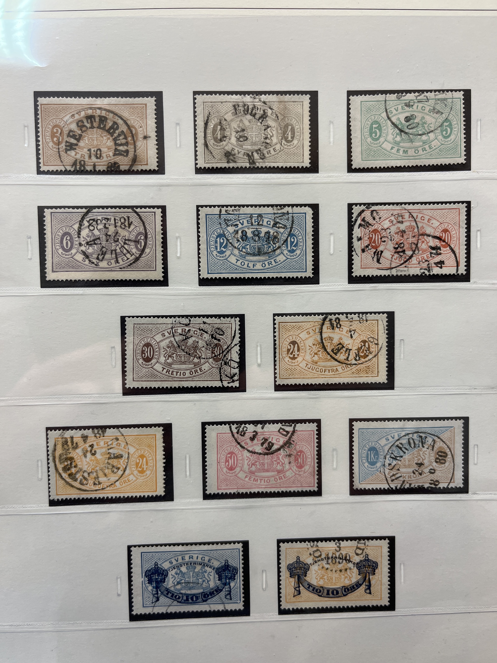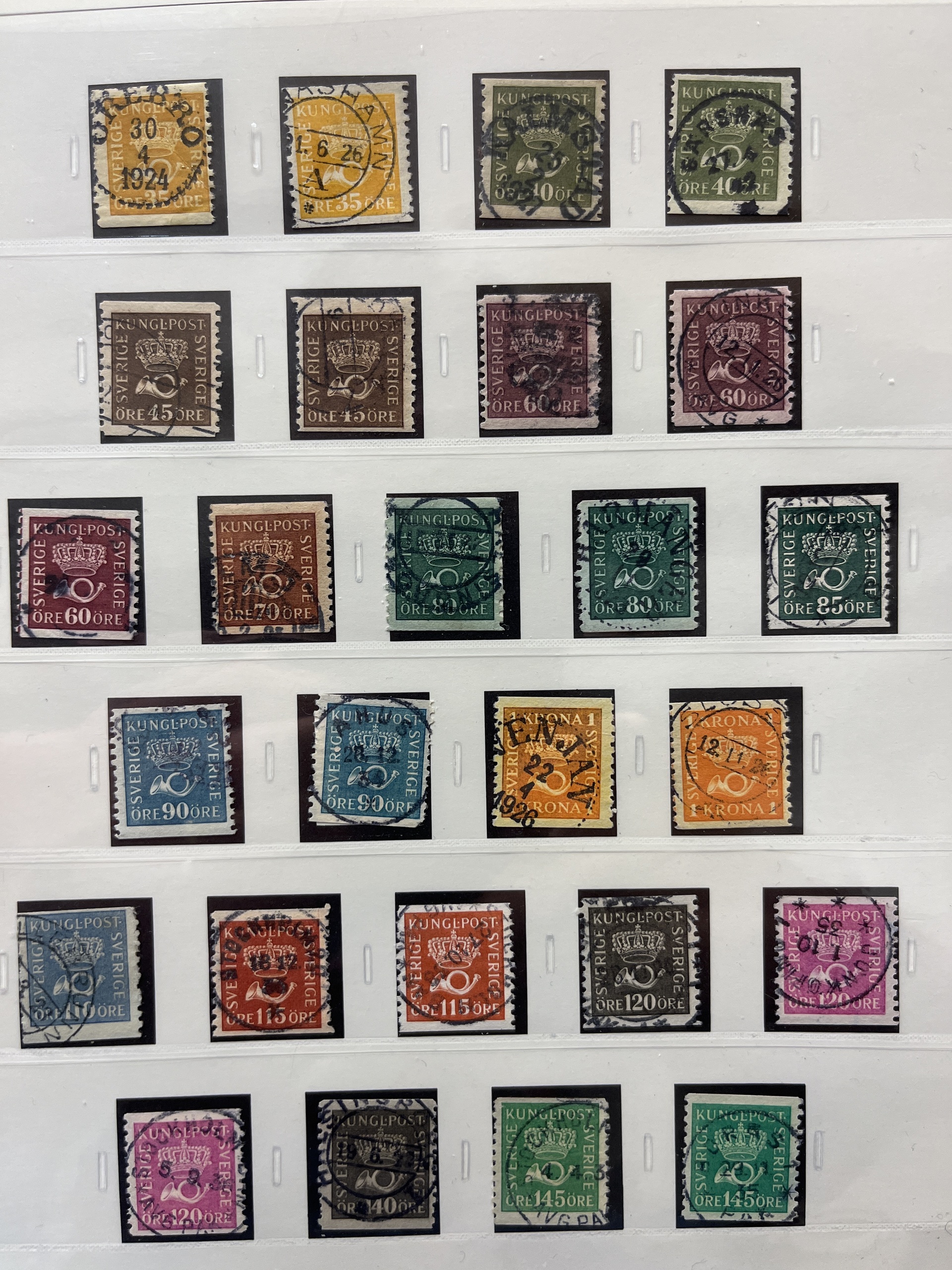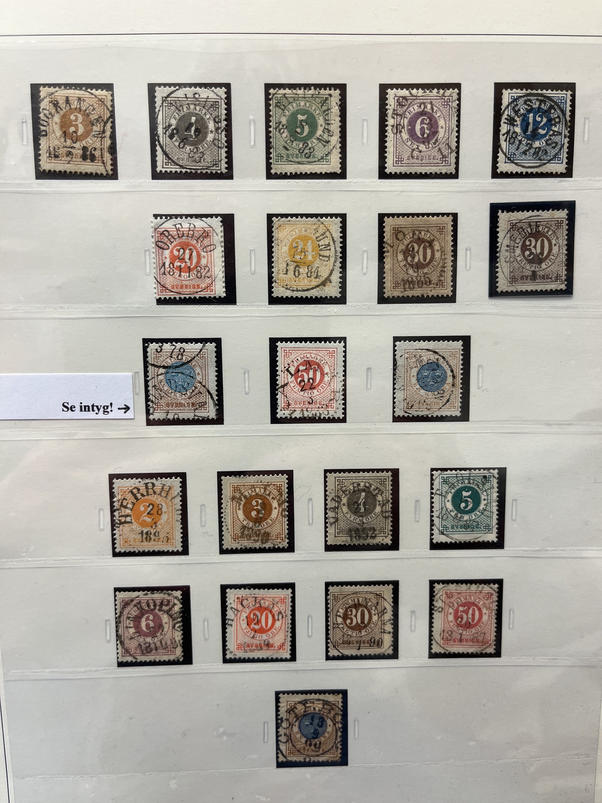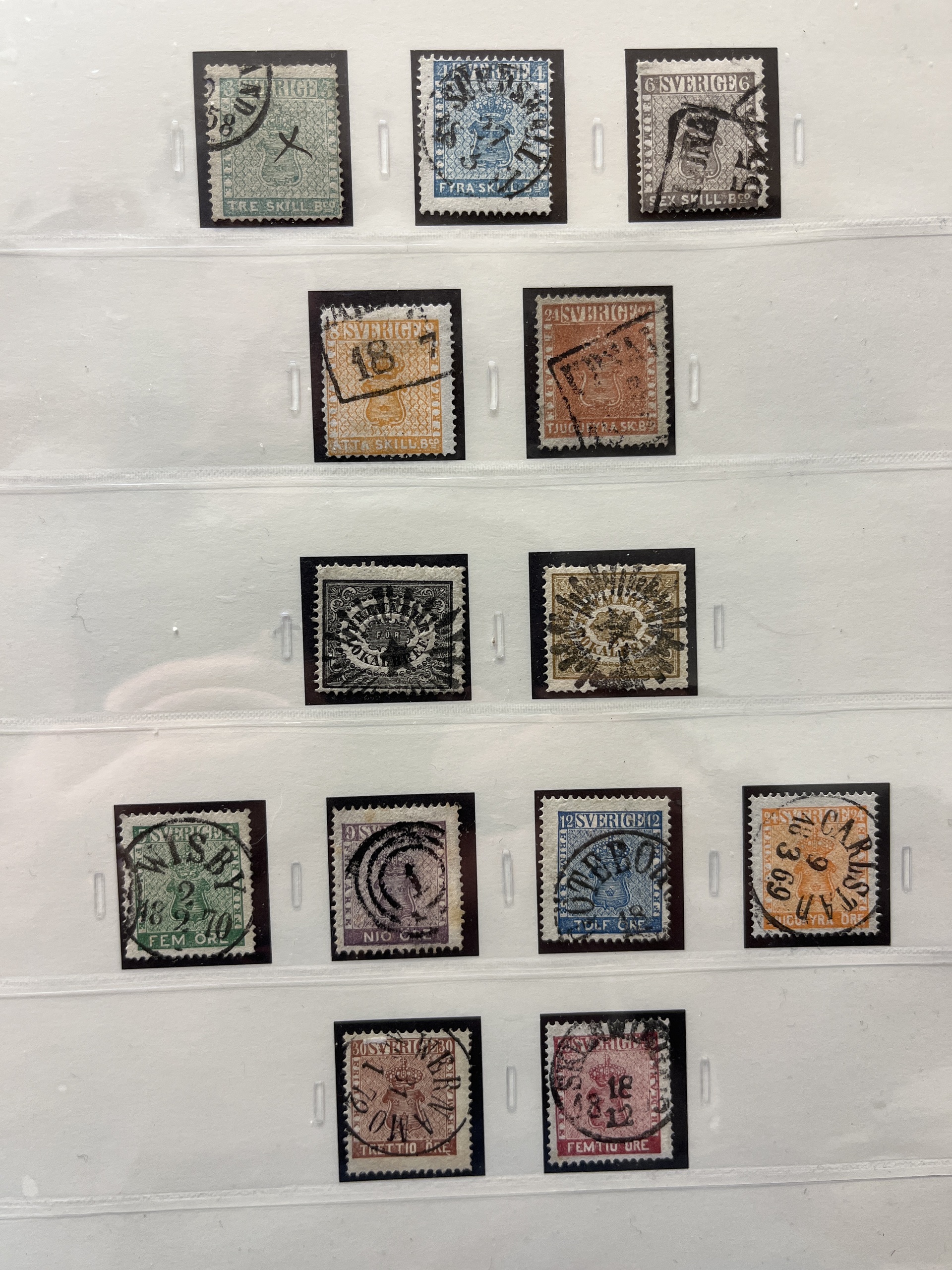 Sweden. Collection used 1855–1935 in SAFE album without stamp mounts. Probably complete collection except for 55 and 80 öre. Please see a selection of scans at www.philea.se. In the beginning mixed quality, later fine.