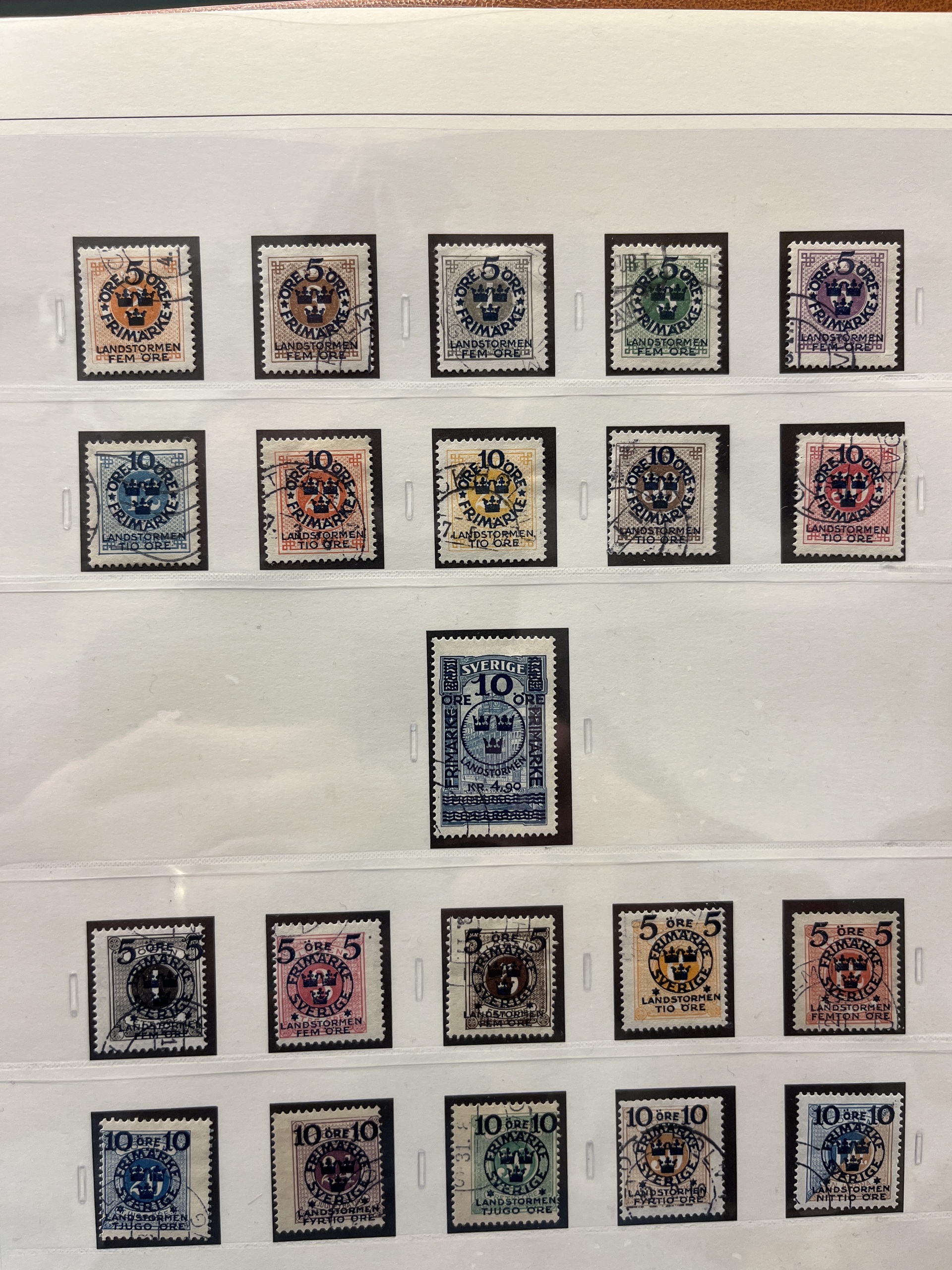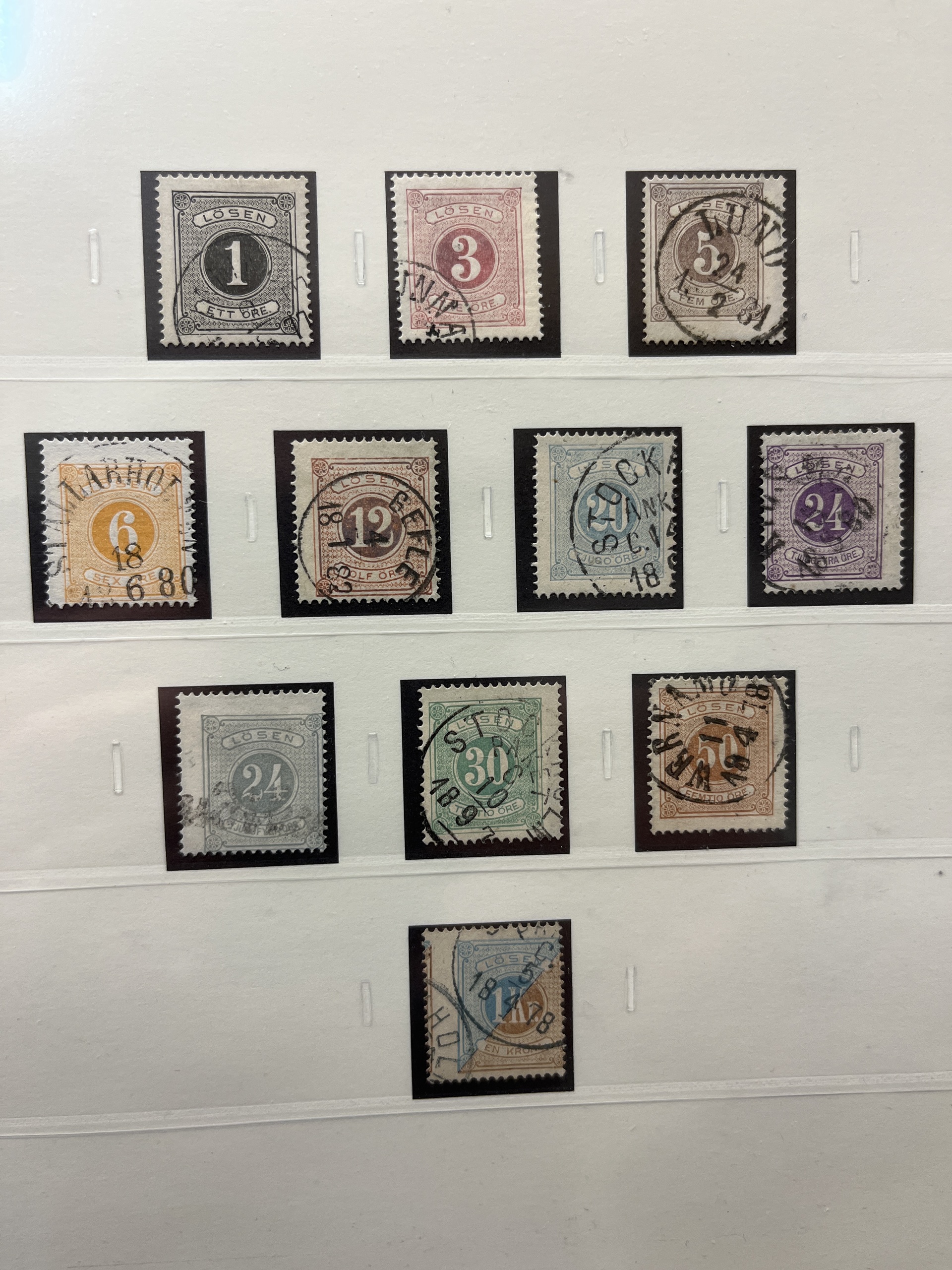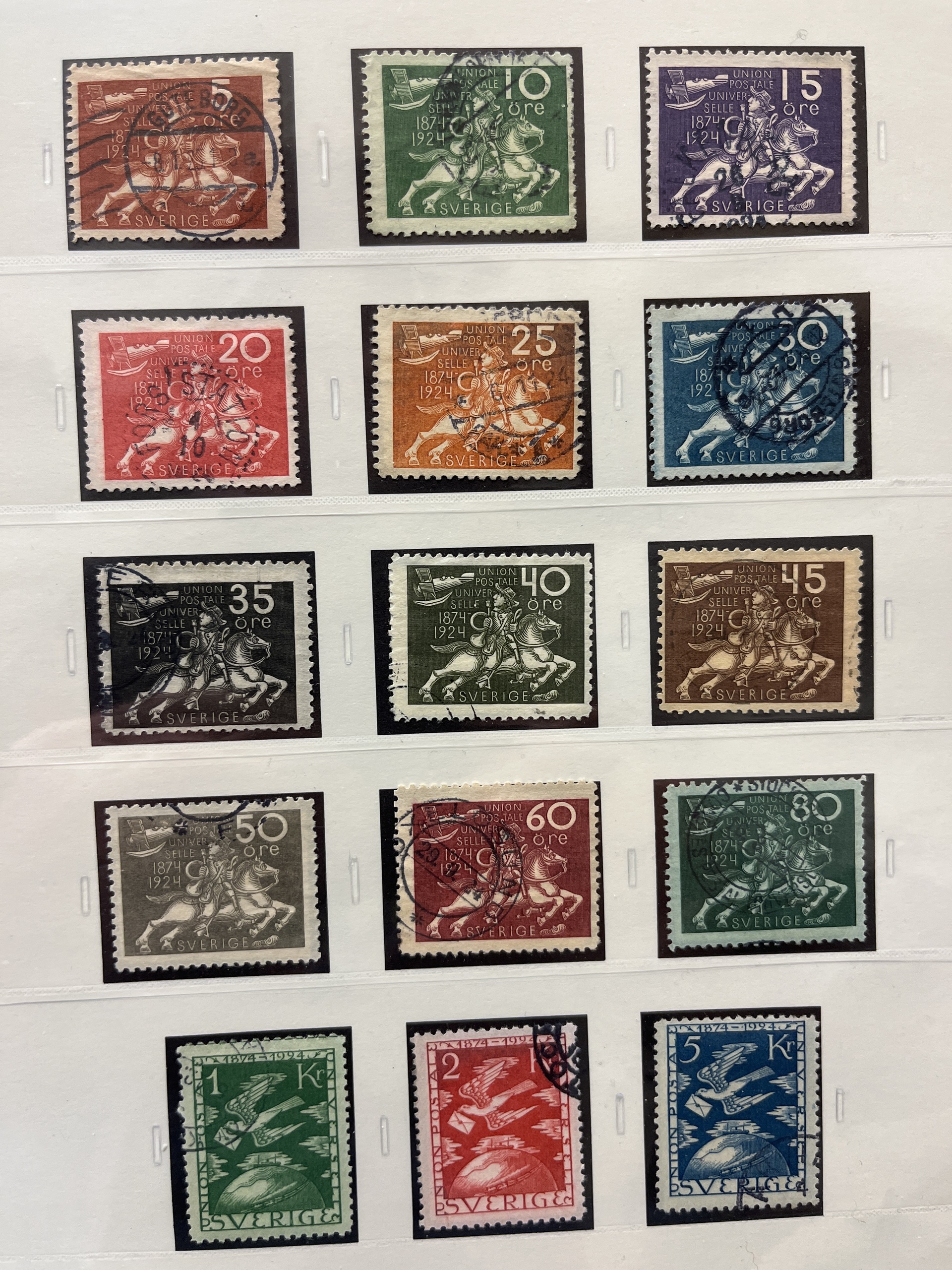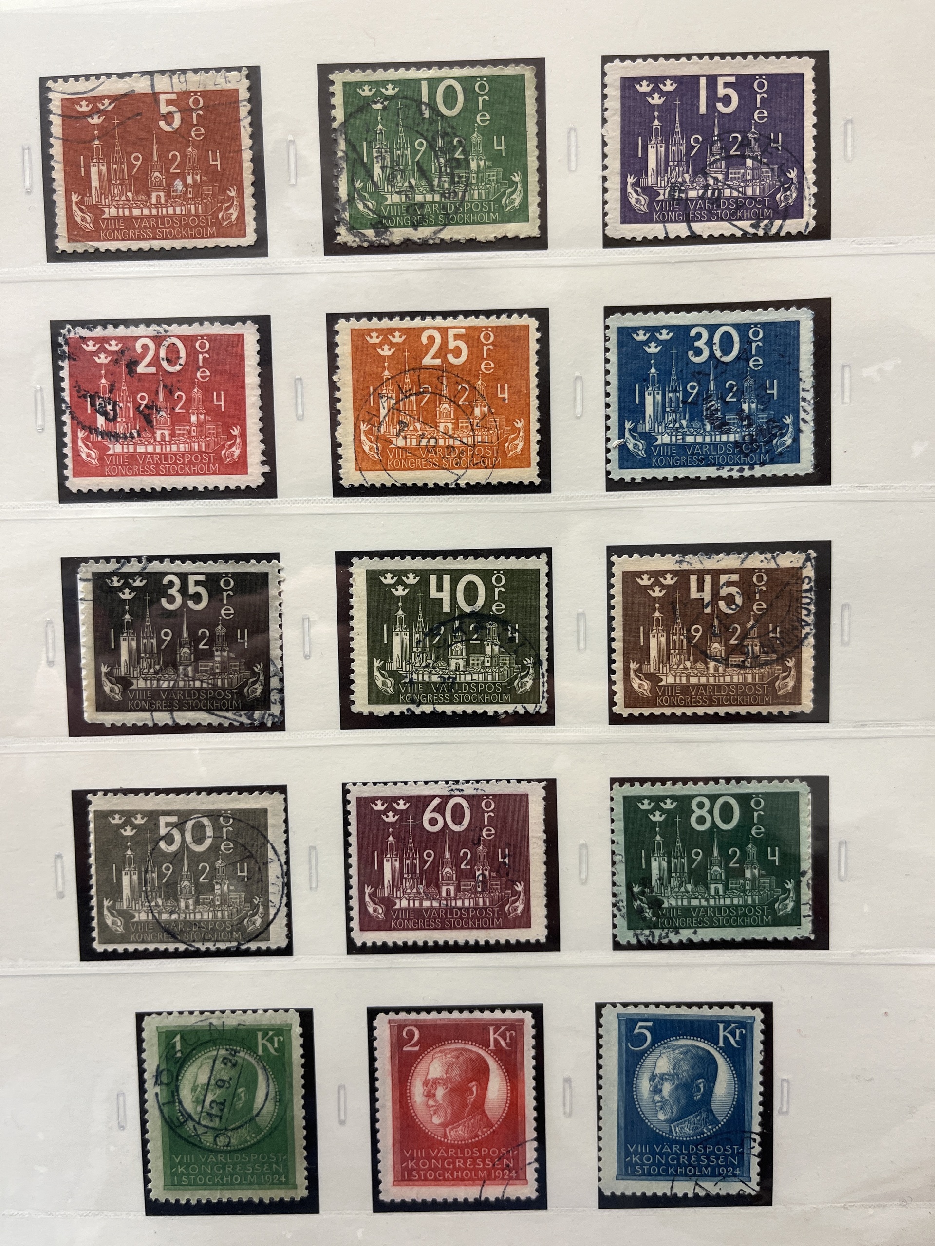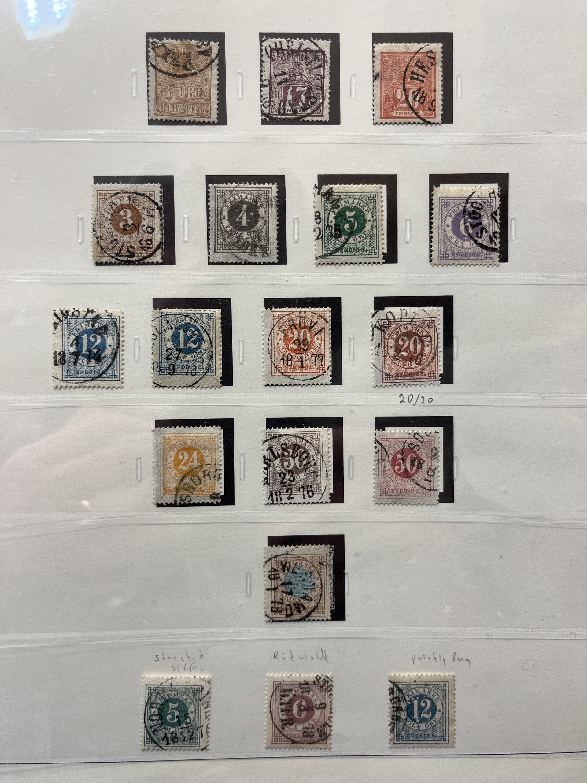 Sweden. Collection used 1855–1935 in SAFE album without stamp mounts. Probably complete collection except for 55 and 80 öre. Please see a selection of scans at www.philea.se. In the beginning mixed quality, later fine.