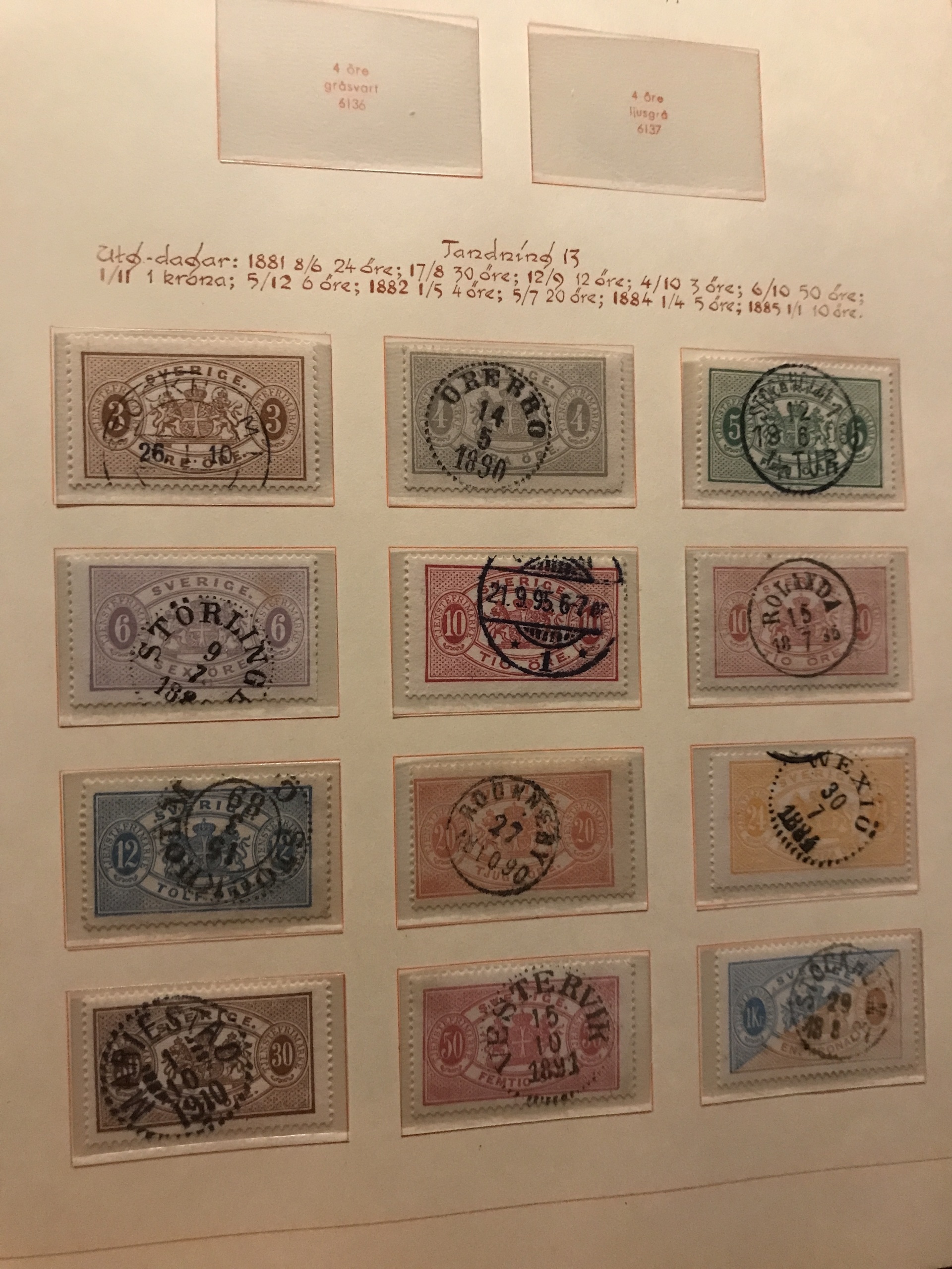 Sweden. Used. Collection 4 skill–1974 in three Estett albums incl. 8-skill (some short perf.), 17 öre grey, cpl. Circle types except F37, better coil stamps, cpl. Congress, UPU 5 öre–2 kr, 14 BC/CB-pairs and some nice cancellations, etc. Mostly fine quality. Approx. 7 kg.