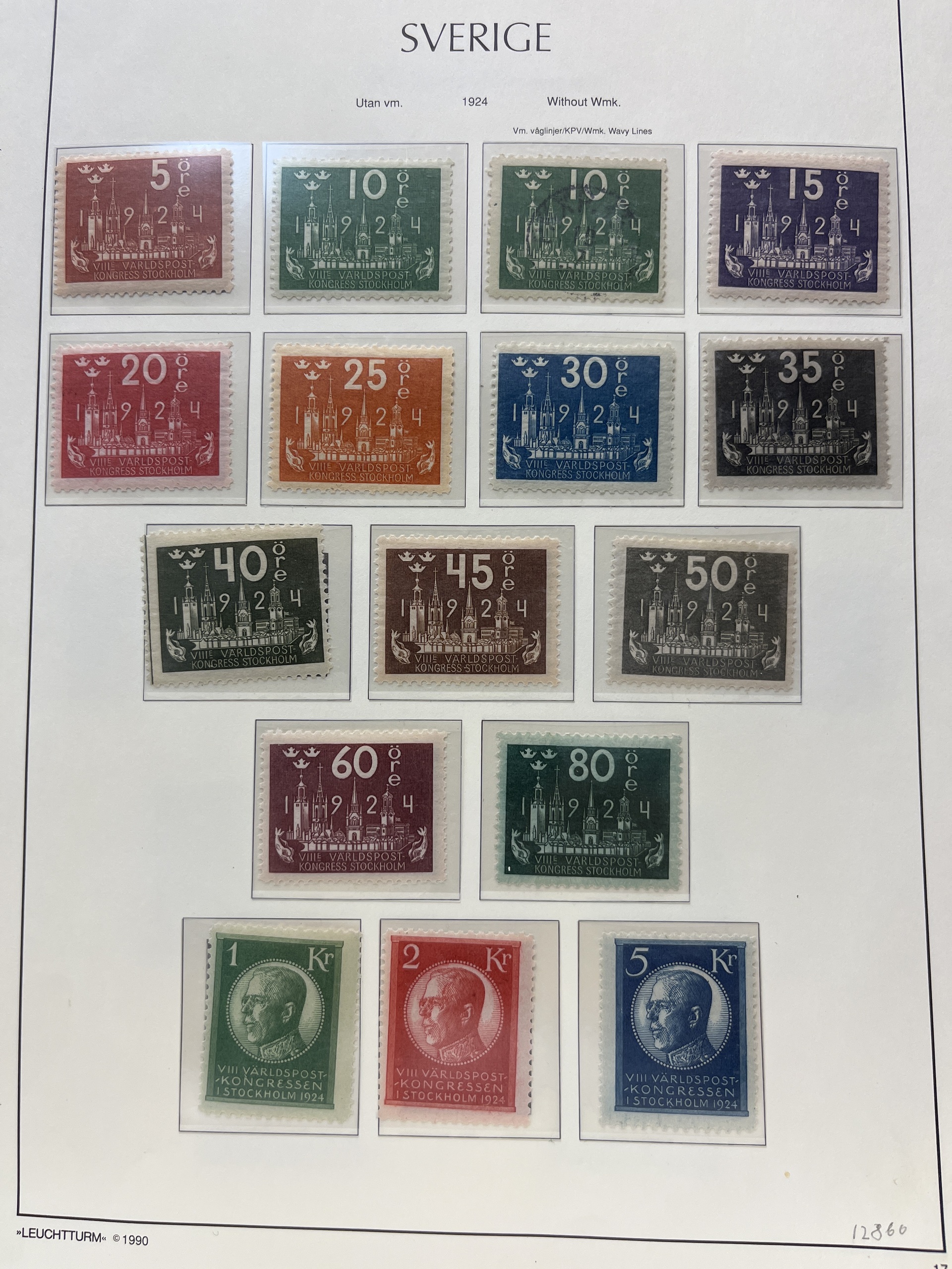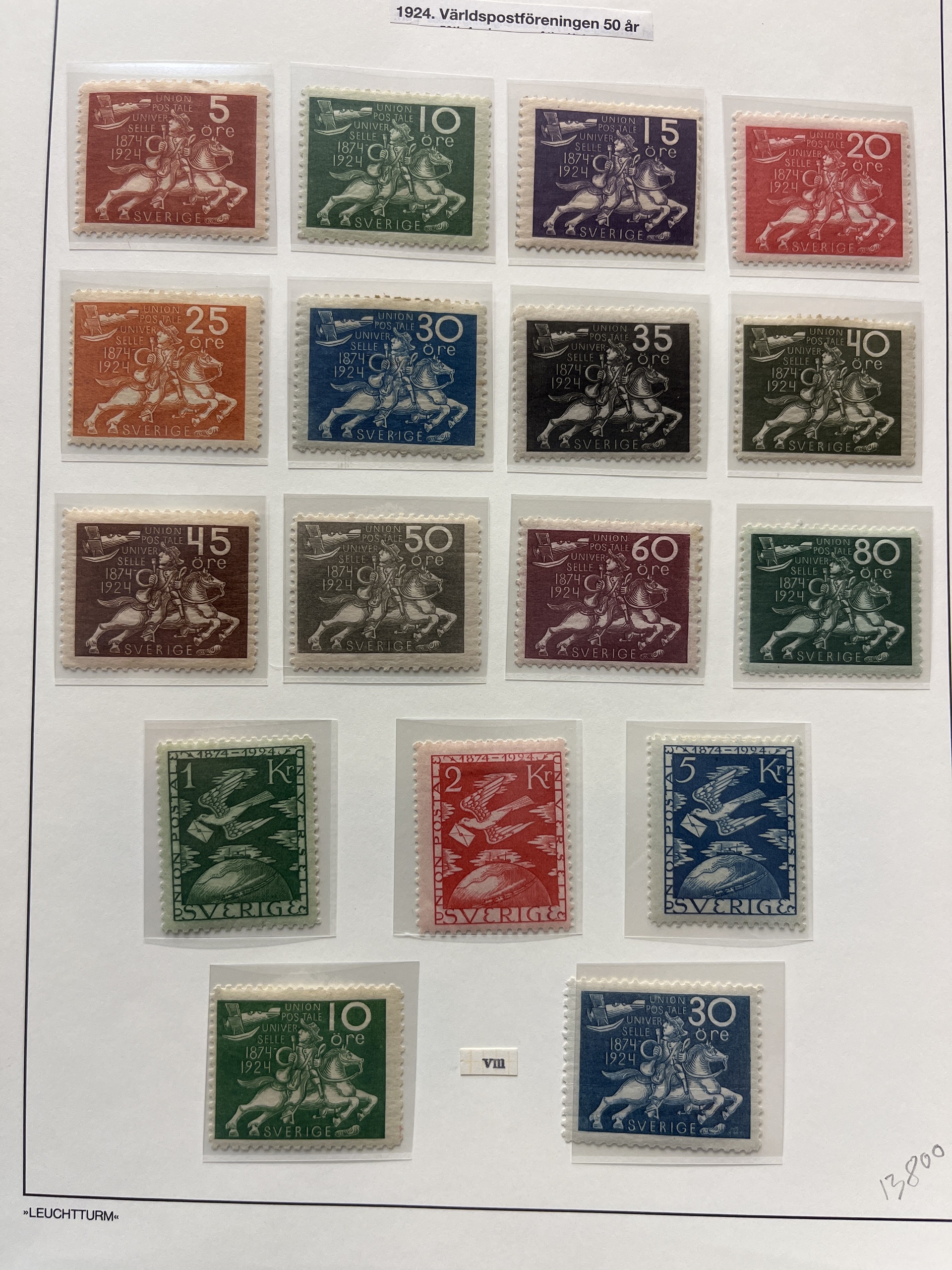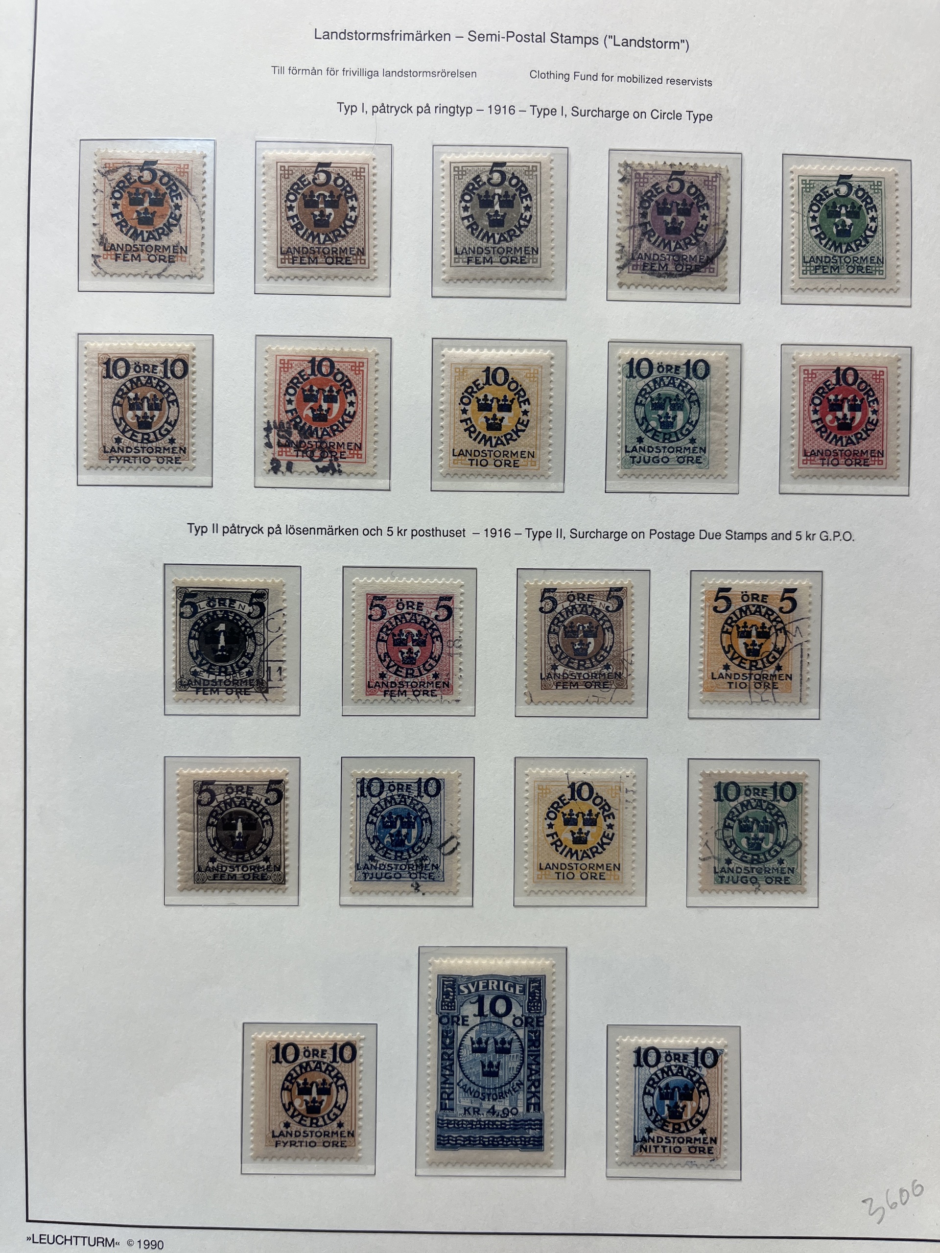 Sweden. Collection ★★/★/⊙ 1916–1932 on seven leaves with 'Landstormen' I and II, year sets 1924 compl. Fine quality.