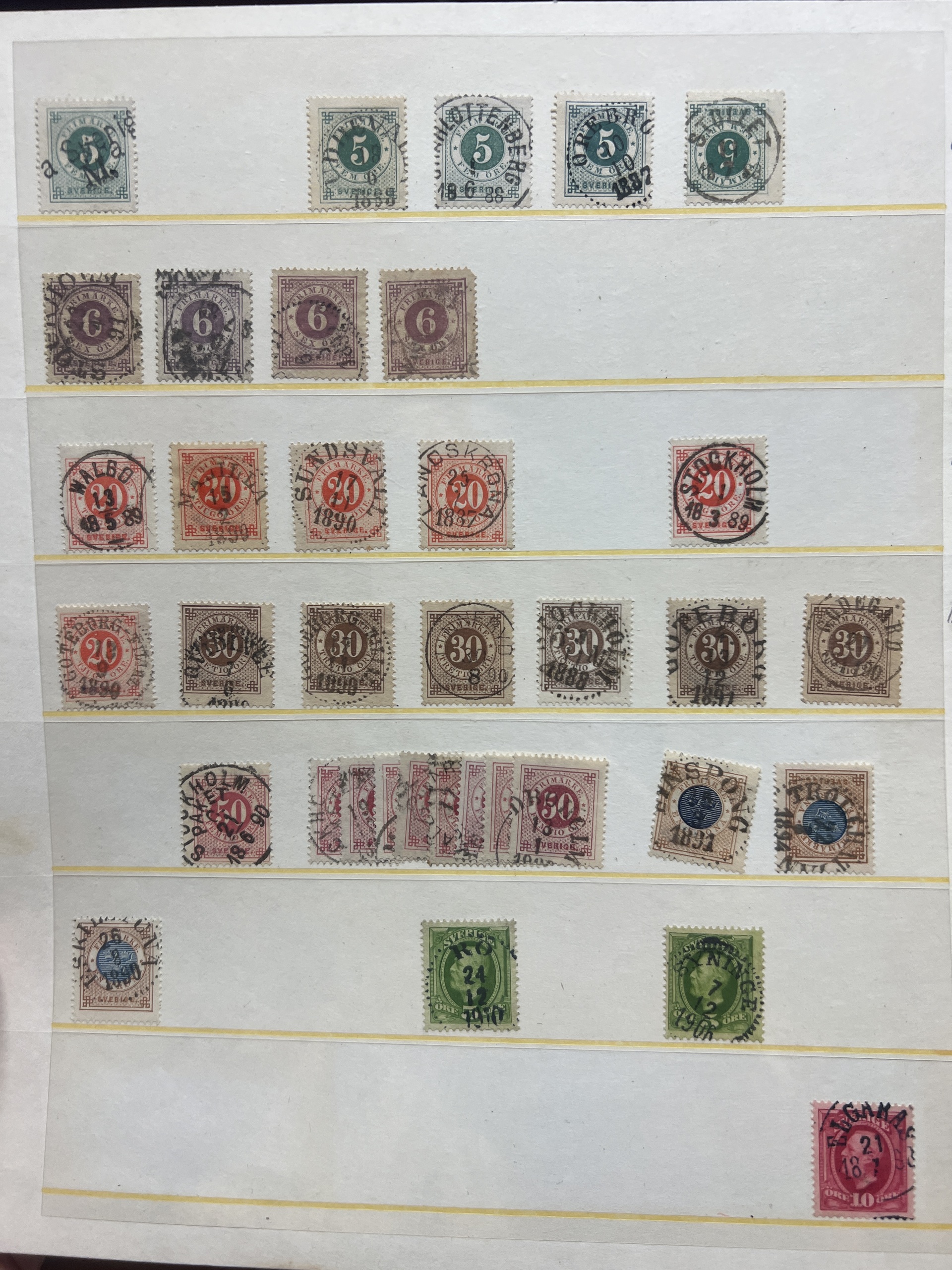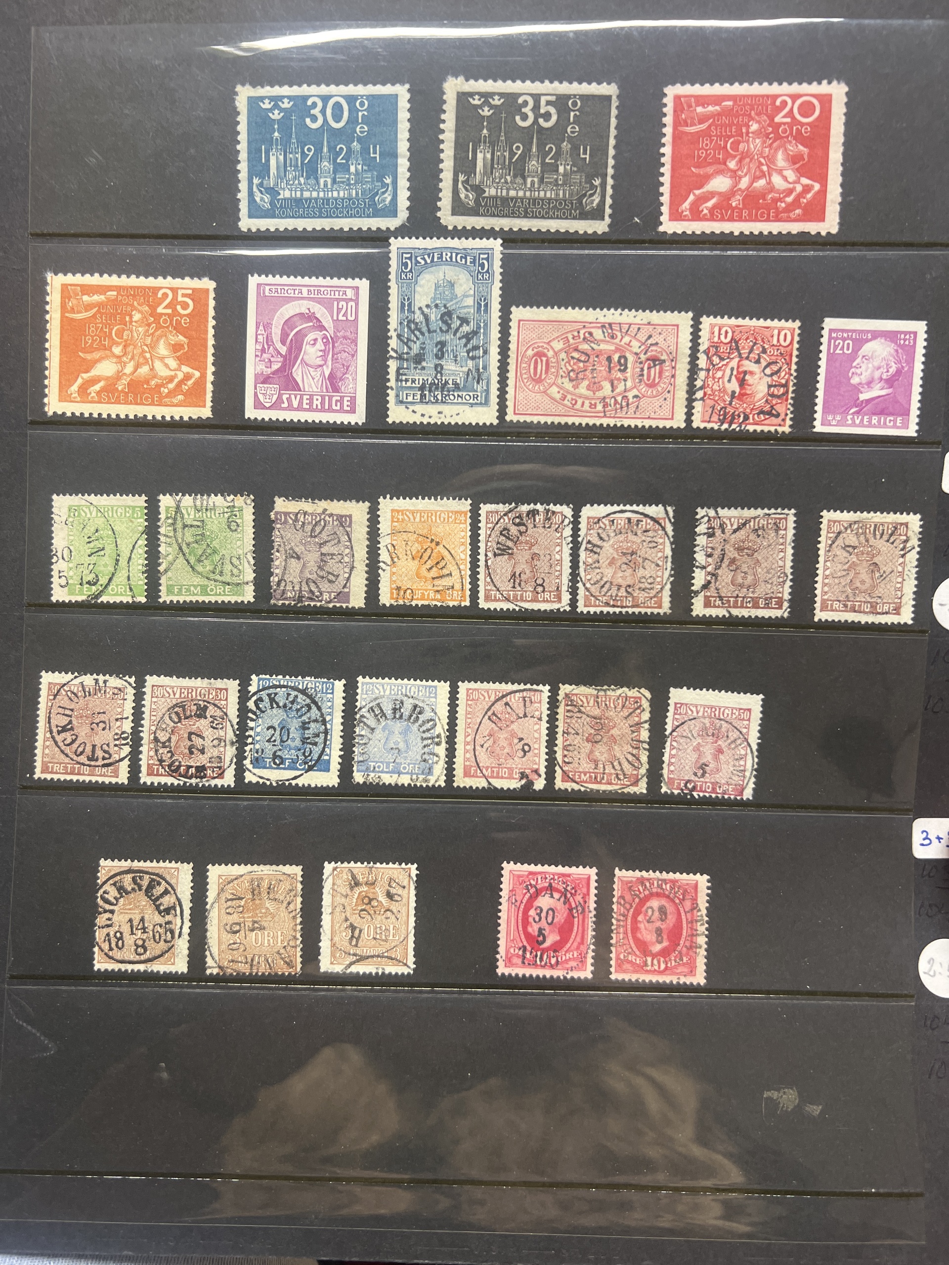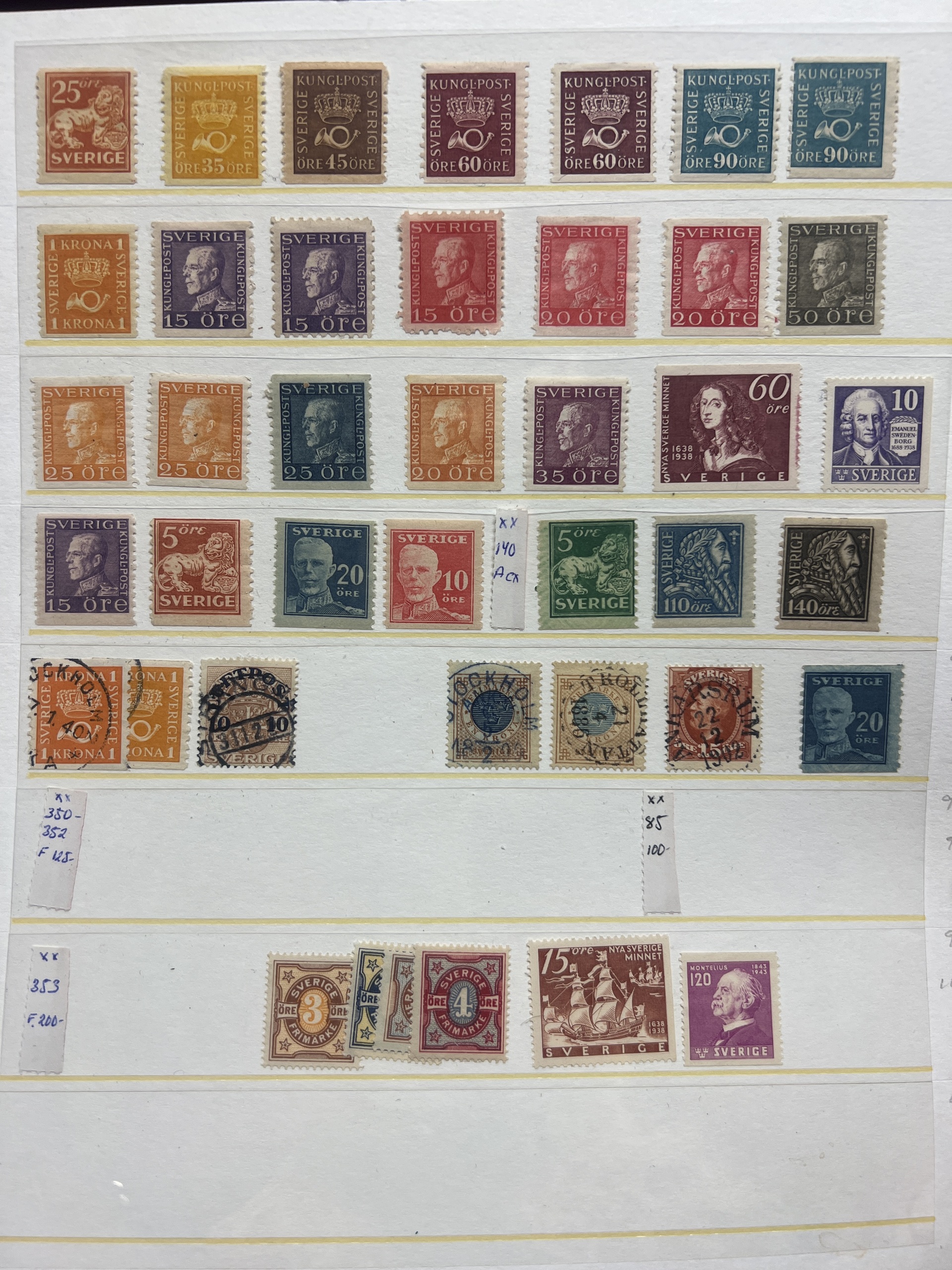 Sweden. Accumulation ★★/★/⊙ 1858–1950s on visir leaves. Interesting lot with mint coil stamps, coat-of-arms and circle types with nice cancels, some booklets, etc. Low reserve. Please see a selection of scans at www.philea.se. Somewhat mixed quality. (400)