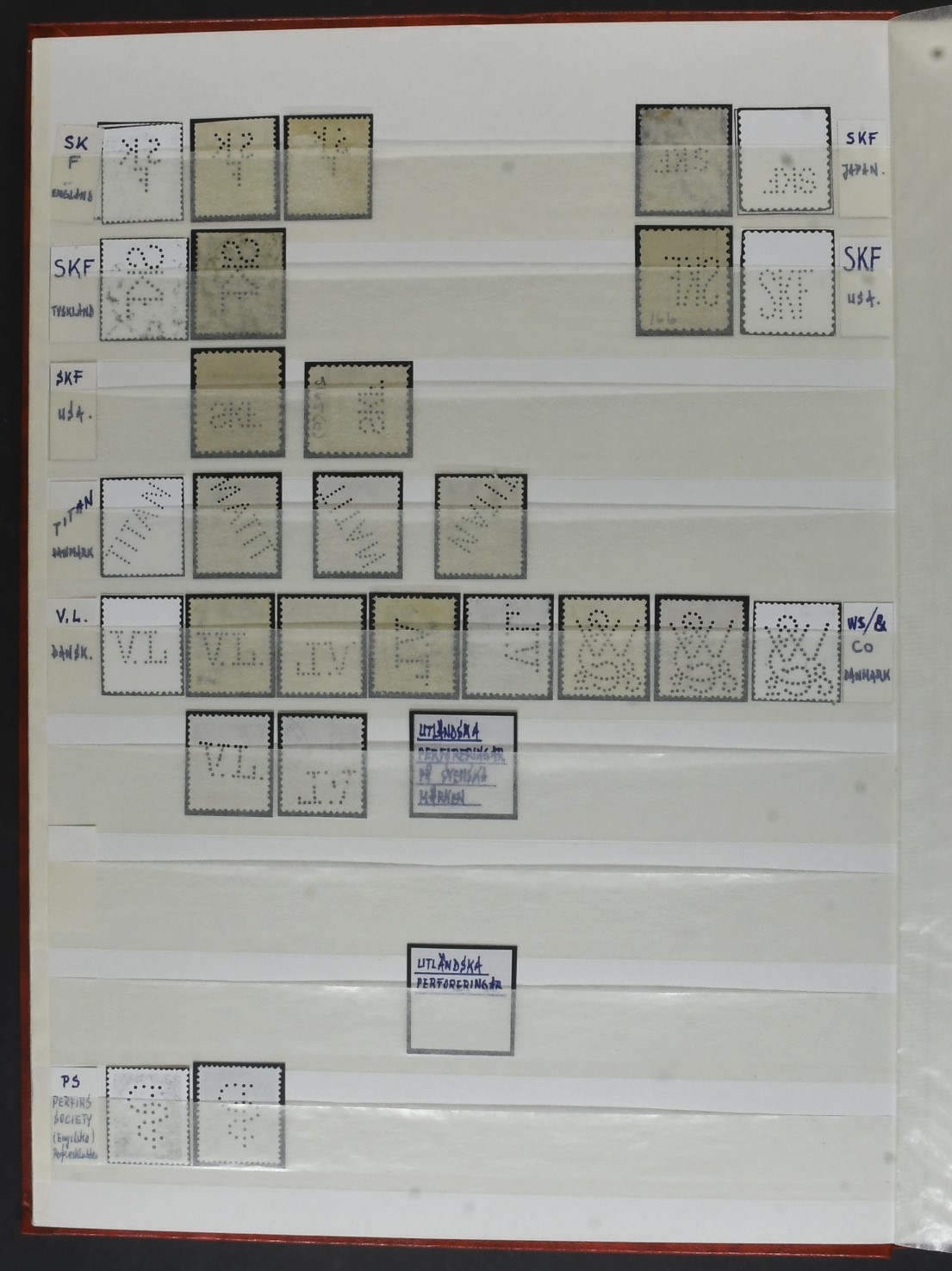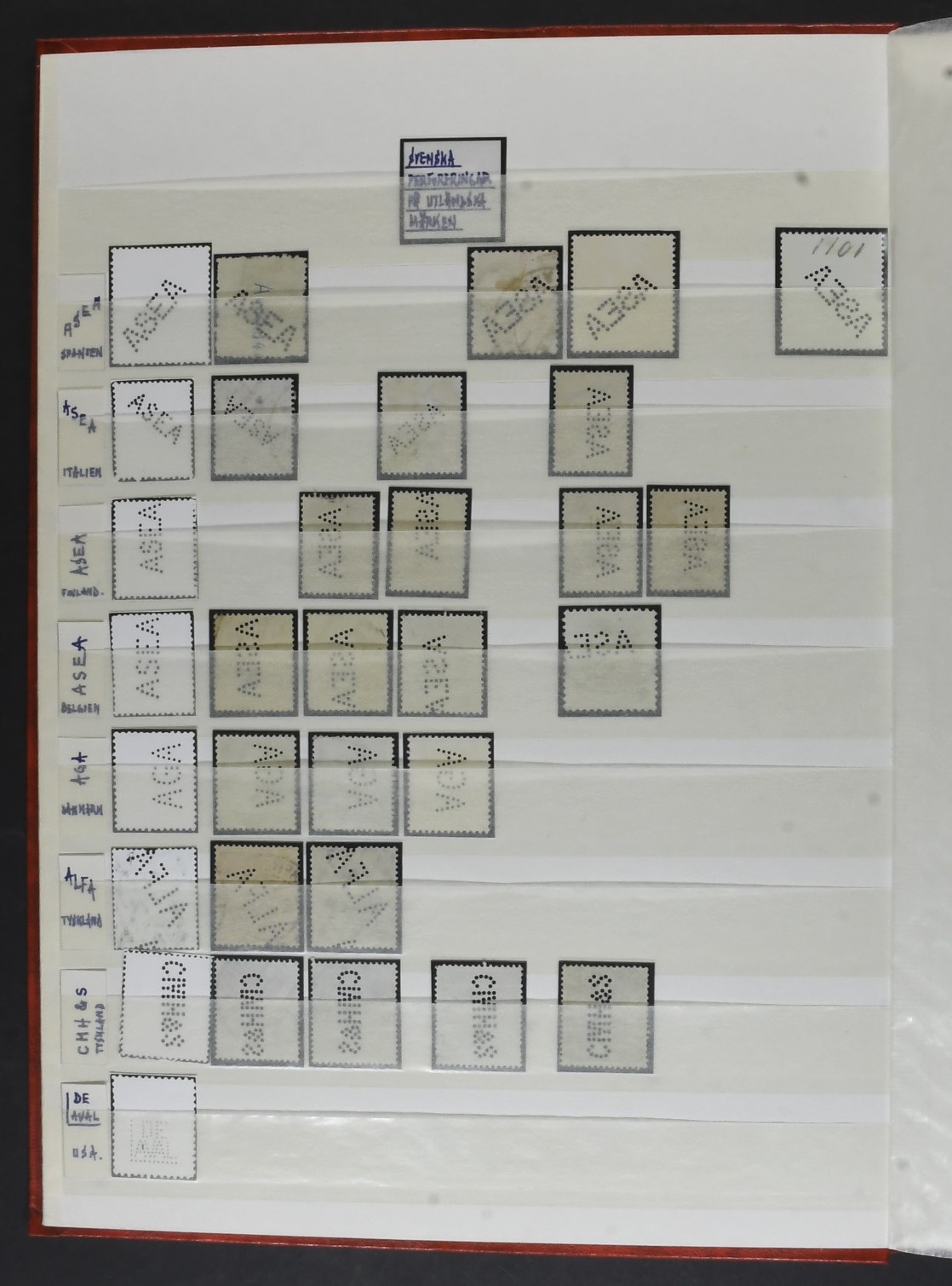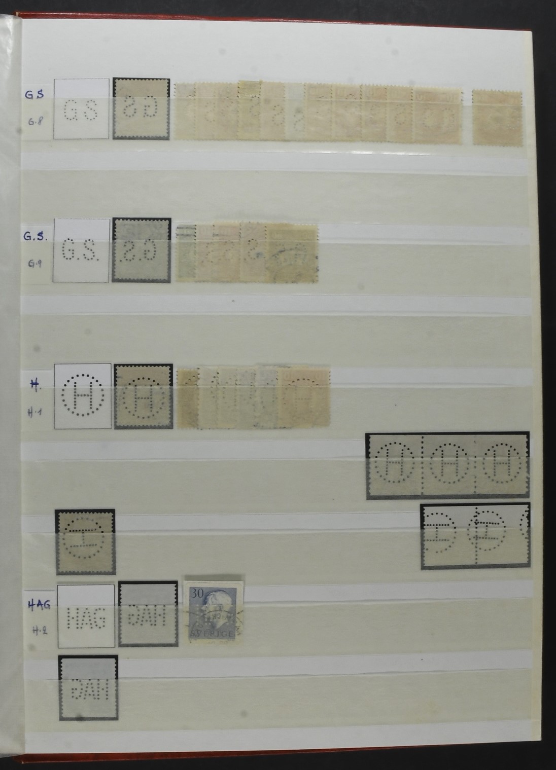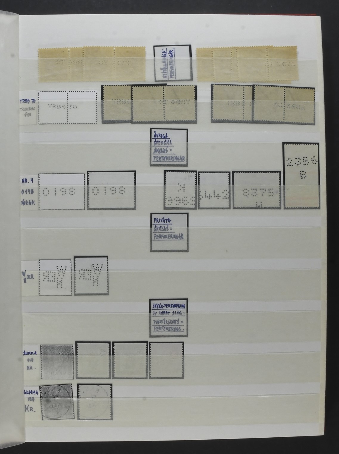 Sweden. Perfins, collection in two stockbooks. Very extensive contaning 170 different types. Only 14 missing according to a former description. About 2500 in total, all neatly presented. Some scans are presented at www.philea.se. (2500)