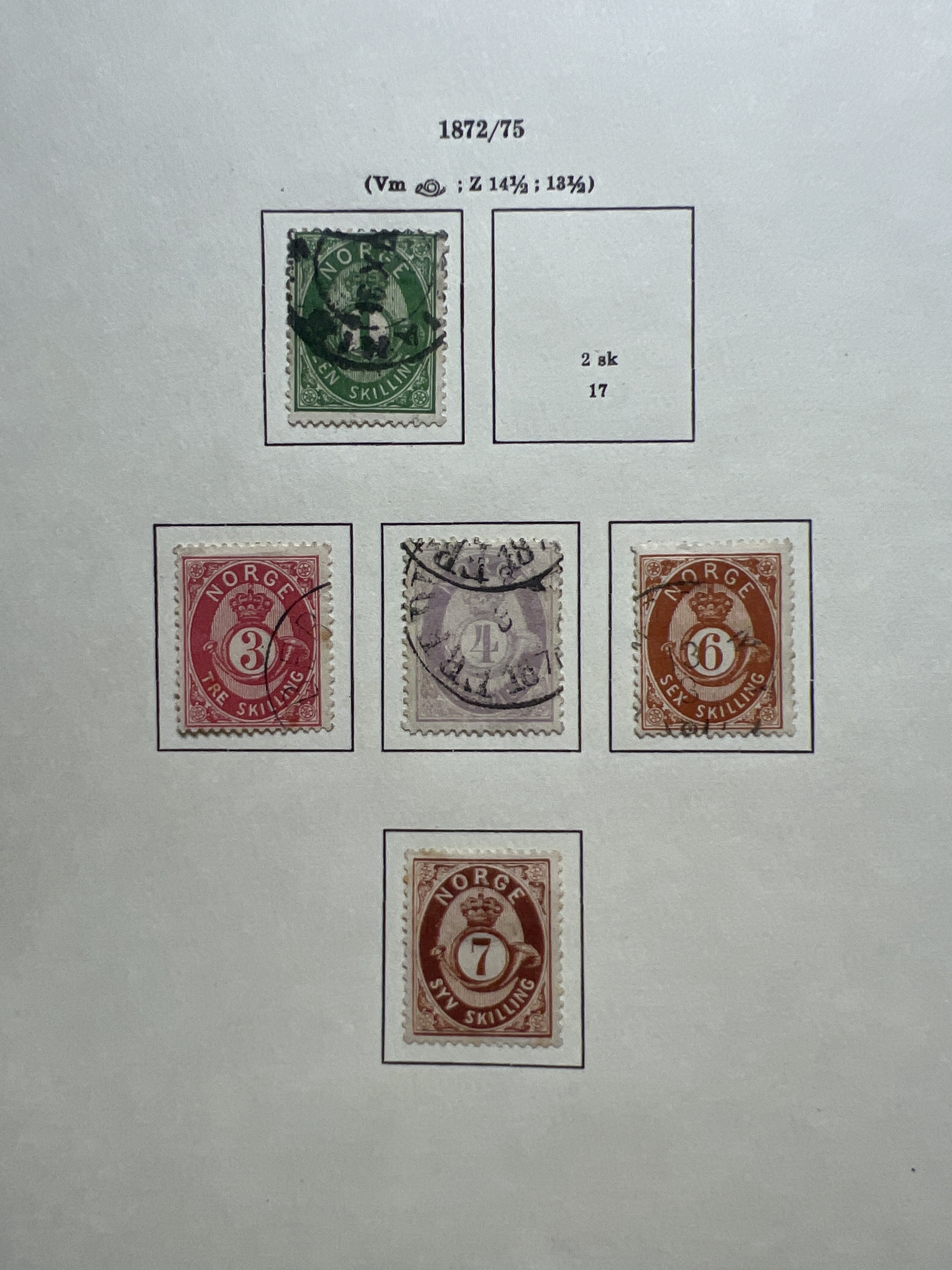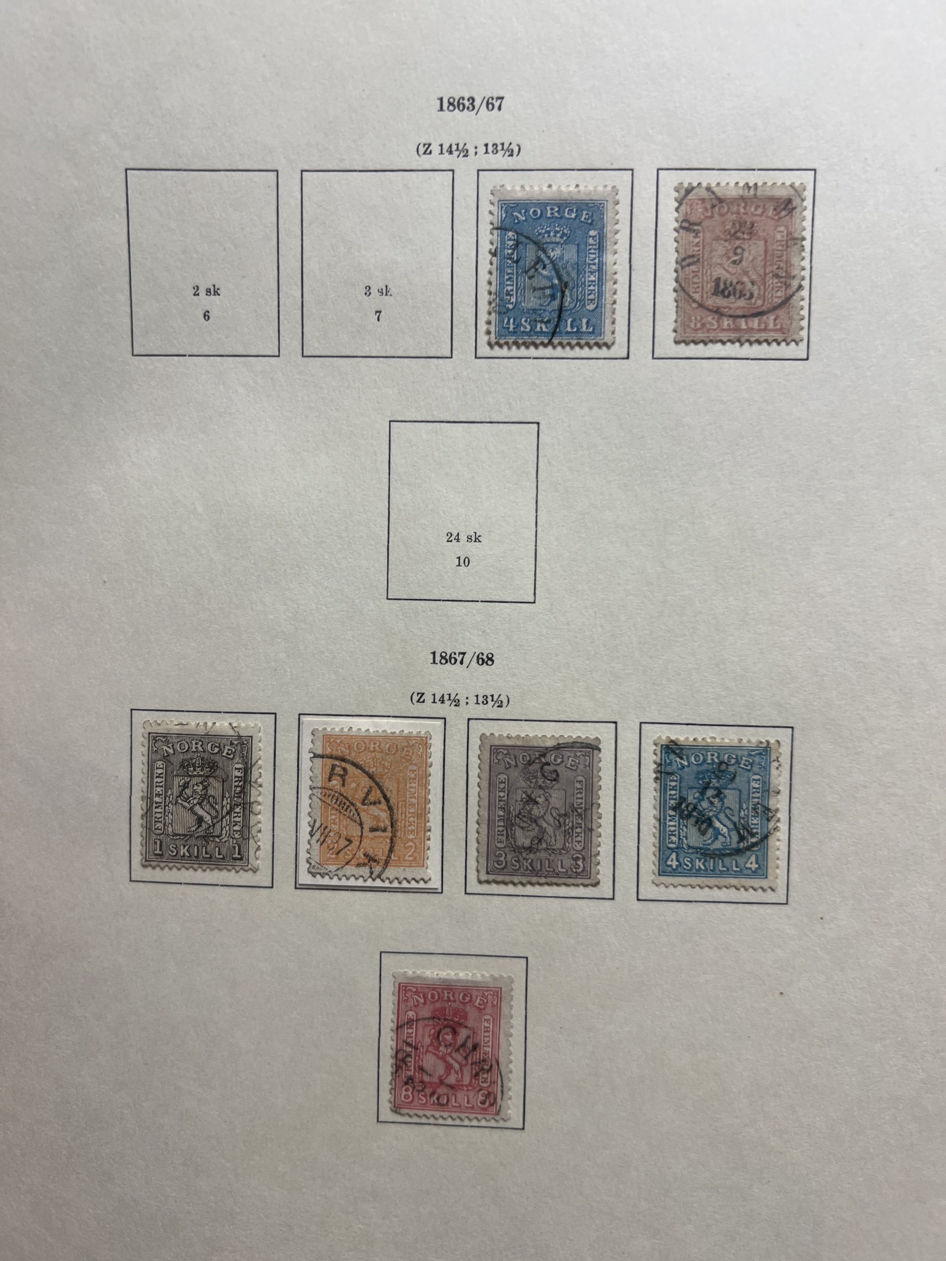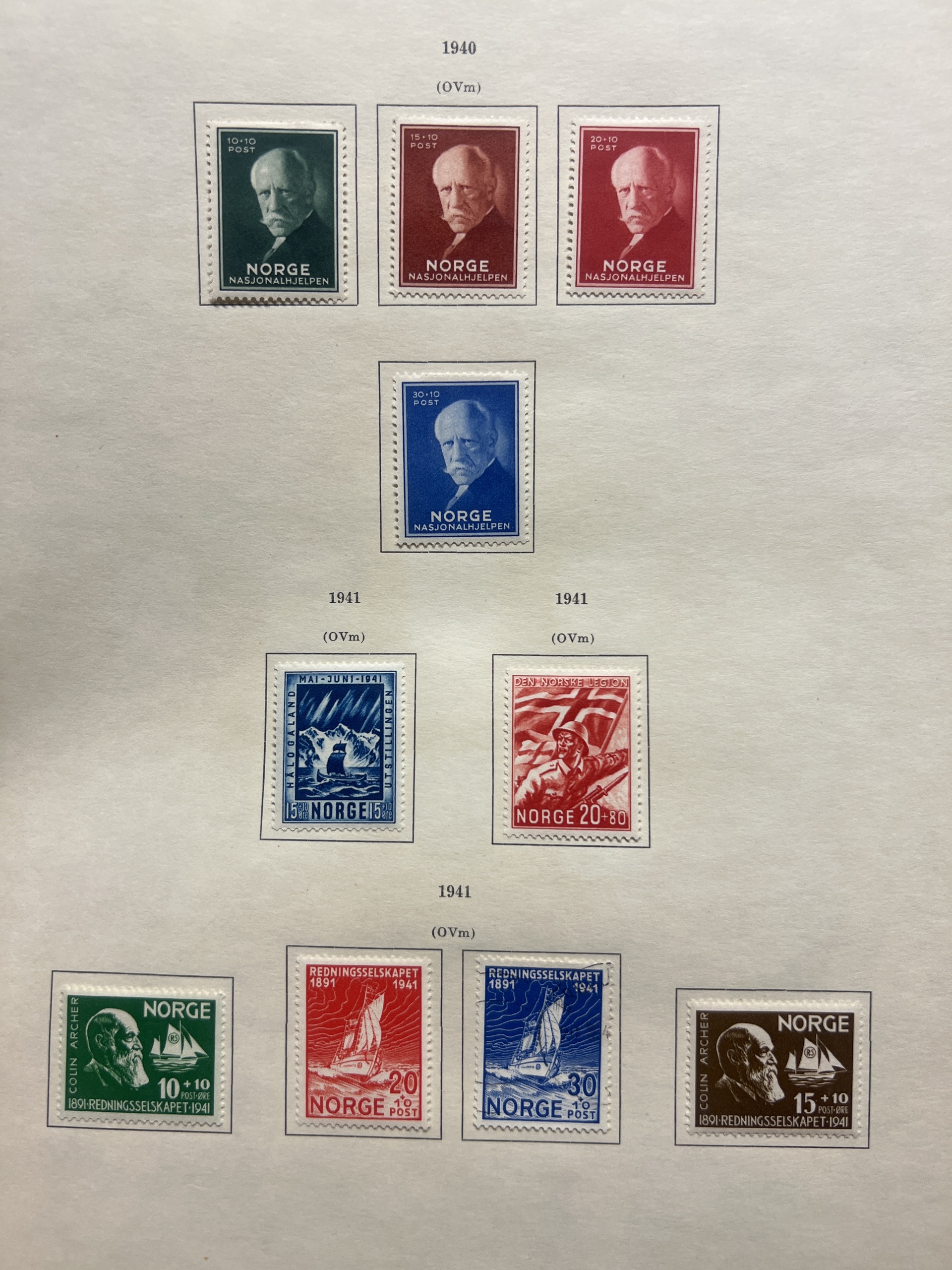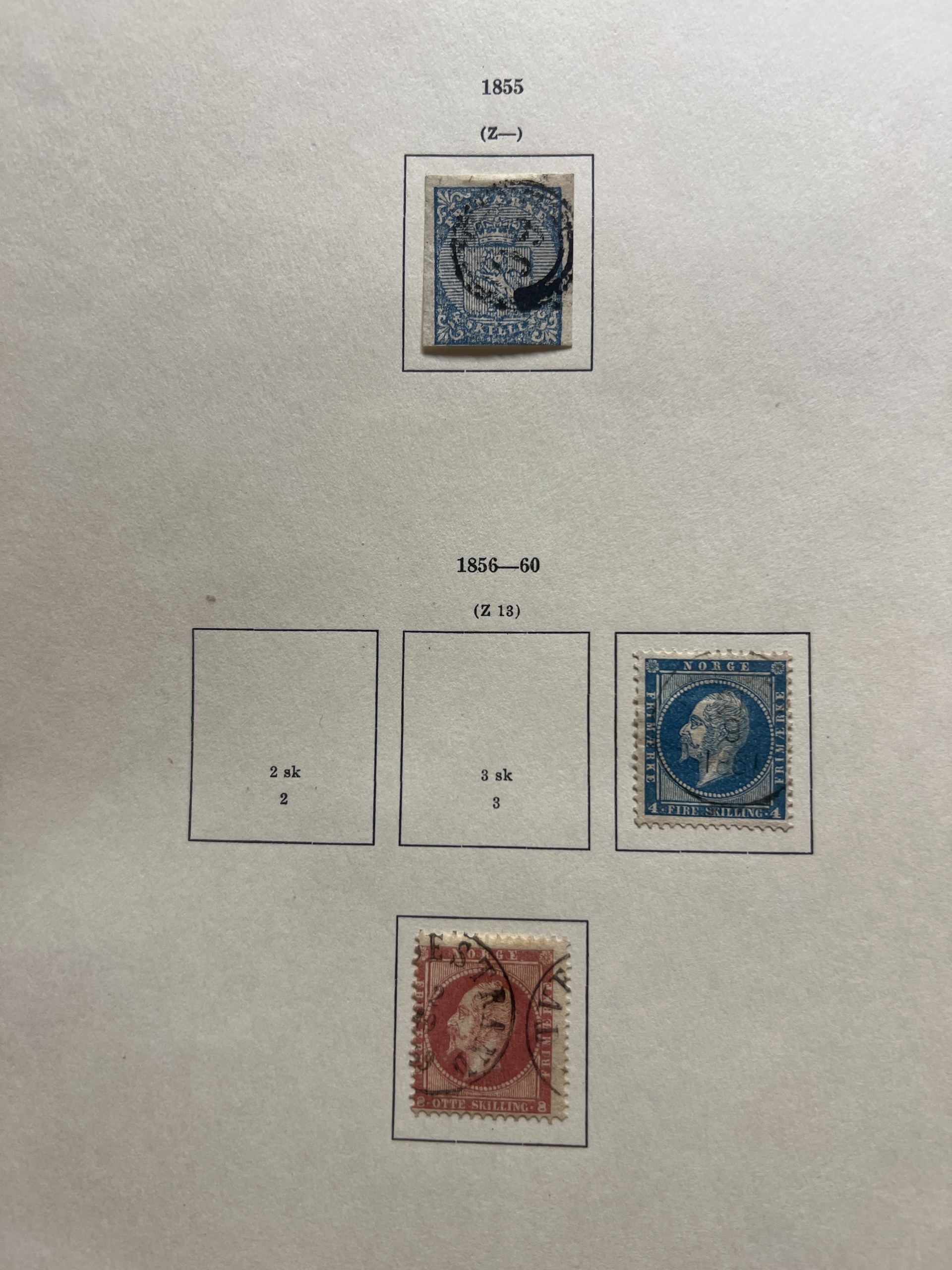 Norway. Collection ★/⊙ 1855–1967 on leaves. Starts with three margin 4 sk 1855, some other skillings and posthorn. From 1910 some mint and from 1945 only mint. Please see a selection of scans at www.philea.se. Somewhat mixed quality. (400)