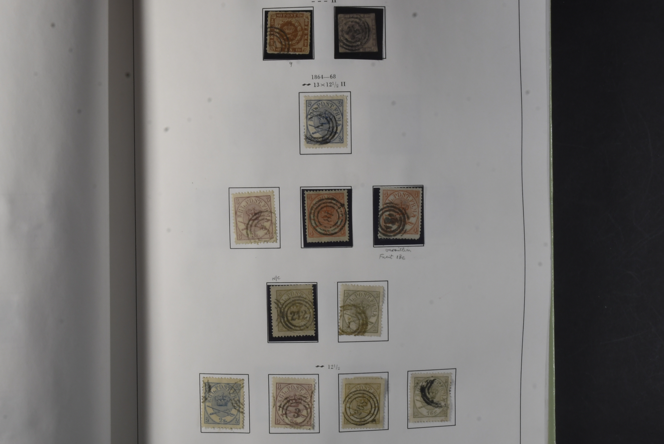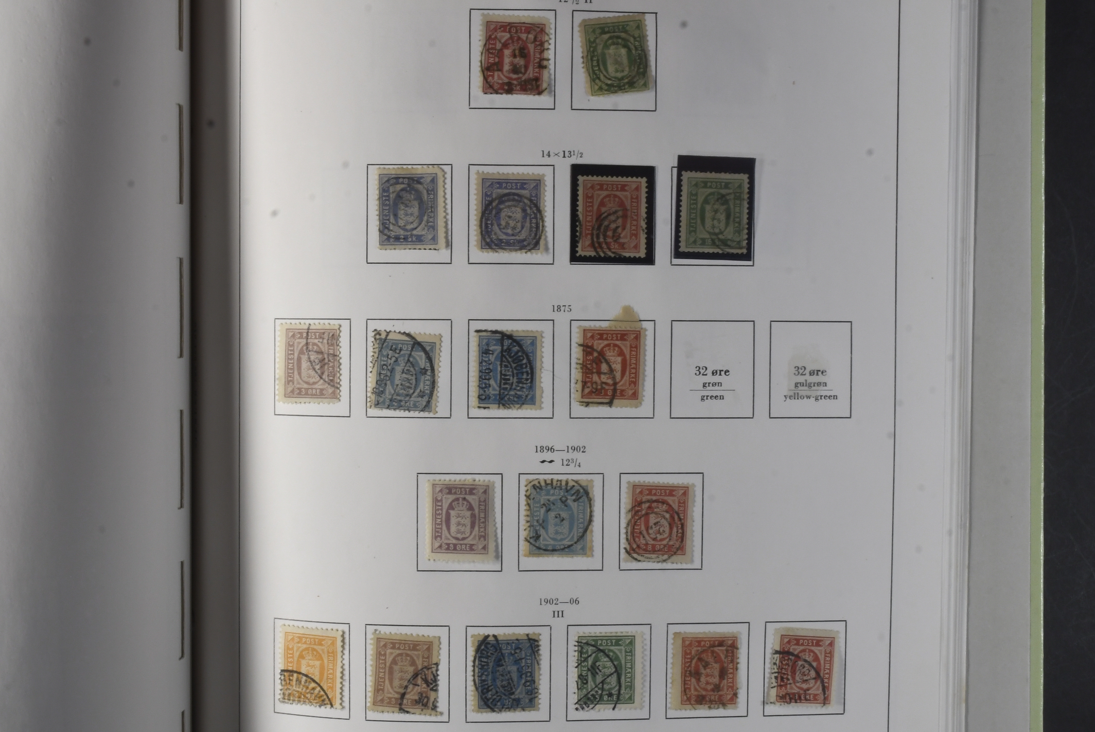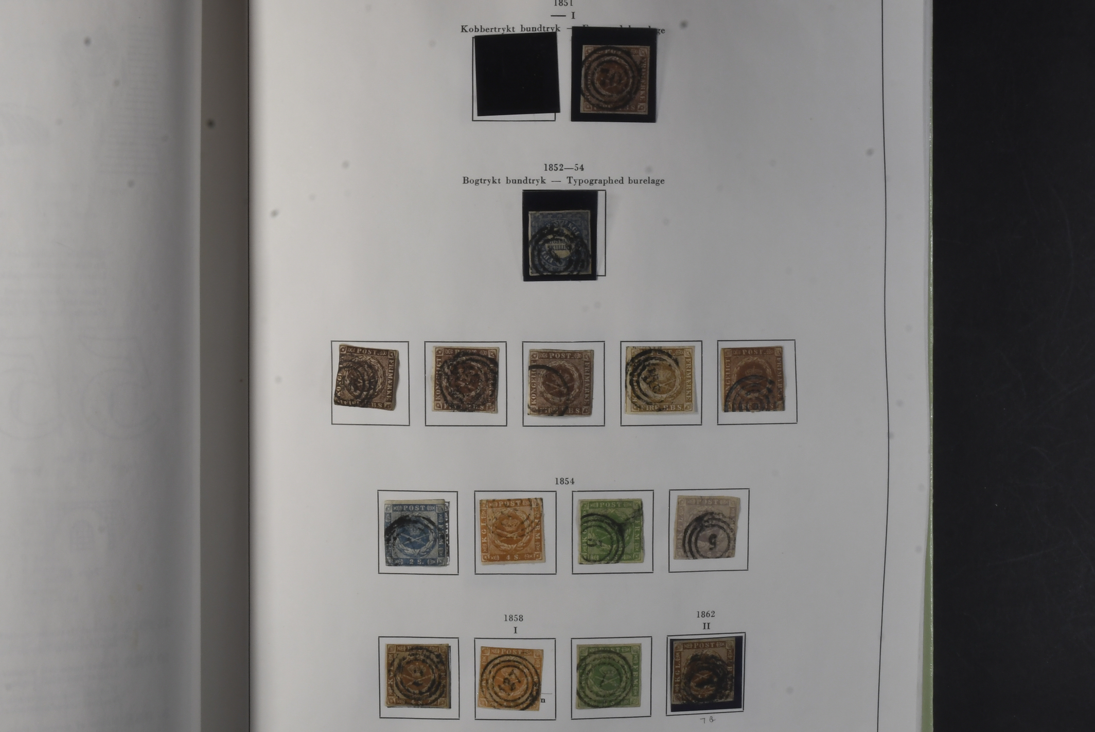 Denmark. Collection ★★/★/⊙ 1851–1985 in Stender album. Nice collection despite some quality issues on some of the most expensive stamps incl. 38 skilling values all are not correctly identified, with better back of the book and airmails. Also Schlesvig and Faroe is. incl. overprints and halved 4o. Last minute entry. Please see a selection of scans at www.philea.se. Somewhat mixed quality. (700)