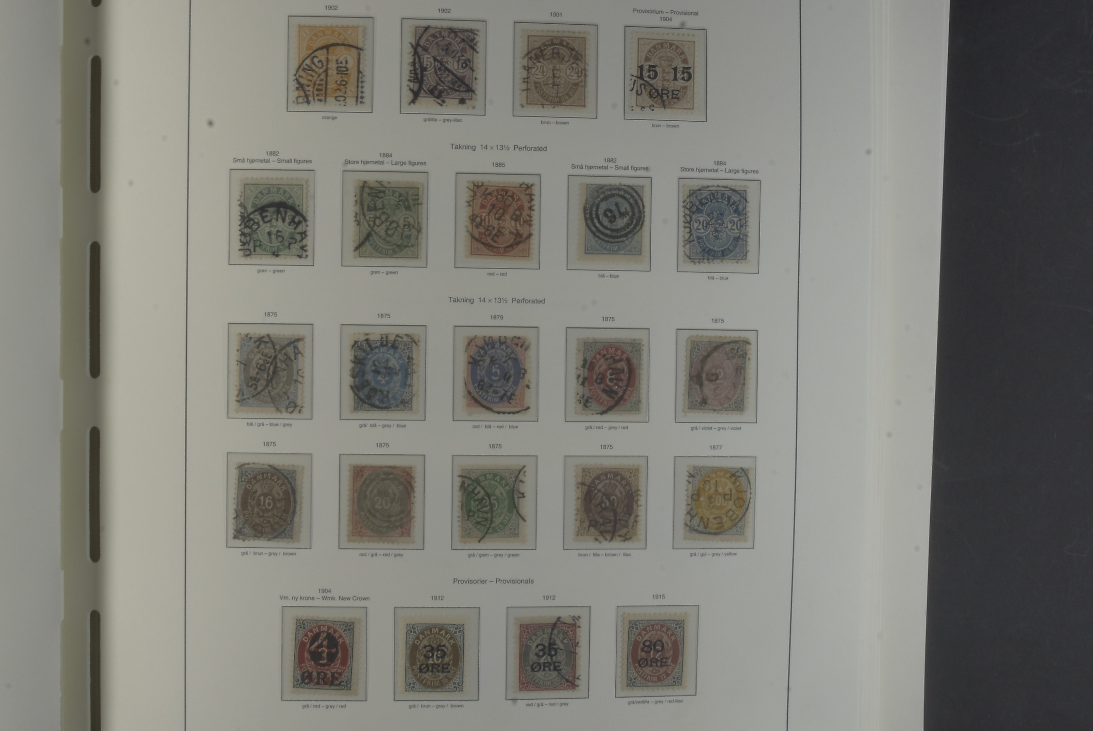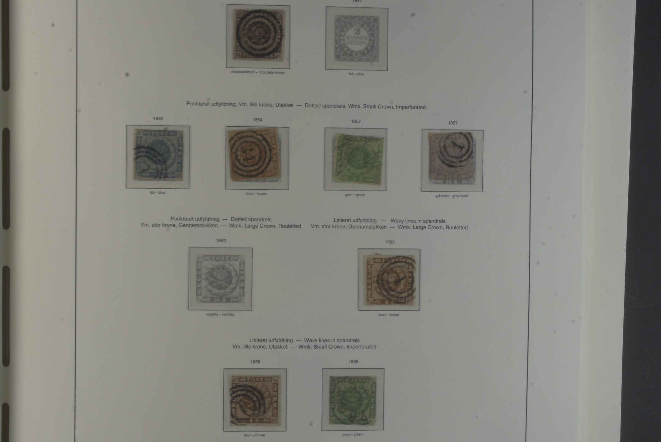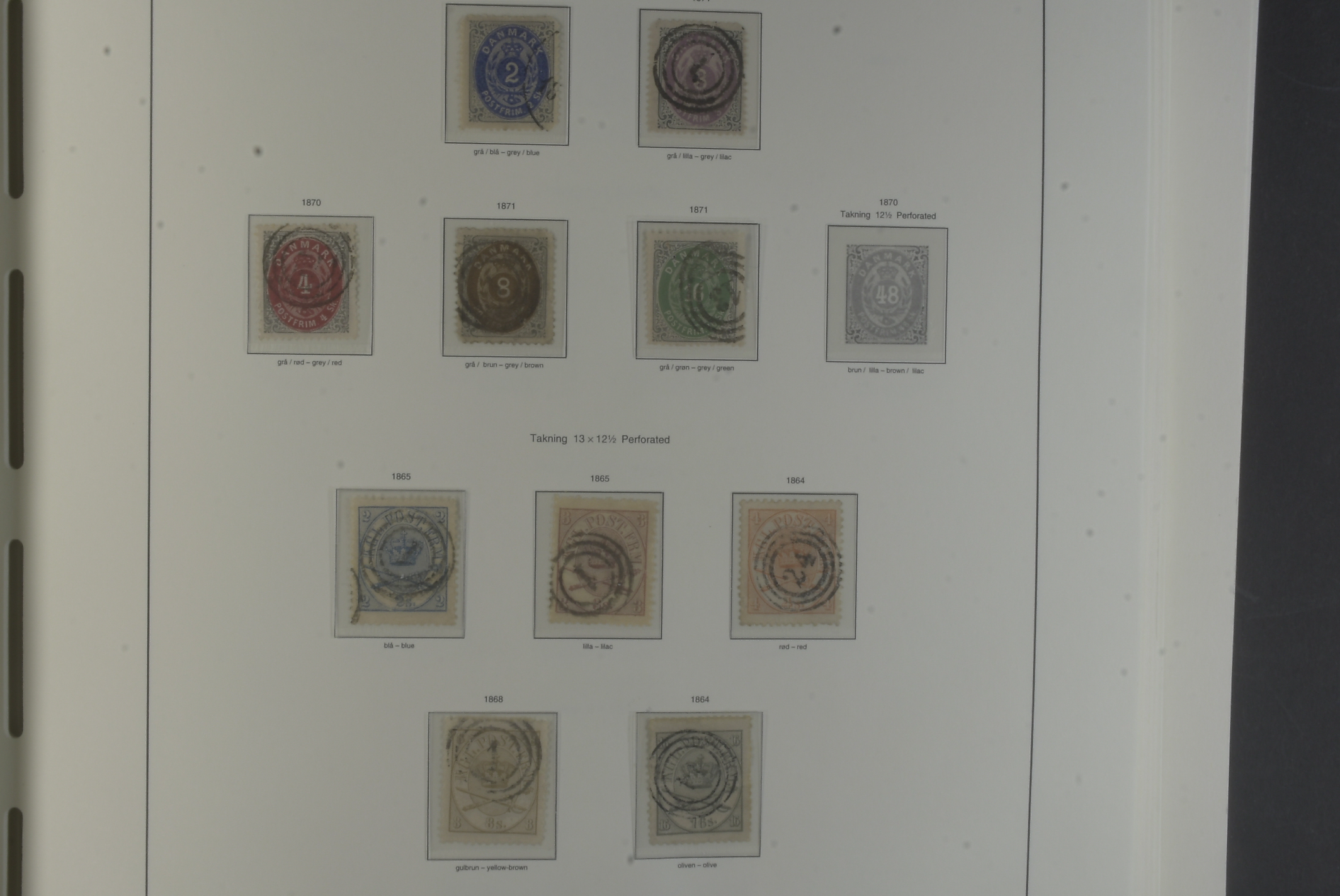 Denmark. Collection mostly used 1851–2001 in Leuchtturm album with stamp mounts. Well filled with skillings in rather mixed condition. Later fine with several better stamps and sets. e.g. Airmails and both G.P.O. Please see a selection of scans at www.philea.se. Mostly good quality. (c800)