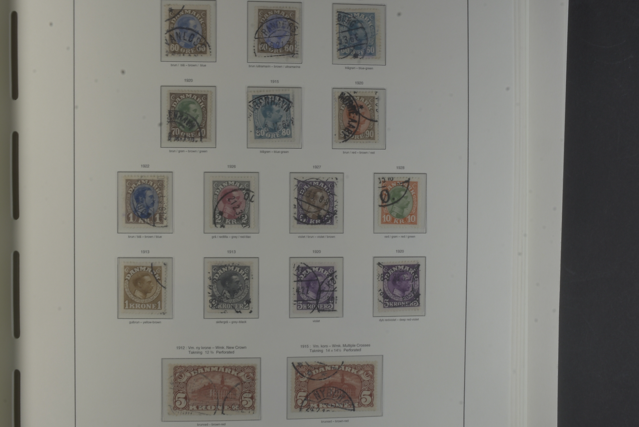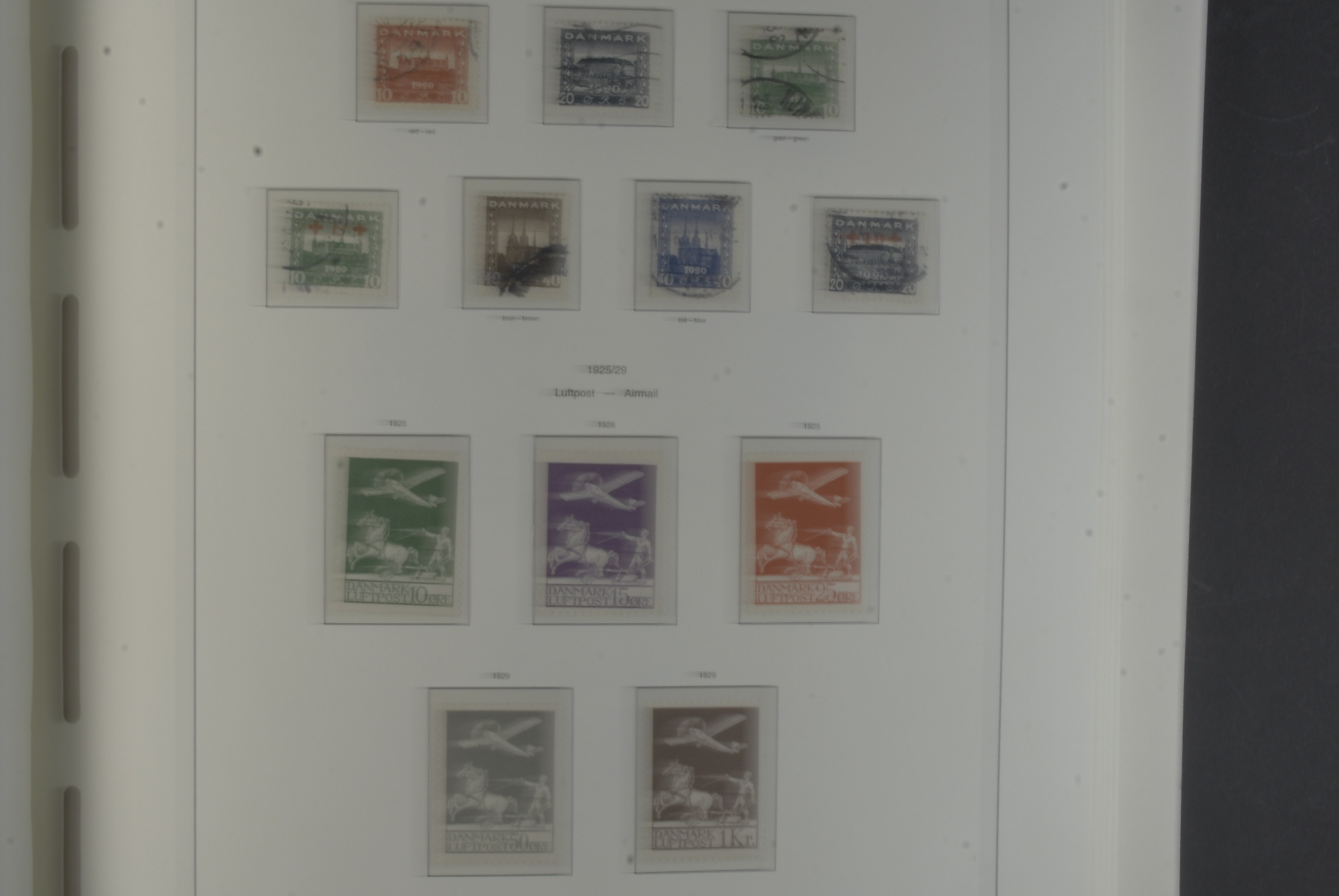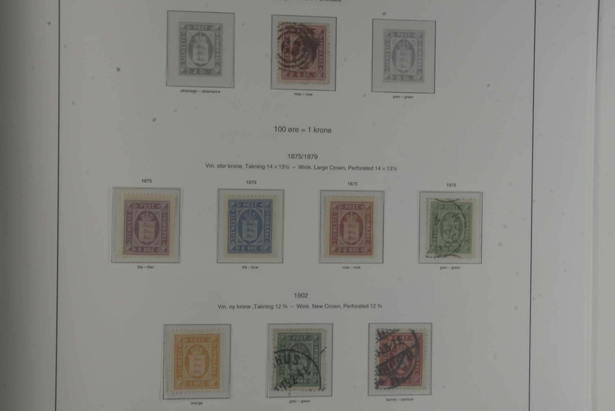 Denmark. Collection mostly used 1851–2001 in Leuchtturm album with stamp mounts. Well filled with skillings in rather mixed condition. Later fine with several better stamps and sets. e.g. Airmails and both G.P.O. Please see a selection of scans at www.philea.se. Mostly good quality. (c800)