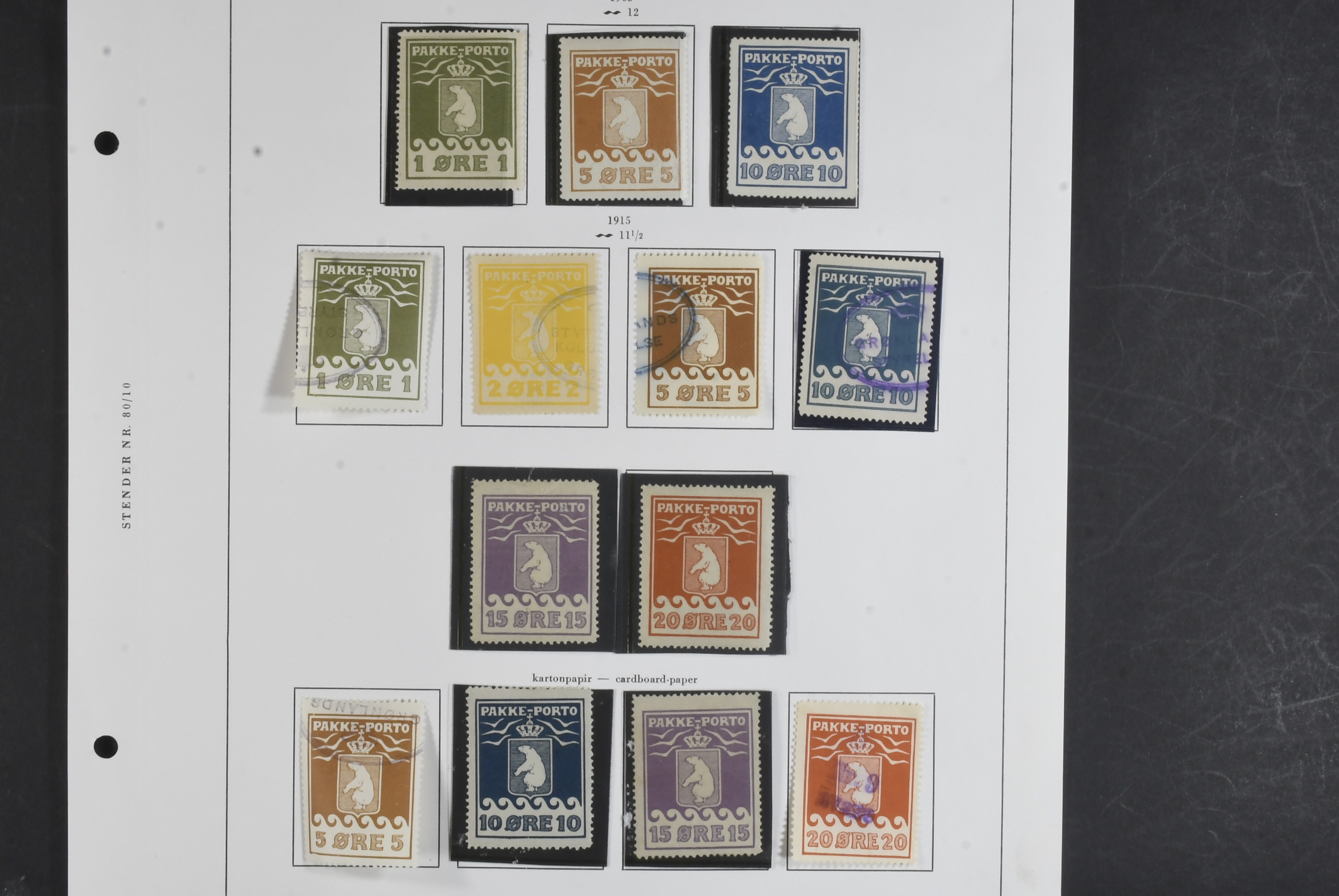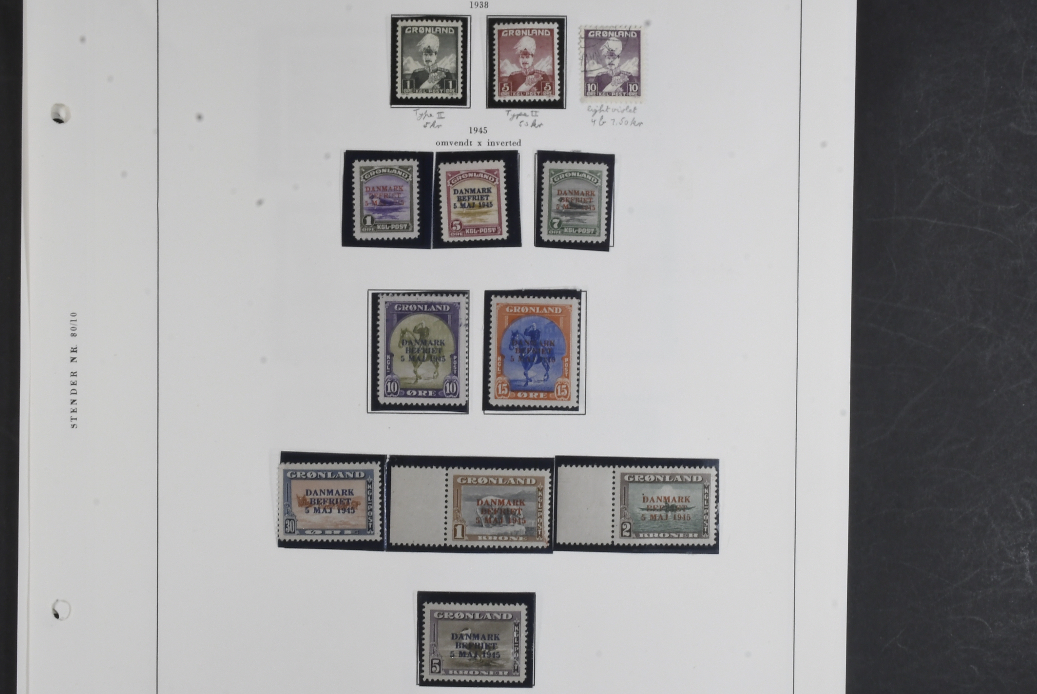 Greenland. Collection ★★/★/⊙ 1905–1985 on leaves. Pakke-porto complete Fa 1 *, 2 * and 3 no gum, 1938 are MNH. America set MNH and Denmark Befriet set MNH. Later mixed used and mnh. Please see a selection of scans at www.philea.se. Mostly good quality. (ca. 200)