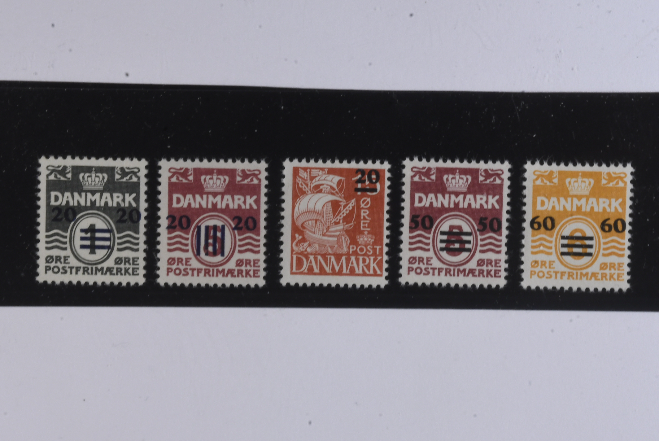 The Faroes. Facit 4–8 ★★, 1940 Surcharge on Wavy-lines SET (5). SEK 8500
